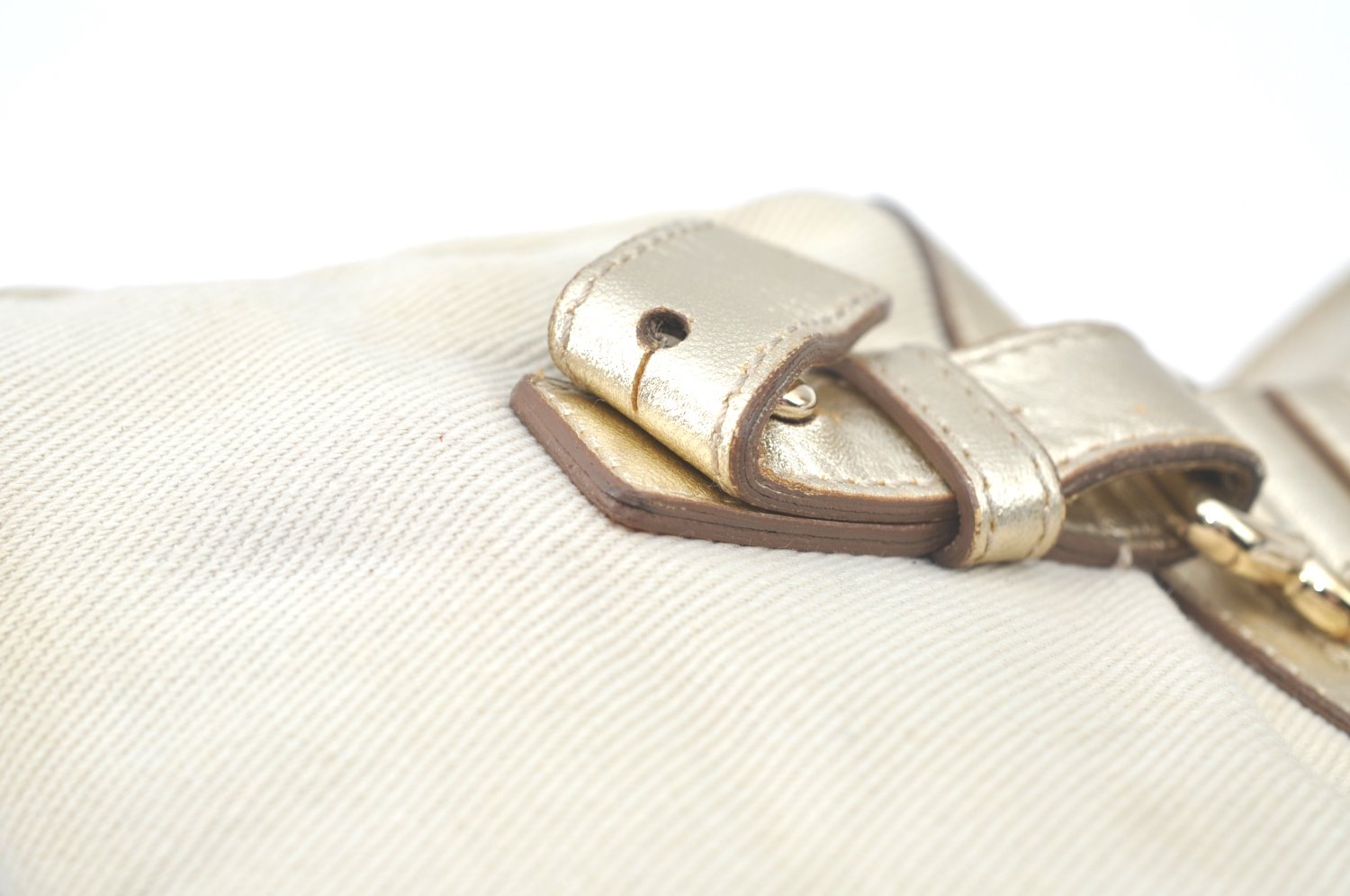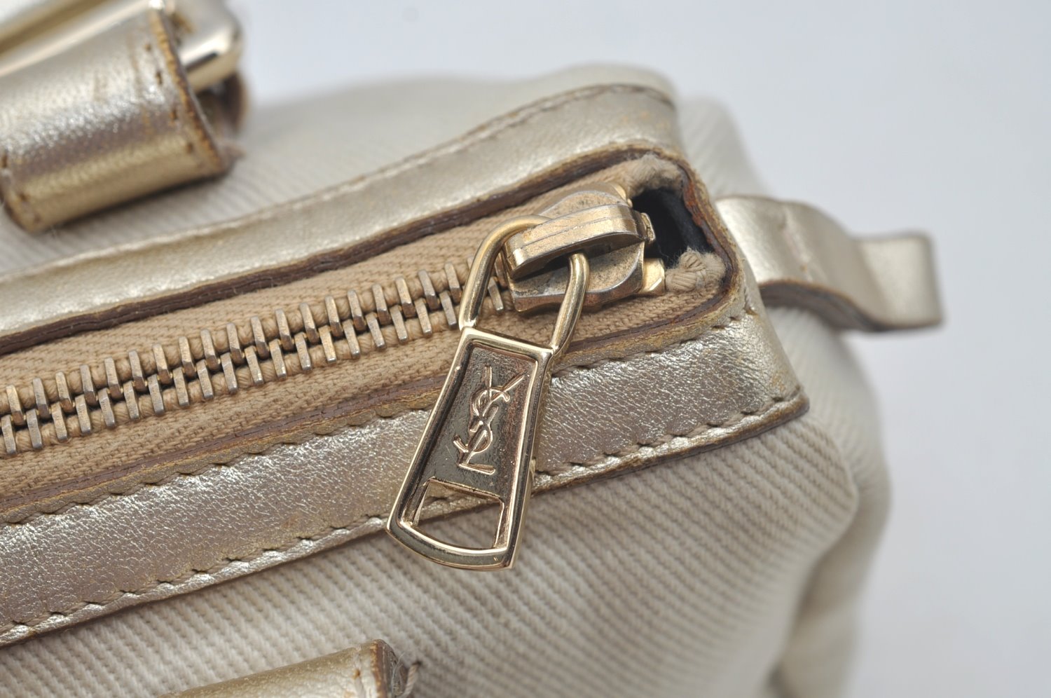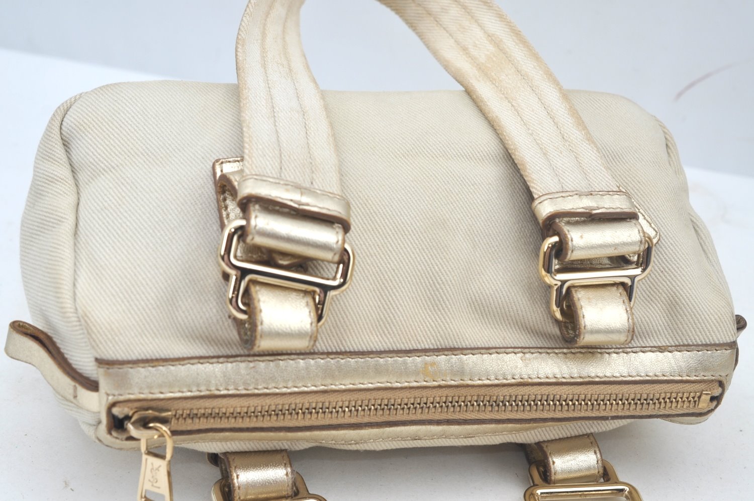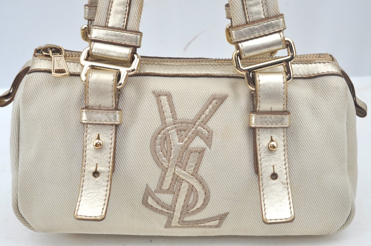 | Authentic YVES SAINT LAURENT Kahara Hand Bag Canvas Leather 129475 White | |
