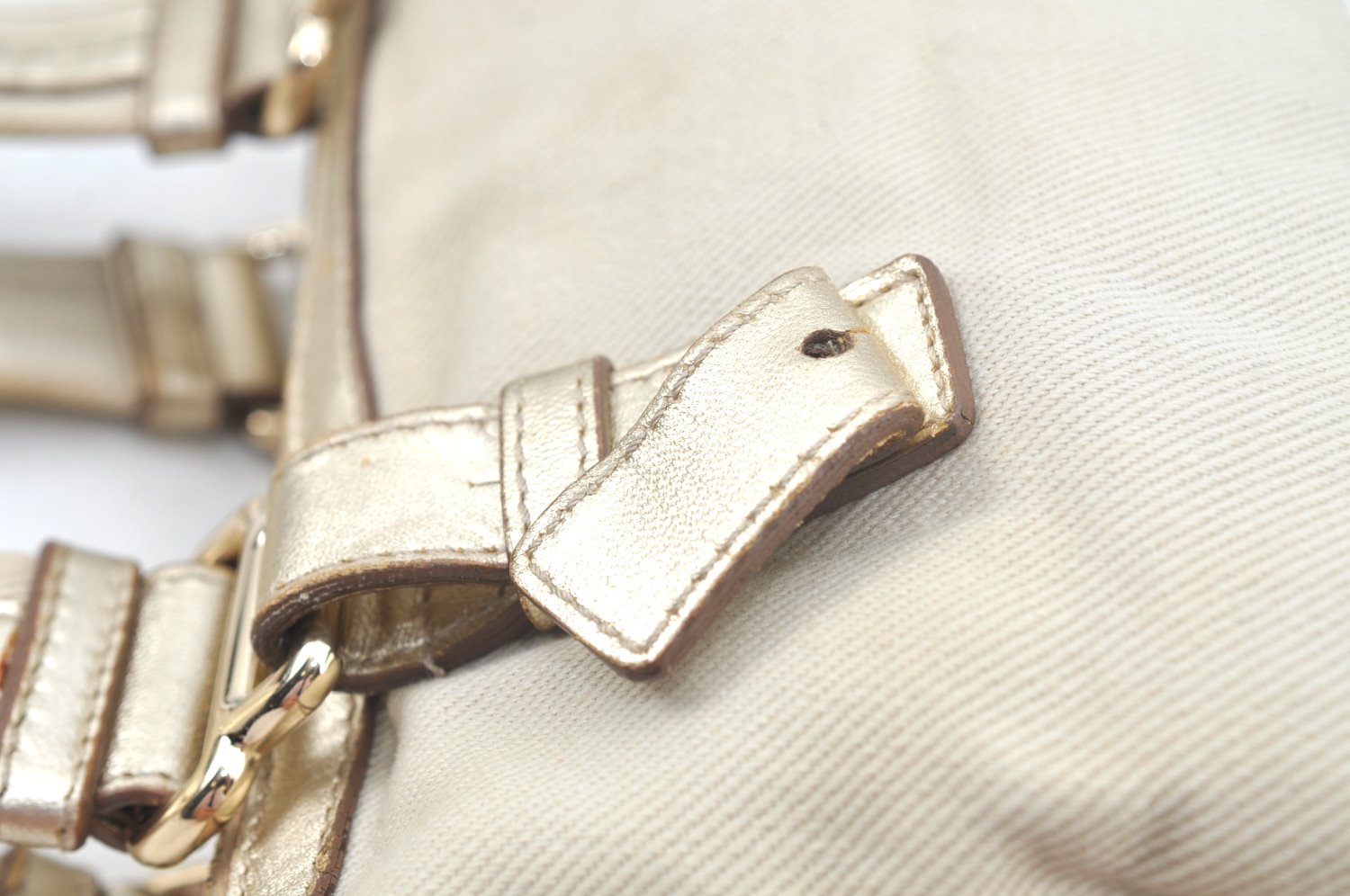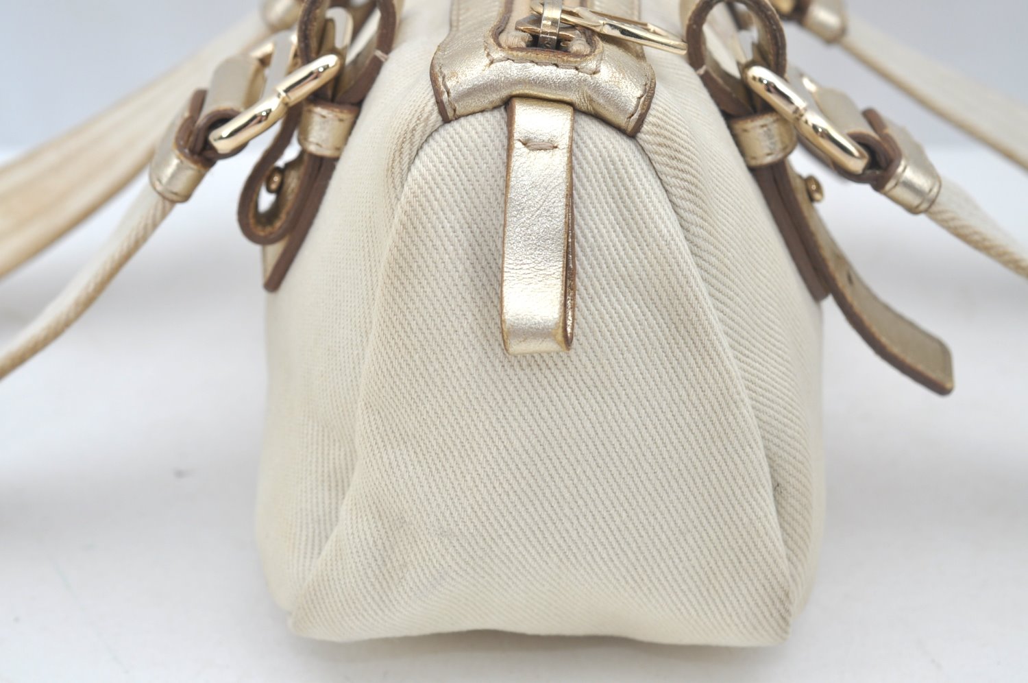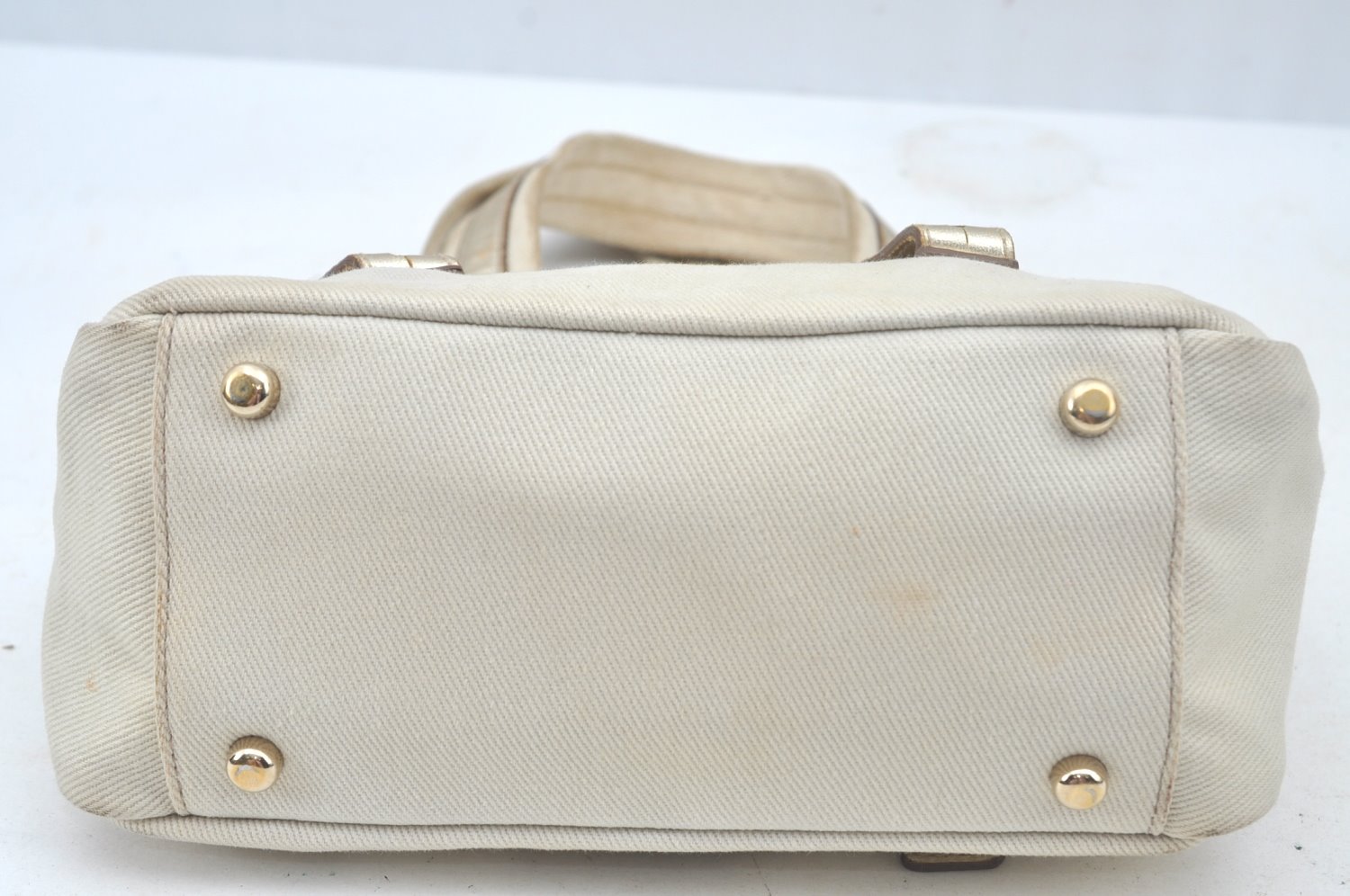 | Authentic YVES SAINT LAURENT Kahara Hand Bag Canvas Leather 129475 White | |