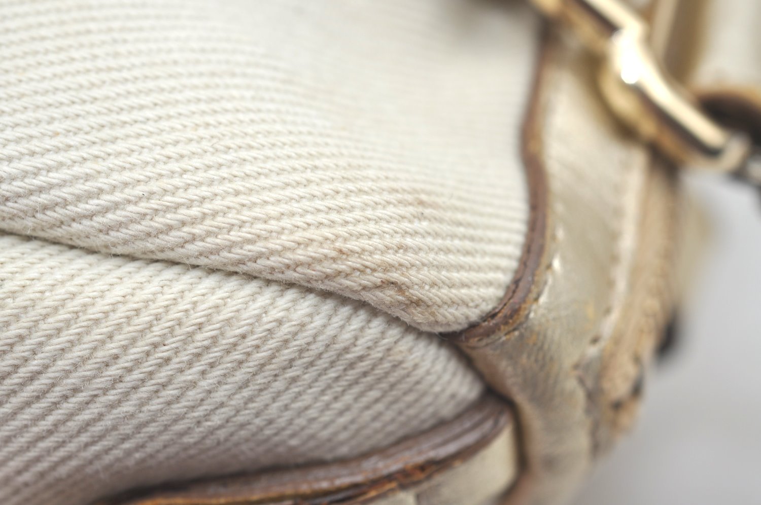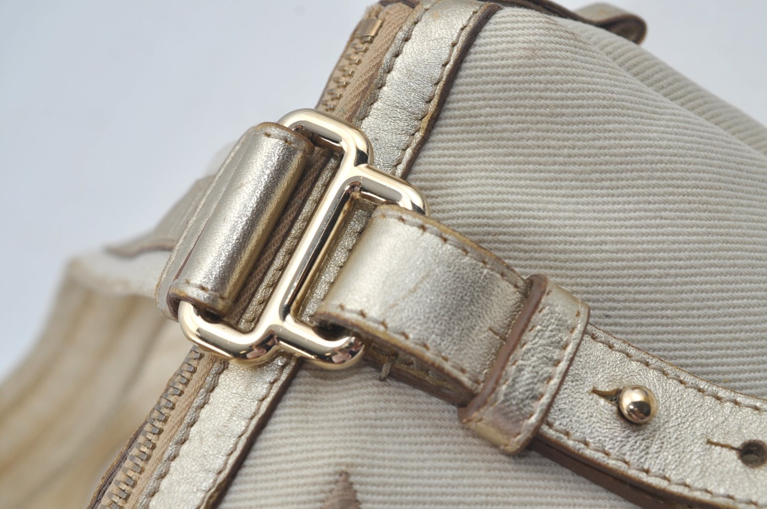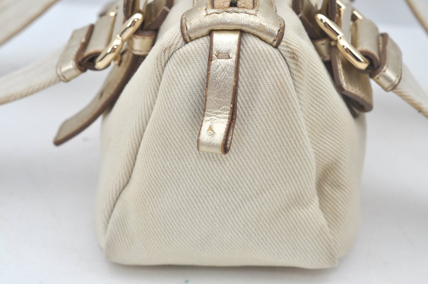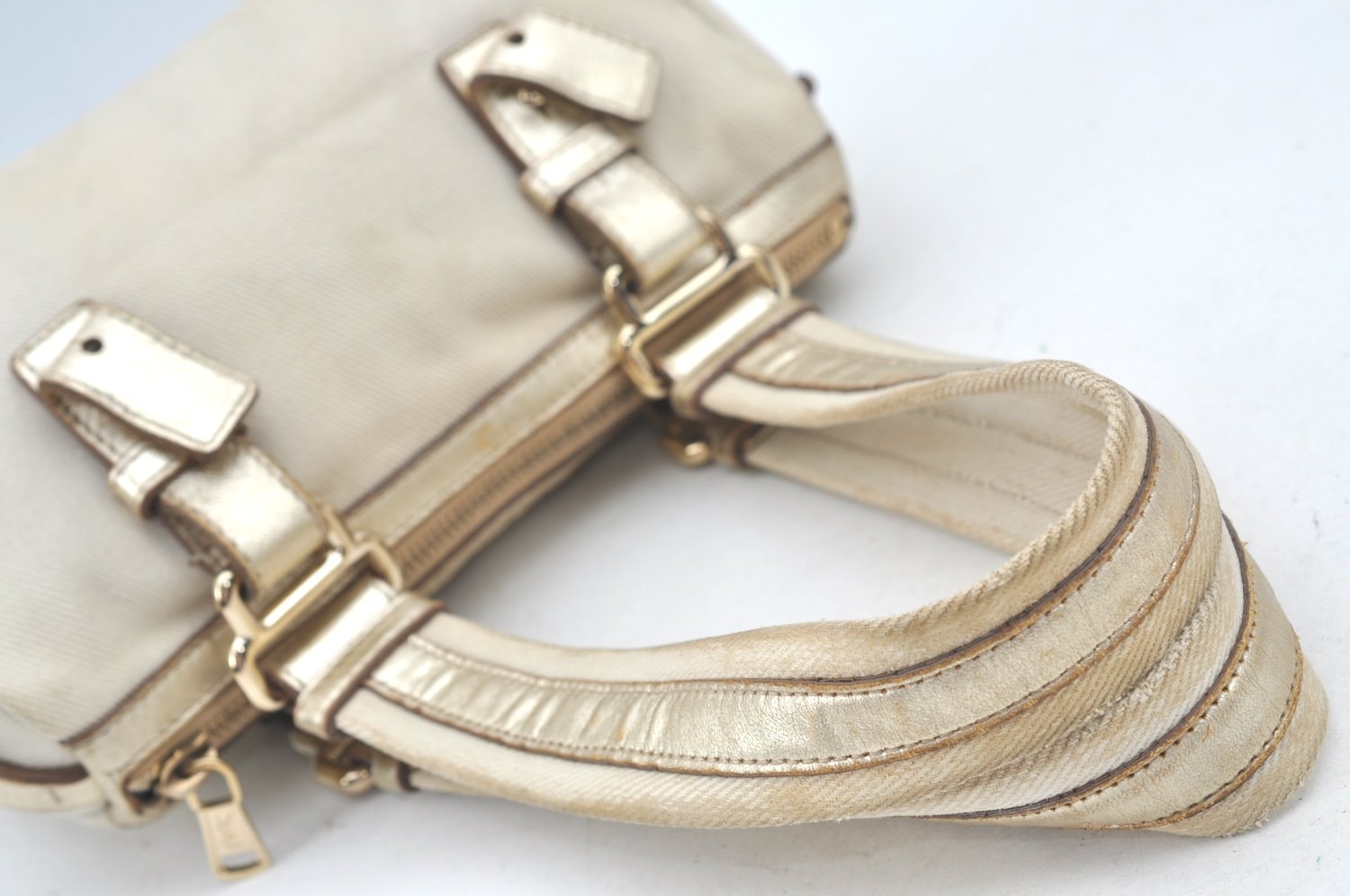 | Authentic YVES SAINT LAURENT Kahara Hand Bag Canvas Leather 129475 White | |