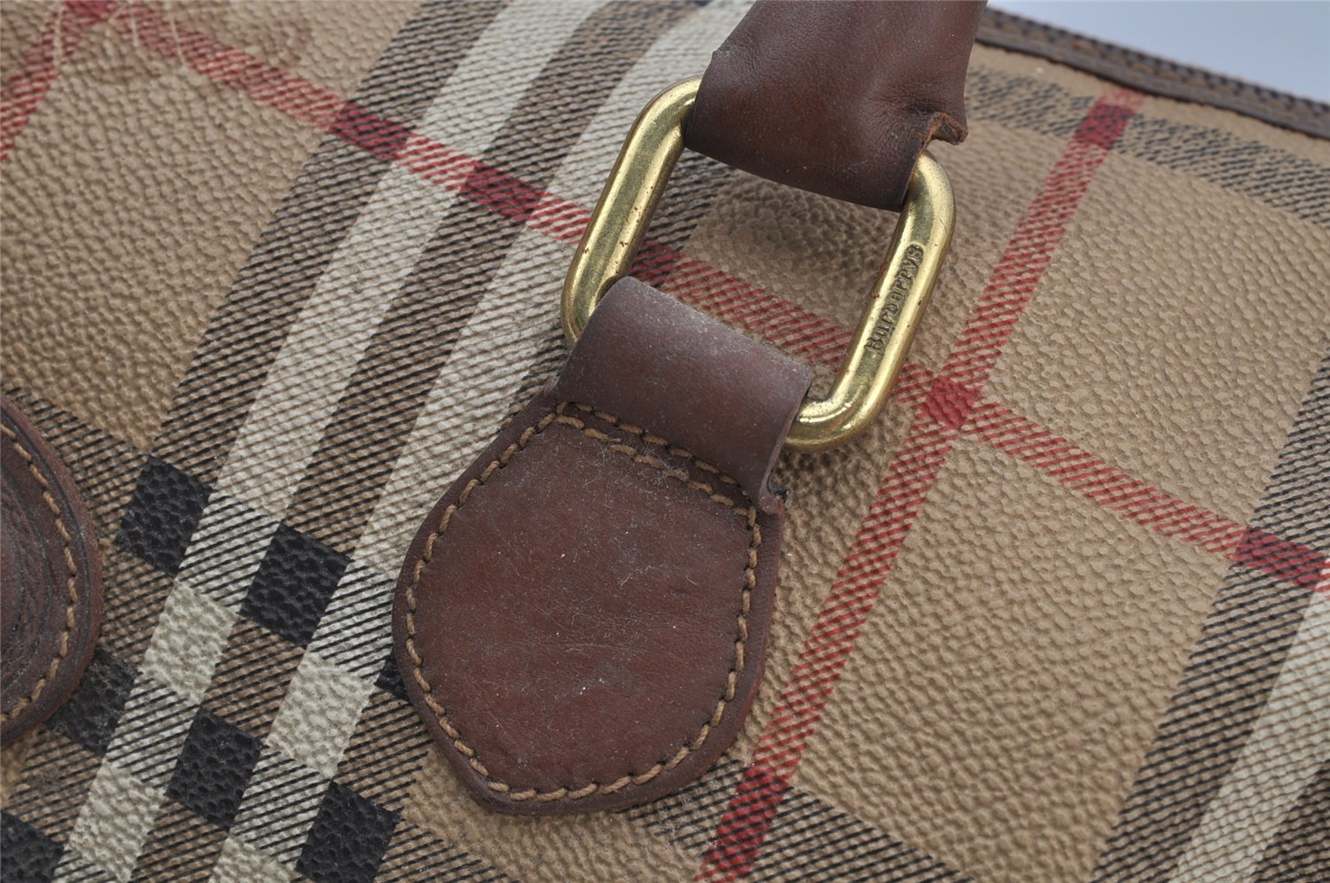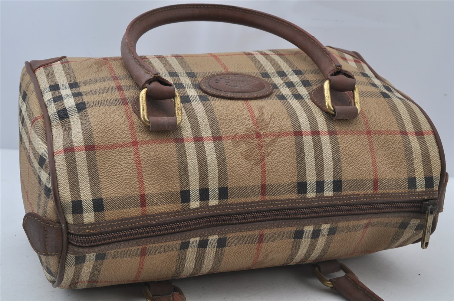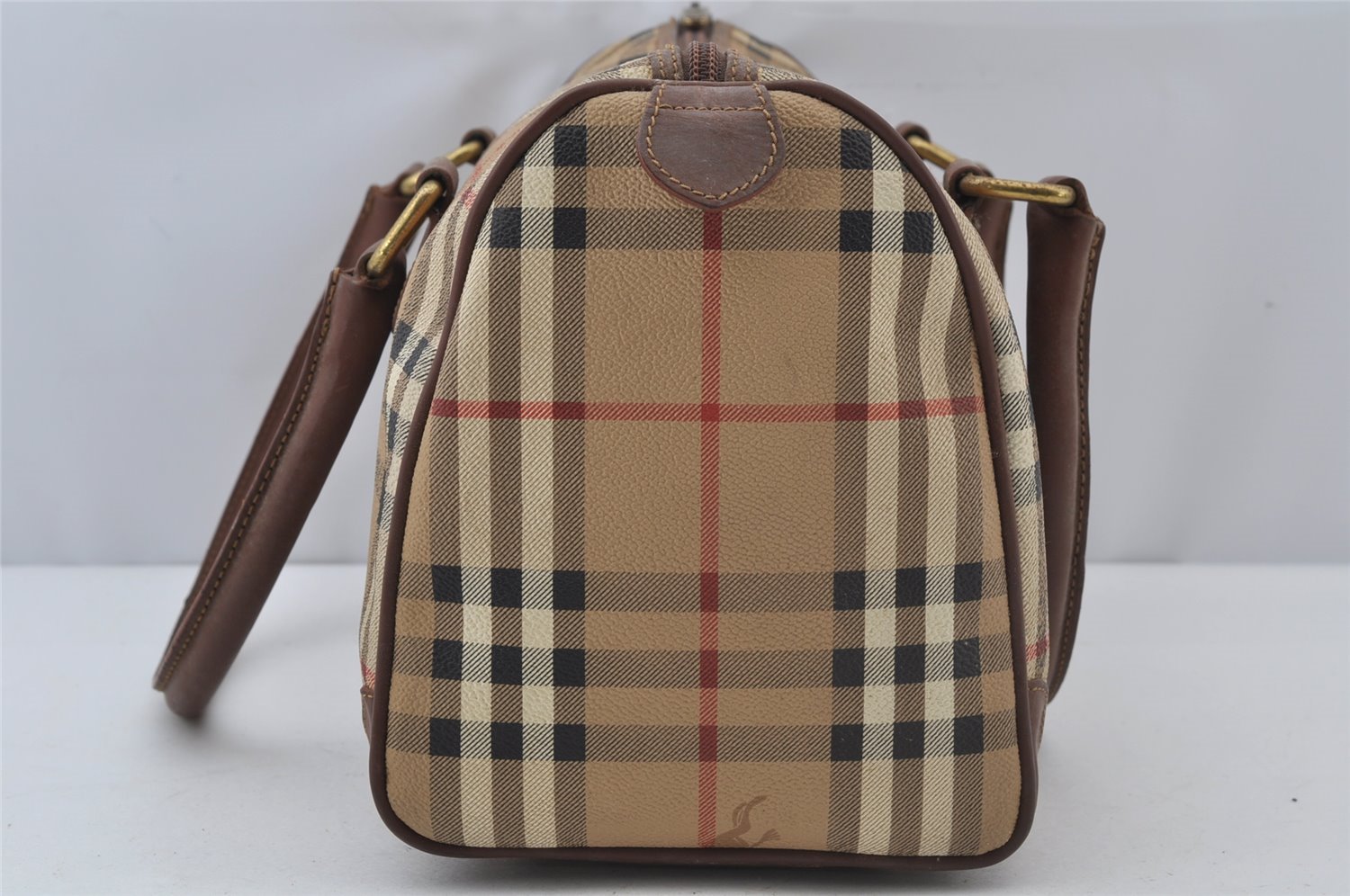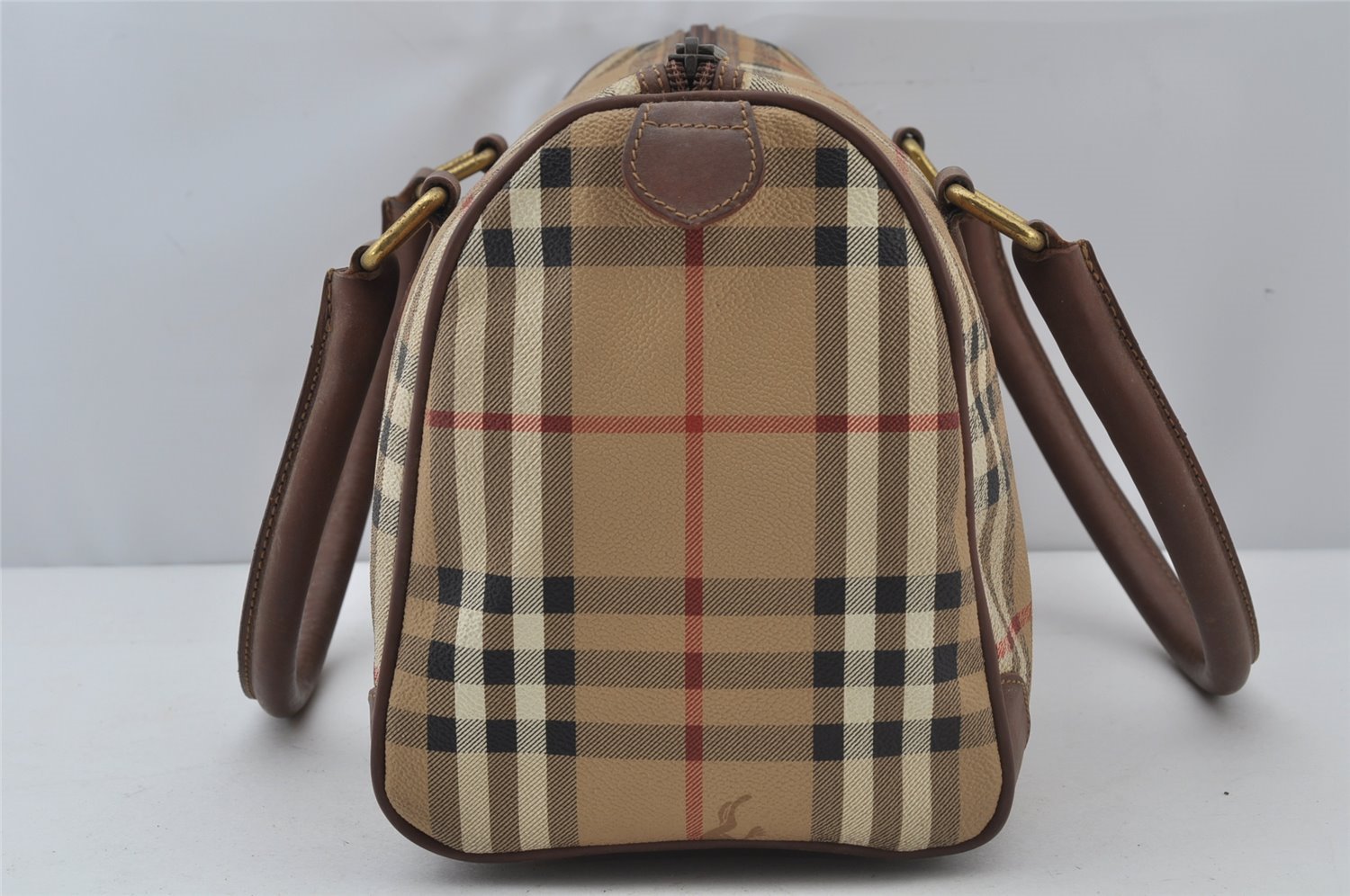 | Authentic Burberrys Nova Check PVC Leather Hand Boston Bag Beige Junk | |