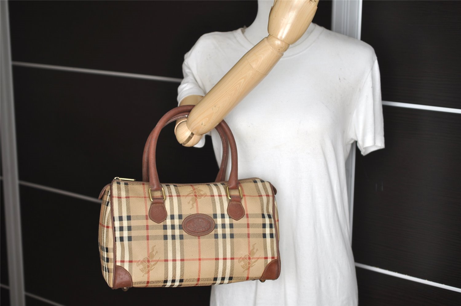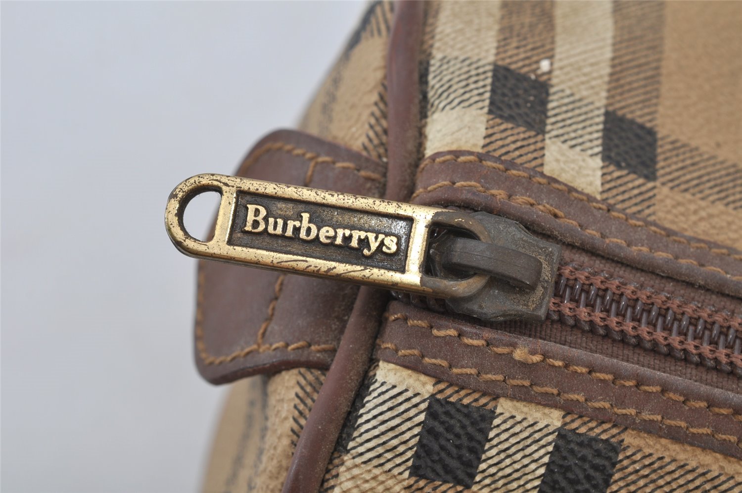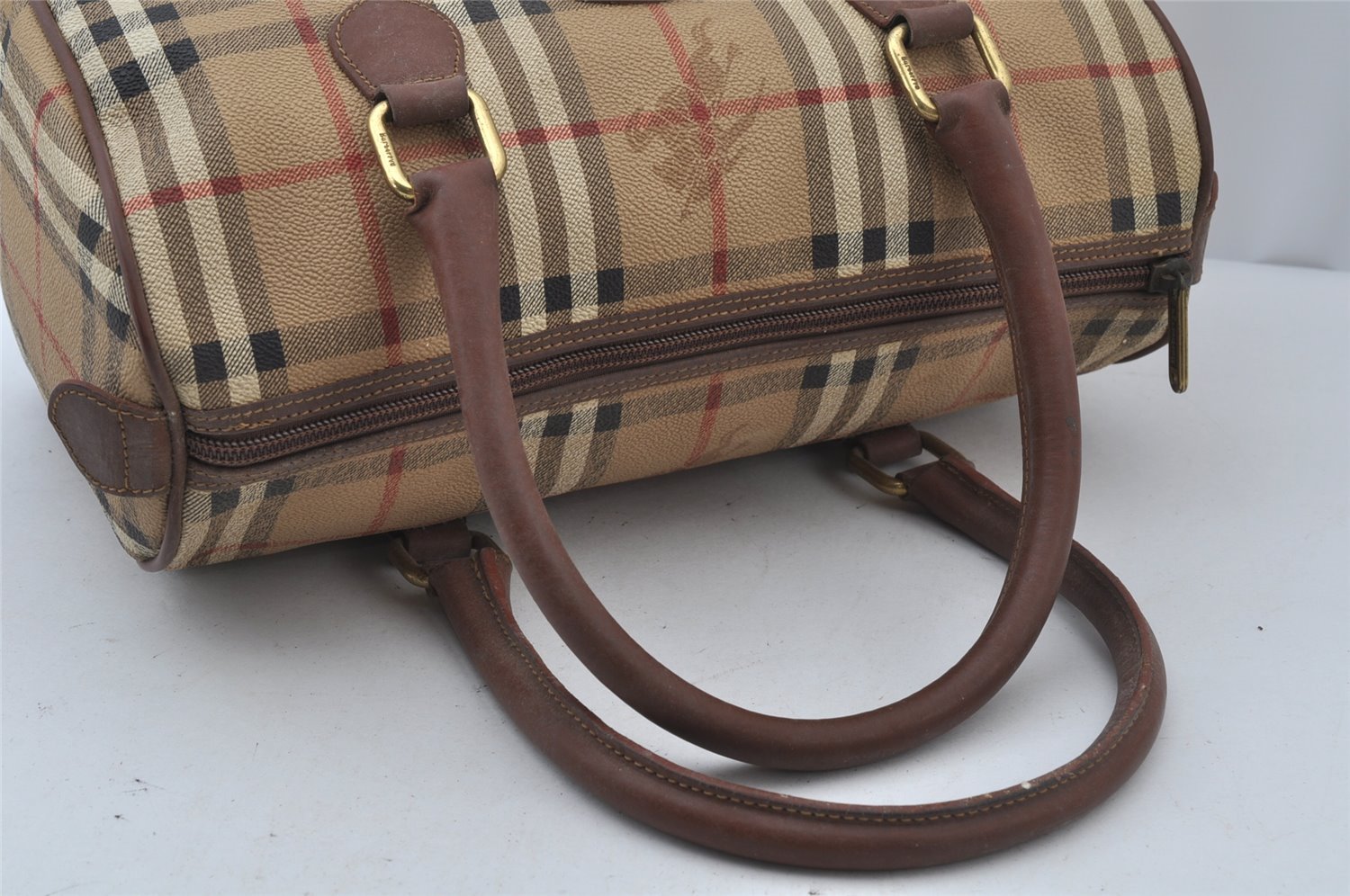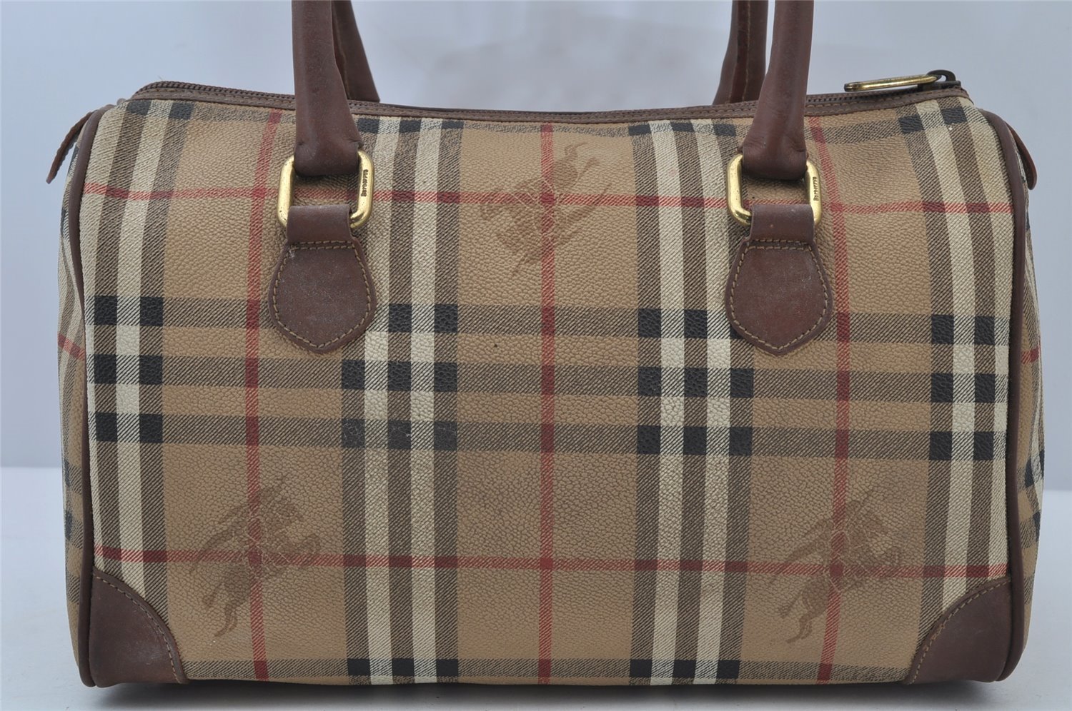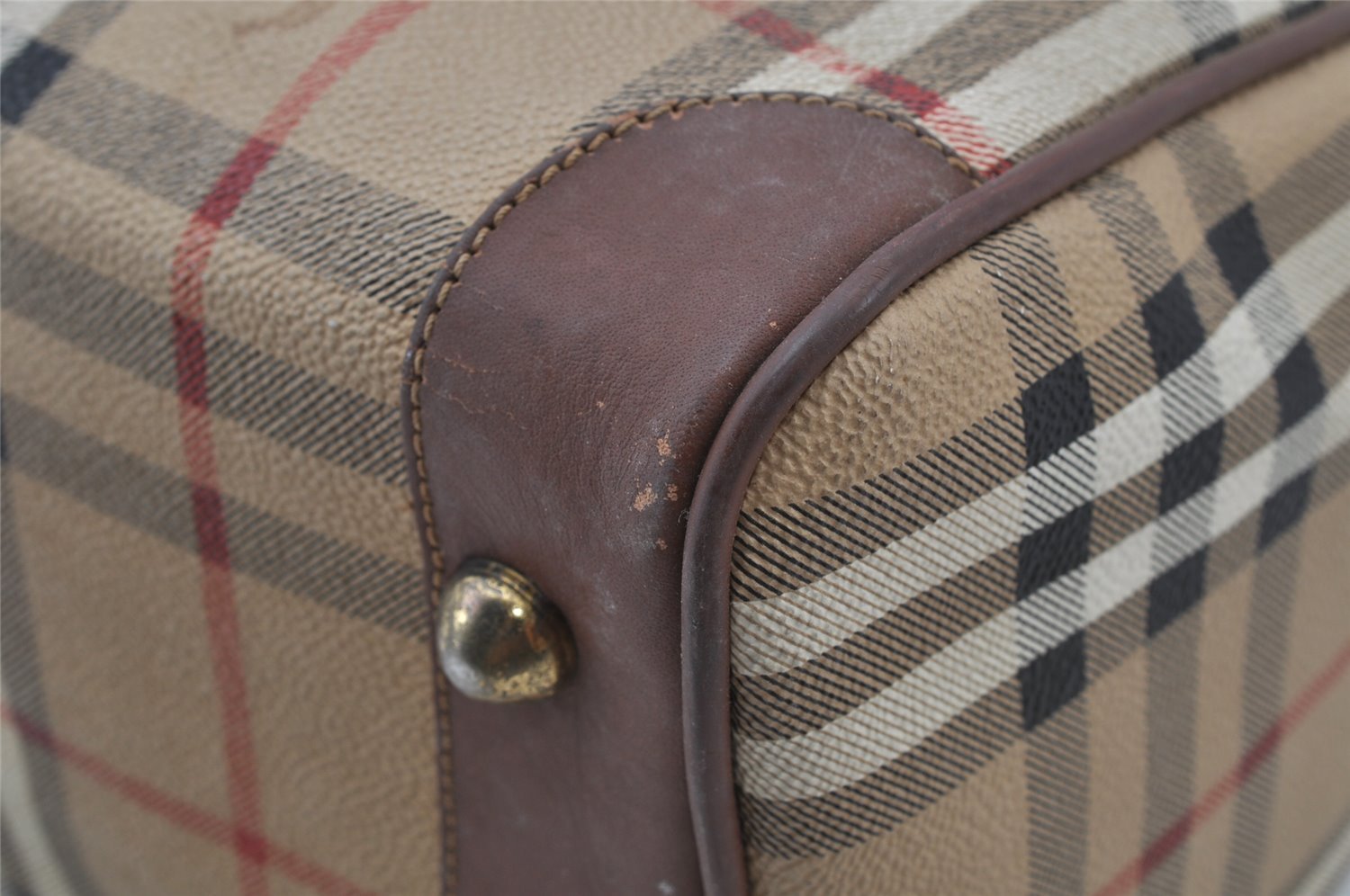 | Authentic Burberrys Nova Check PVC Leather Hand Boston Bag Beige Junk | |