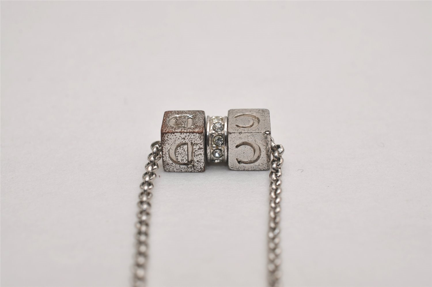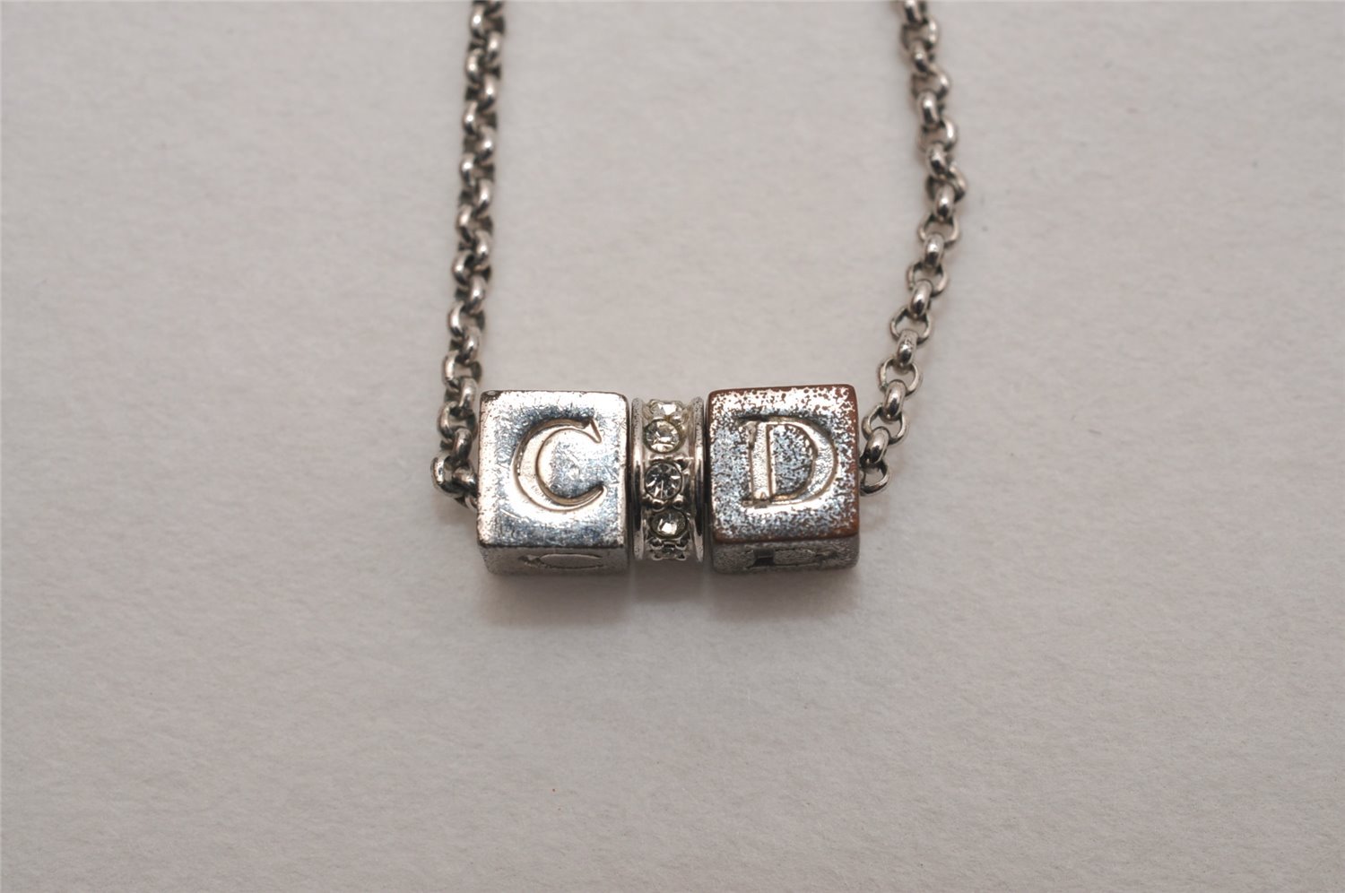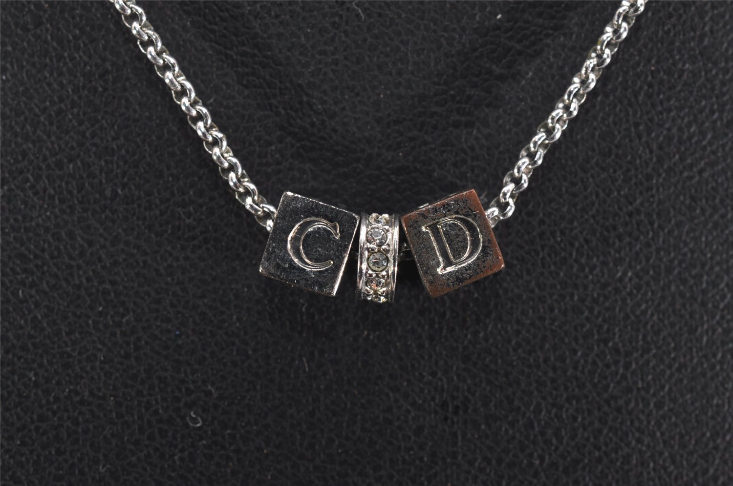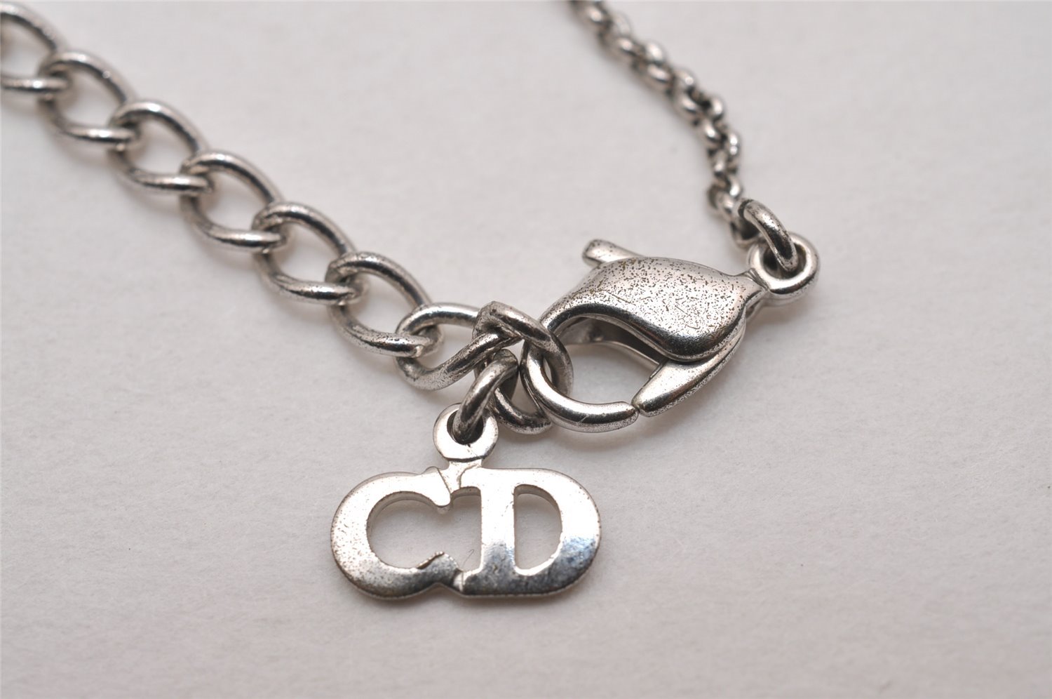 | Authentic Christian Dior Silver Tone Chain Rhinestone Pendant Necklace CD | |