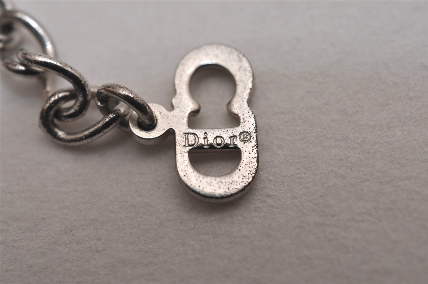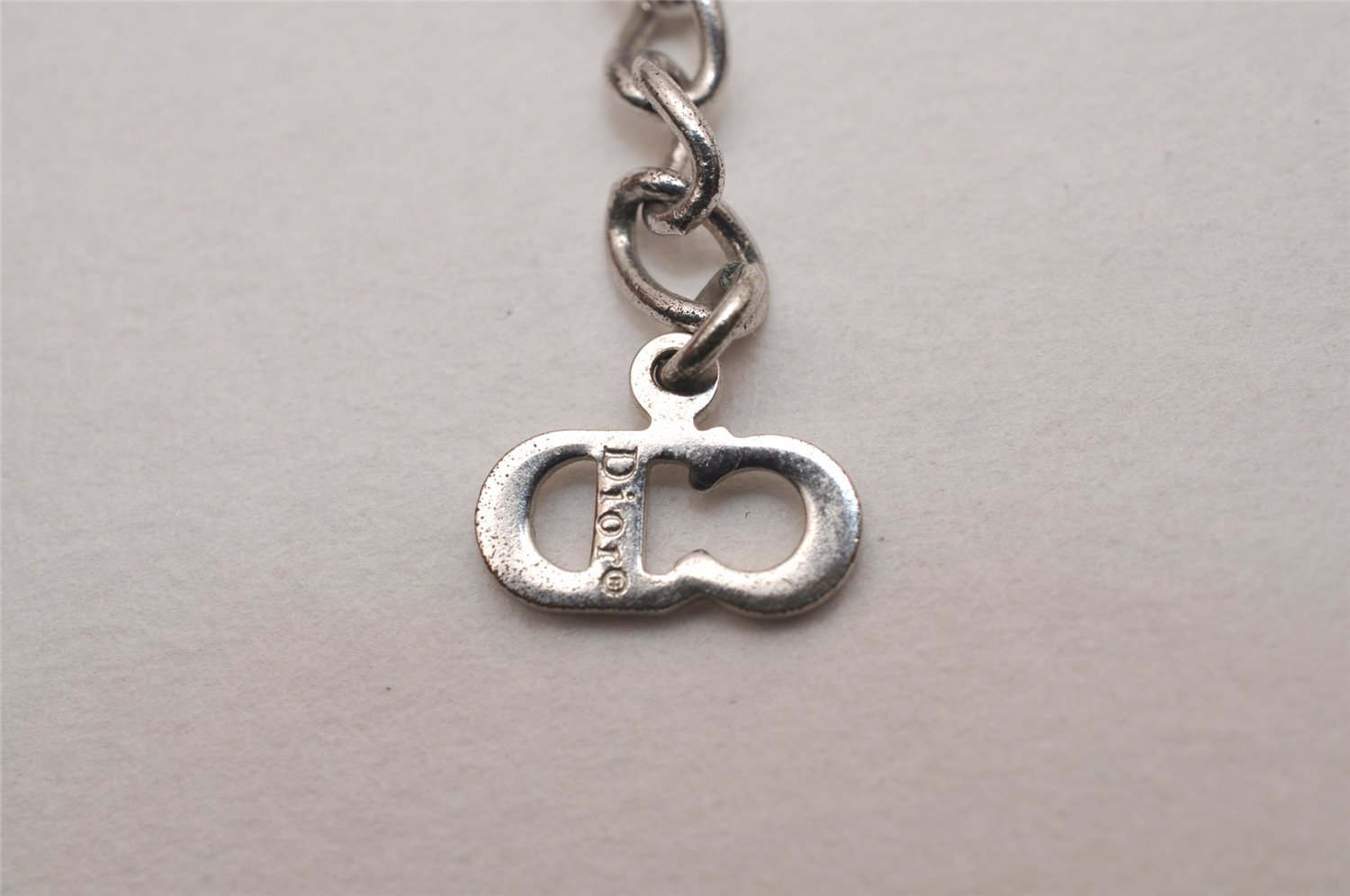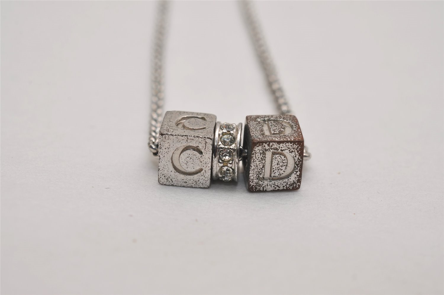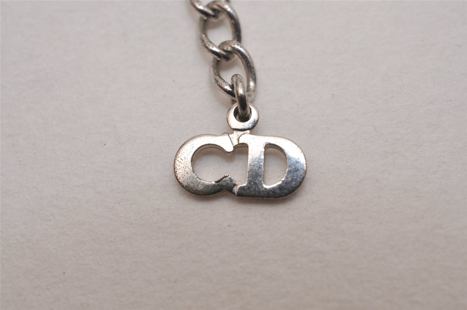 | Authentic Christian Dior Silver Tone Chain Rhinestone Pendant Necklace CD | |