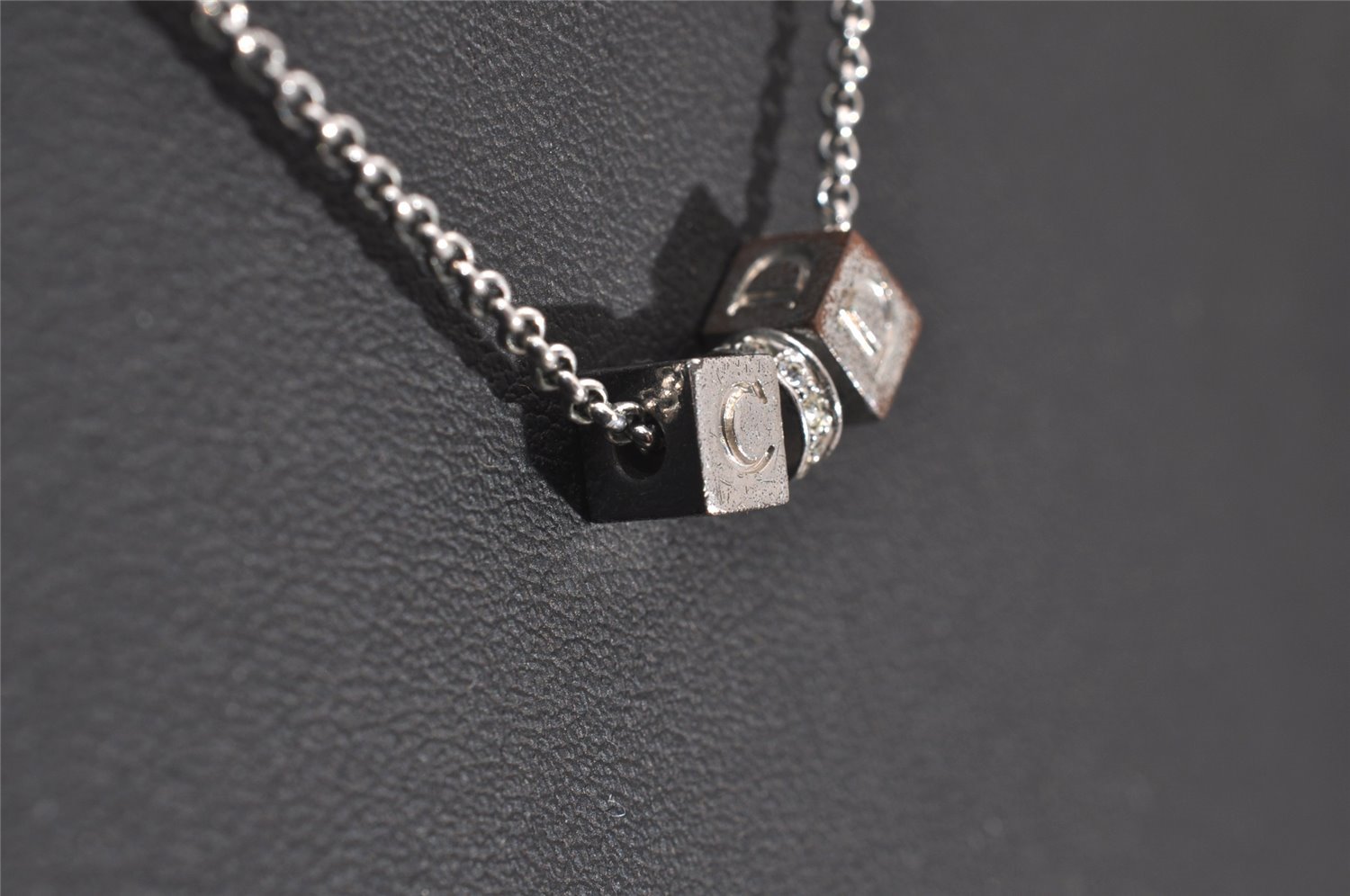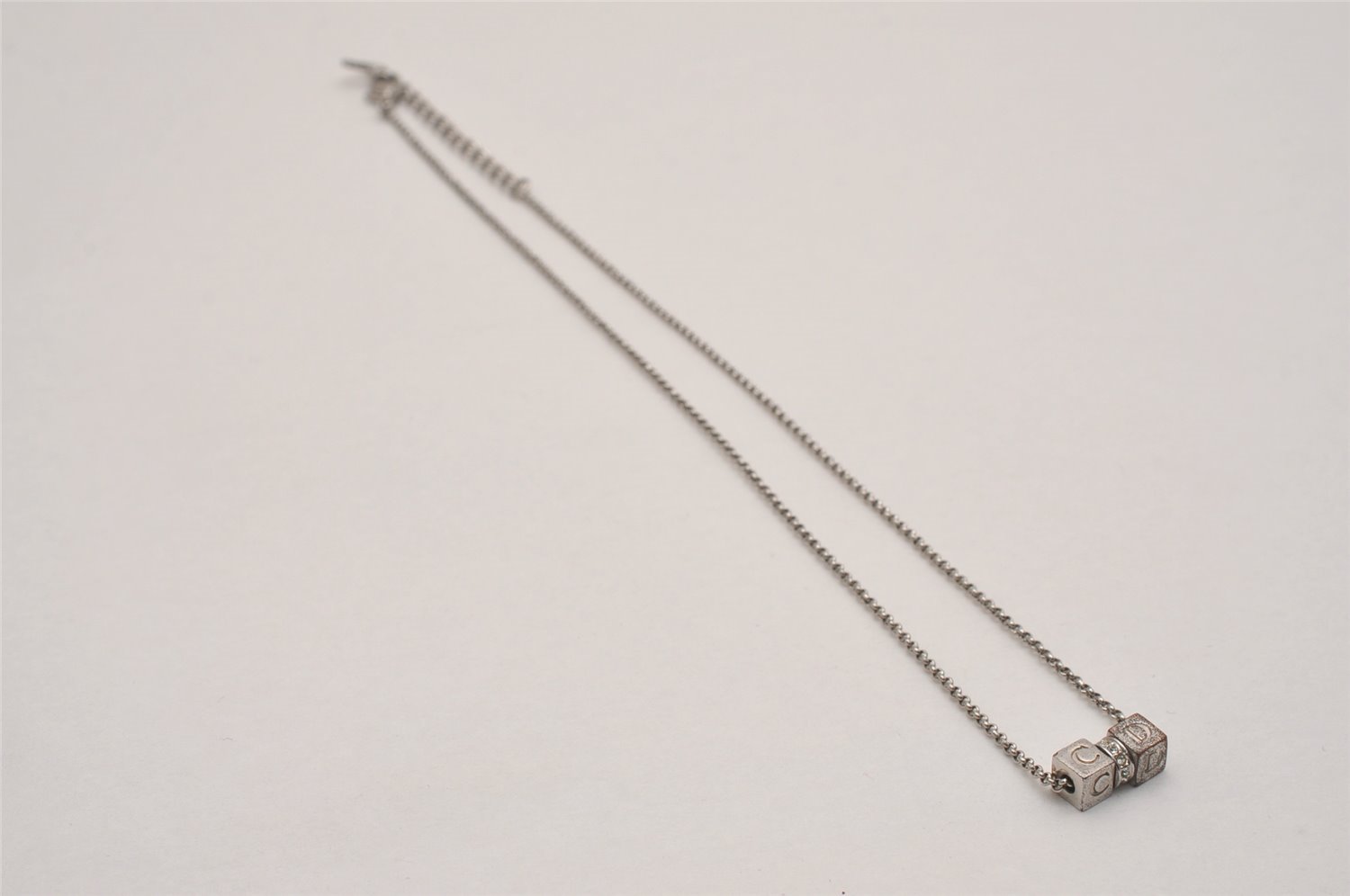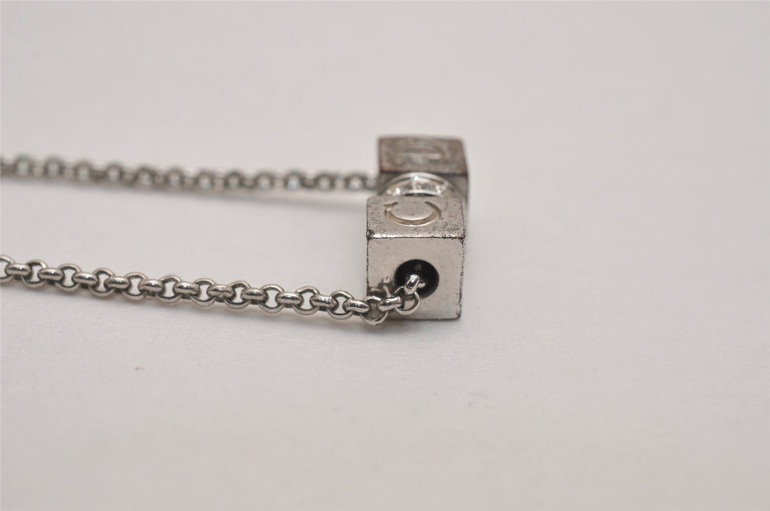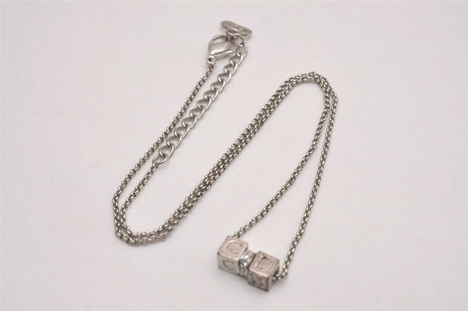 | Authentic Christian Dior Silver Tone Chain Rhinestone Pendant Necklace CD | |