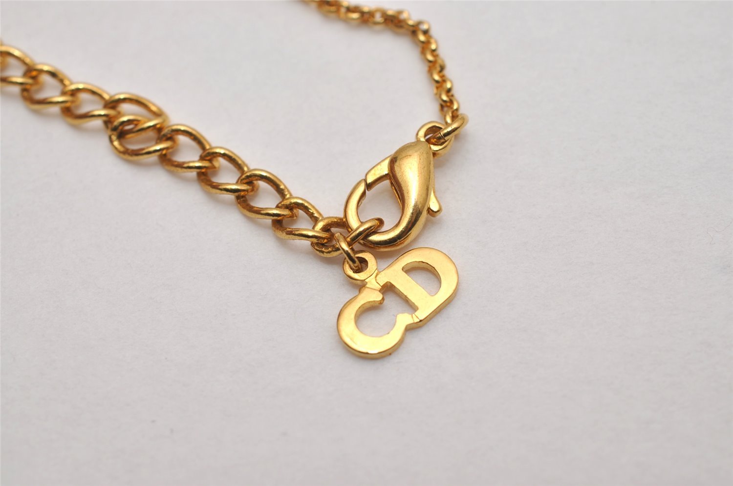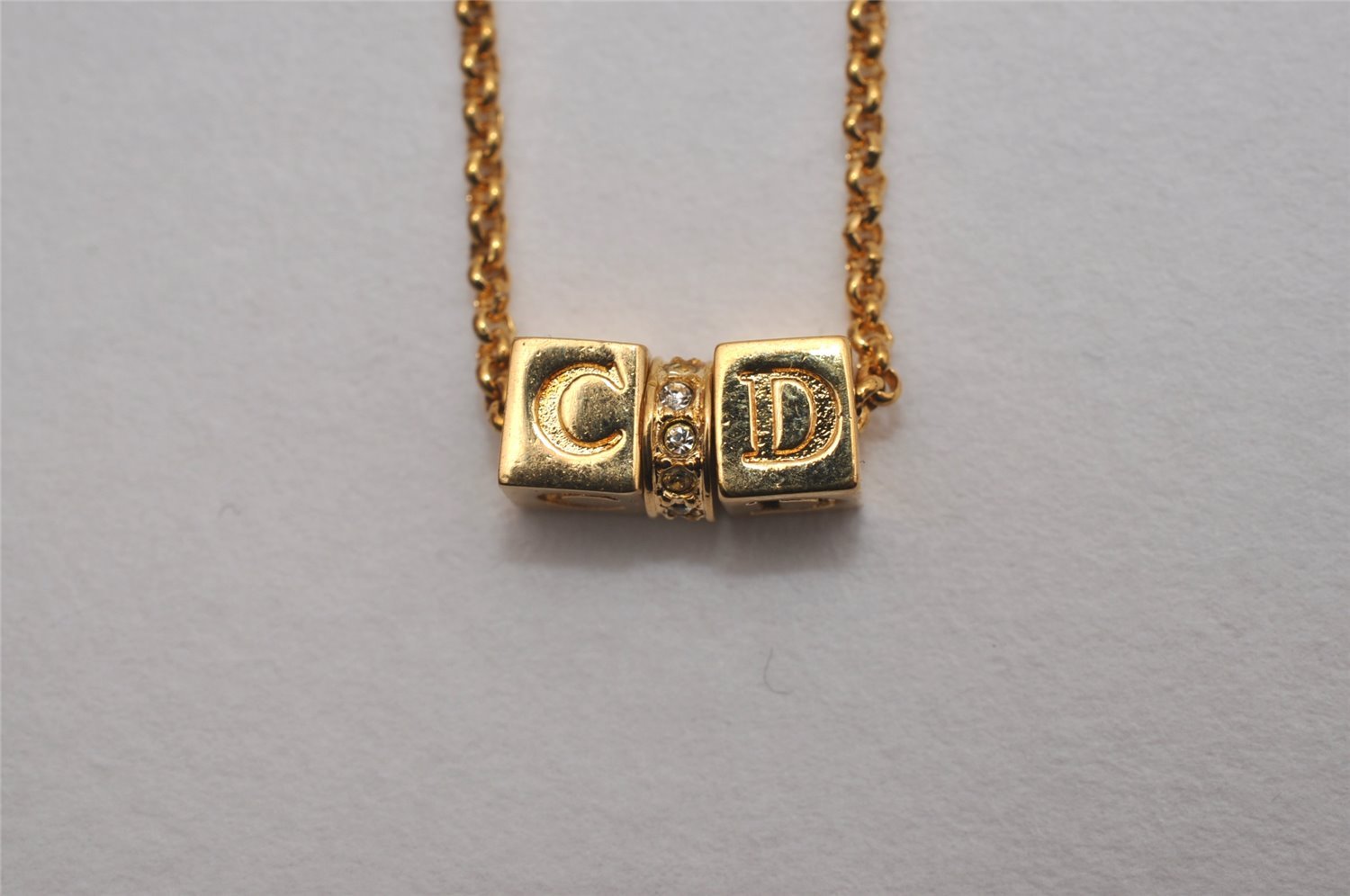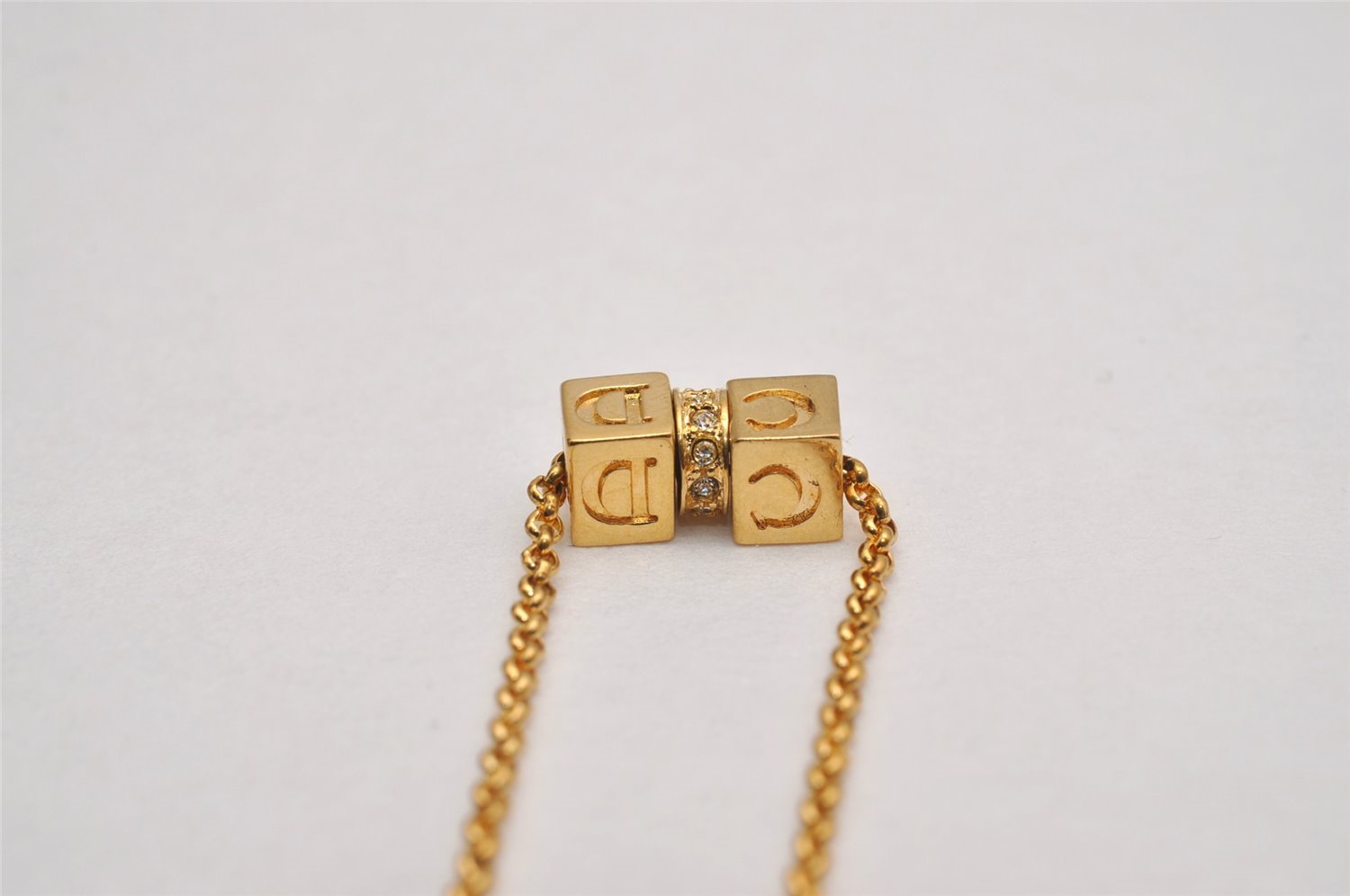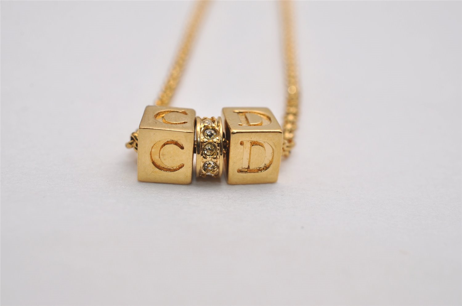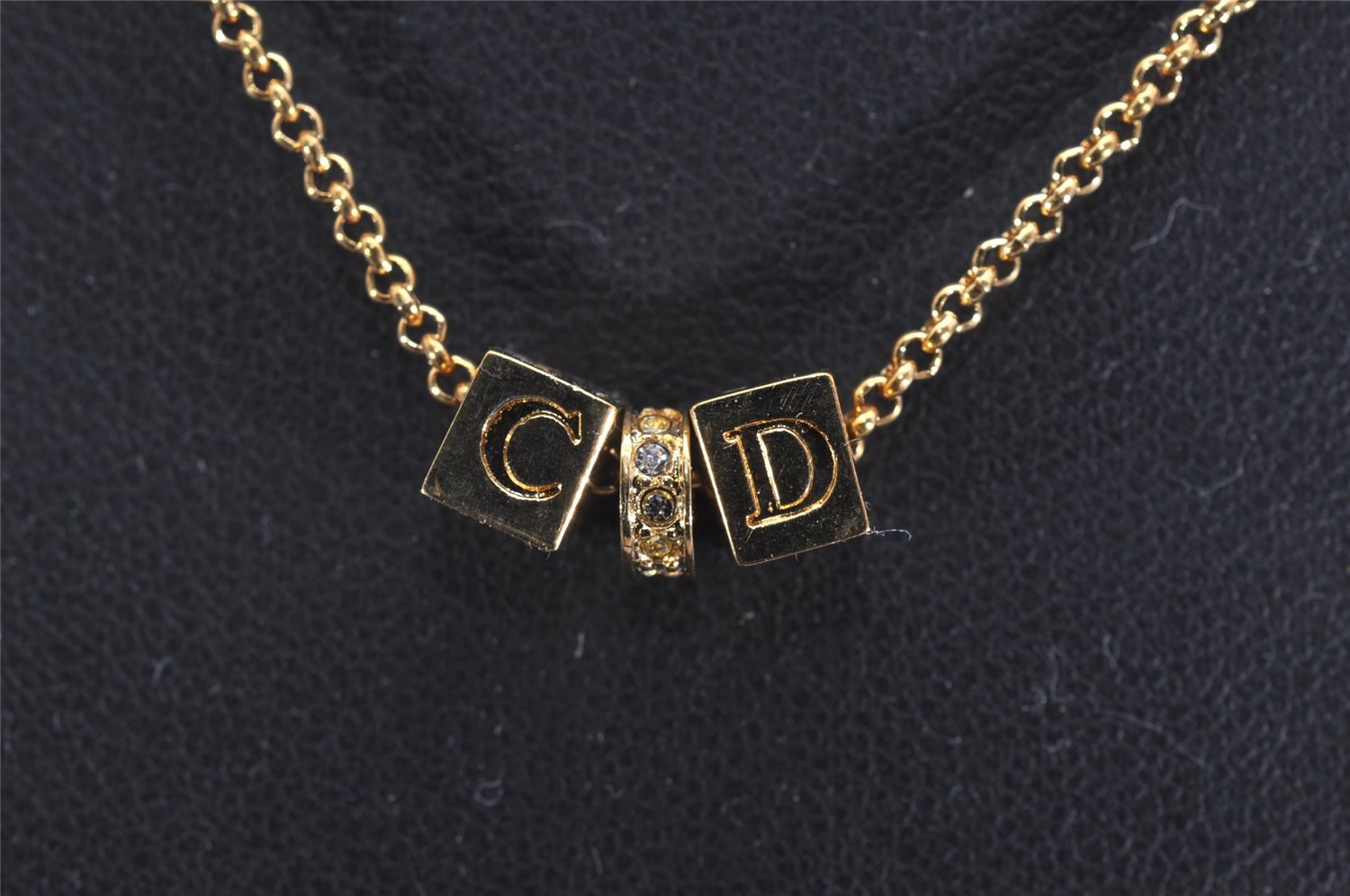 | Authentic Christian Dior Gold Tone Chain Rhinestone Pendant Necklace CD | |