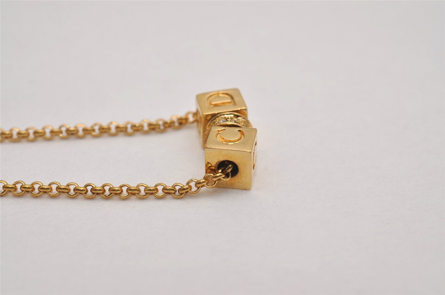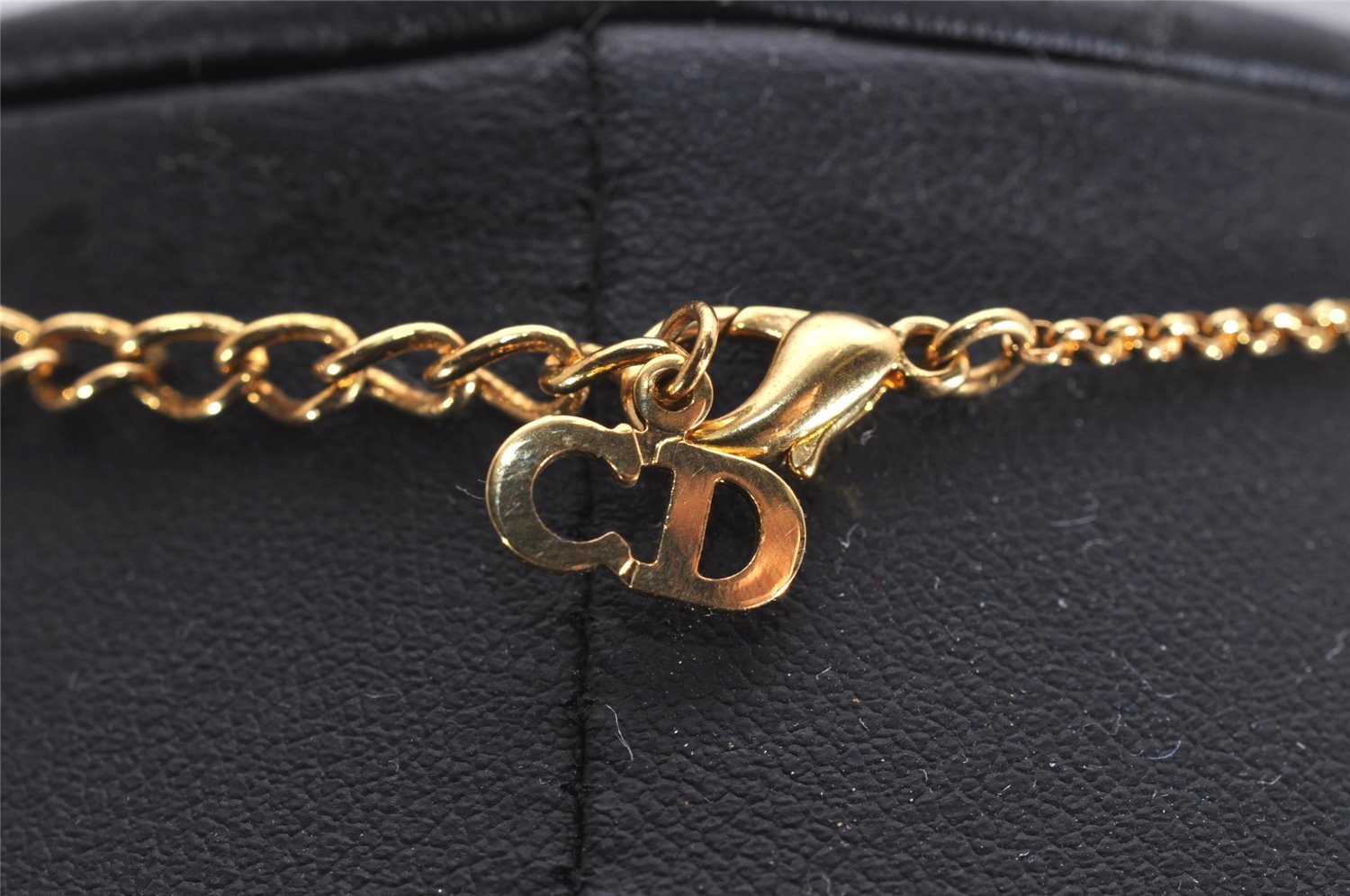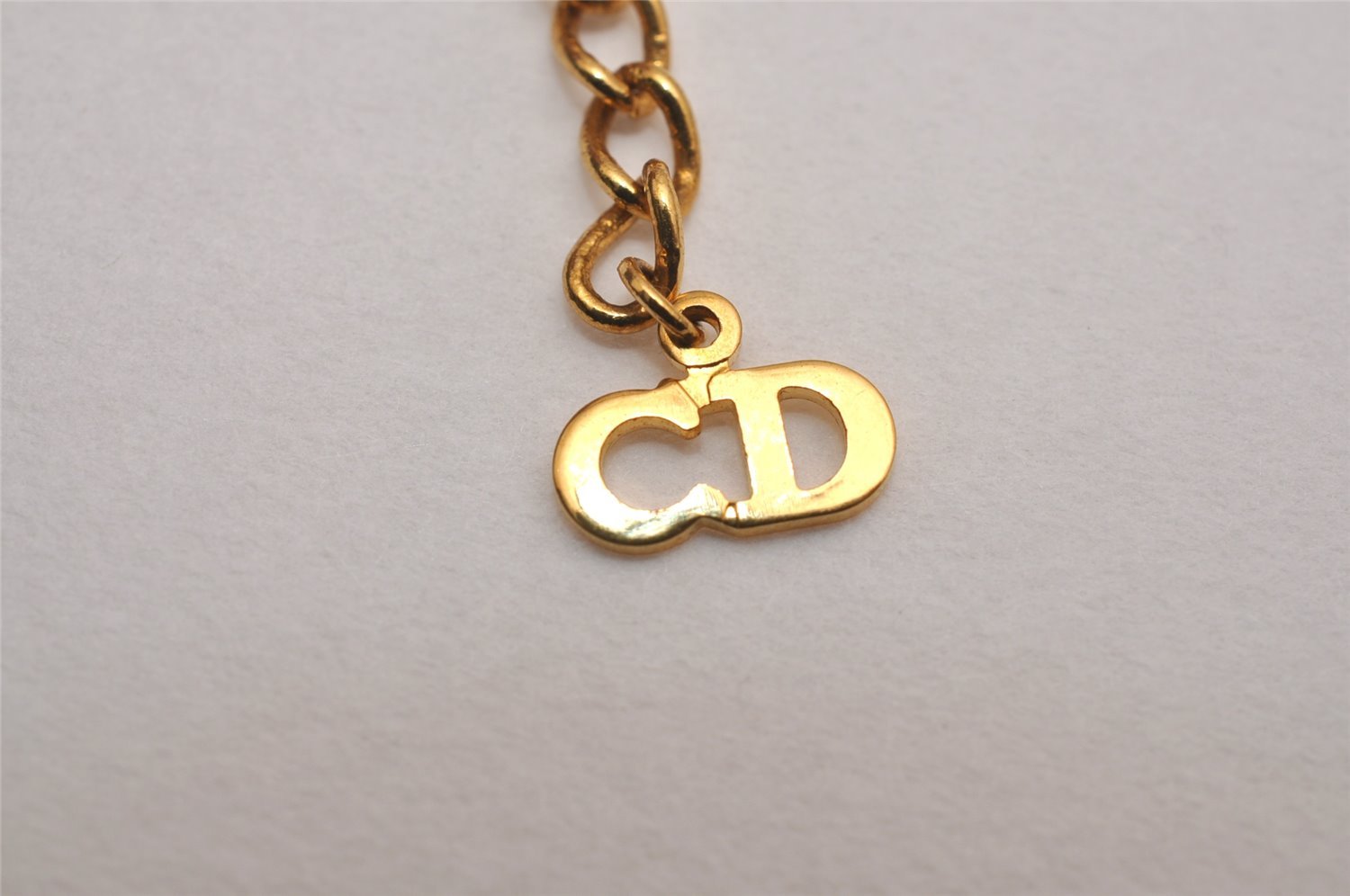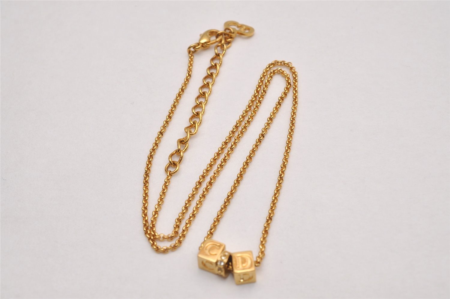 | Authentic Christian Dior Gold Tone Chain Rhinestone Pendant Necklace CD | |