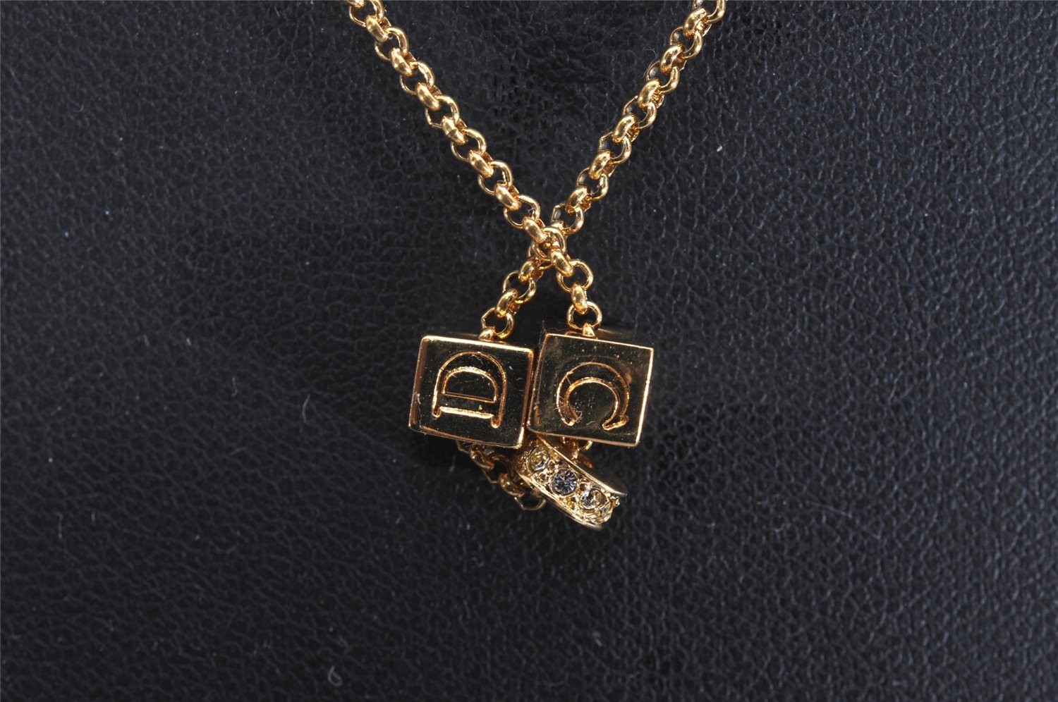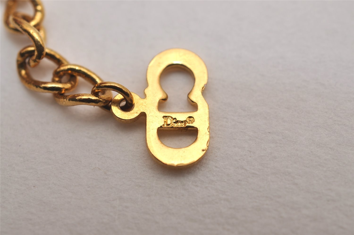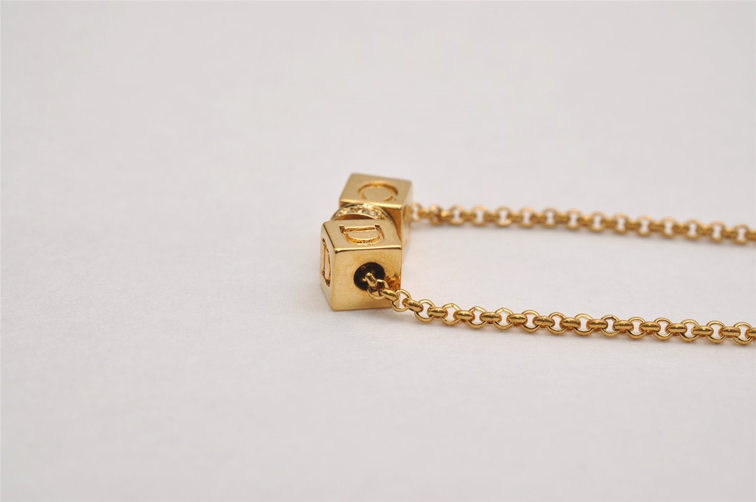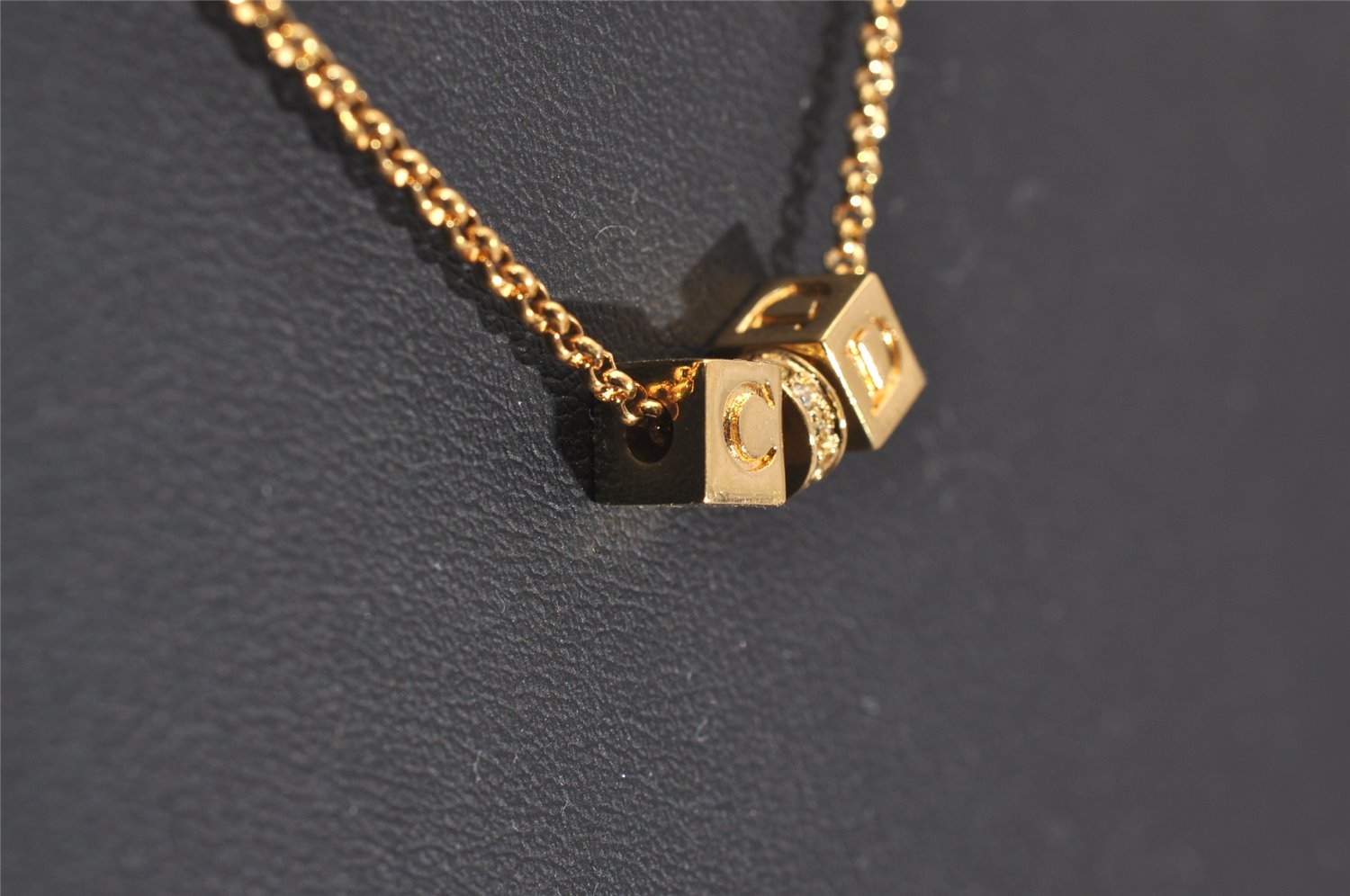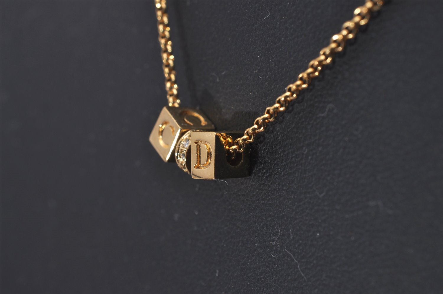 | Authentic Christian Dior Gold Tone Chain Rhinestone Pendant Necklace CD | |