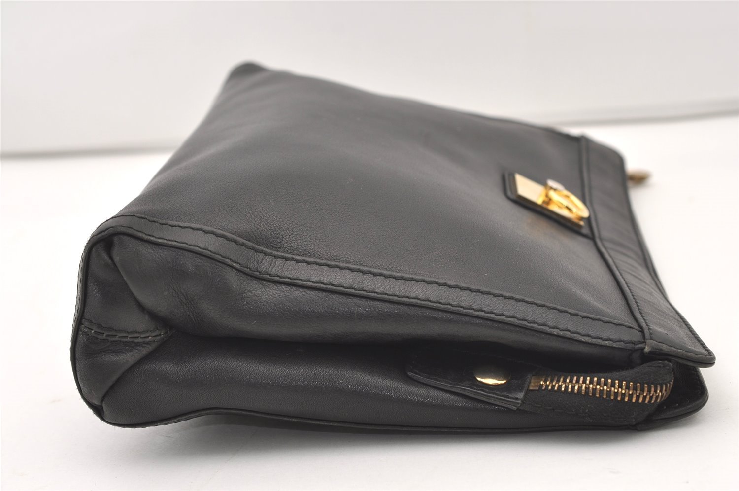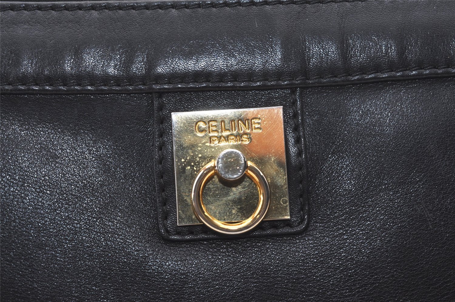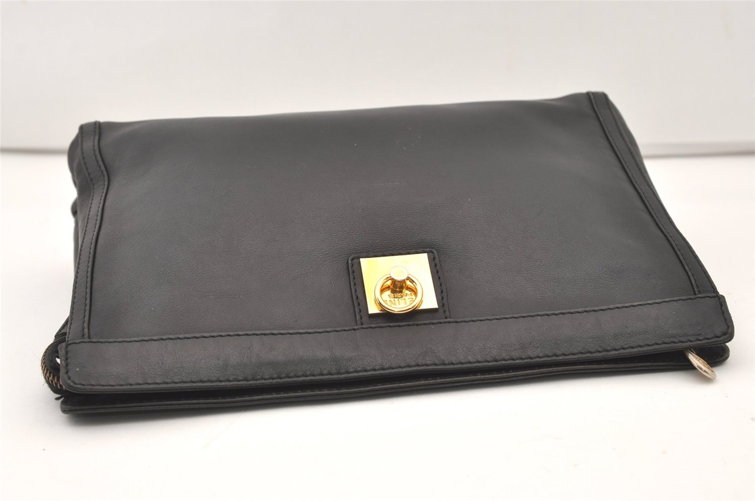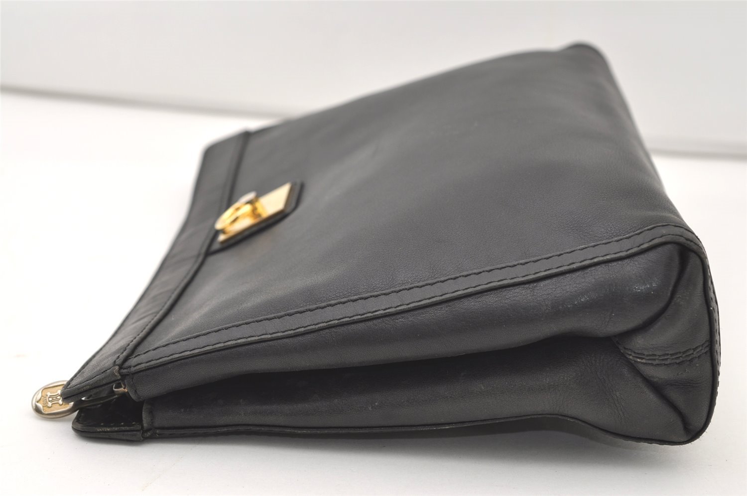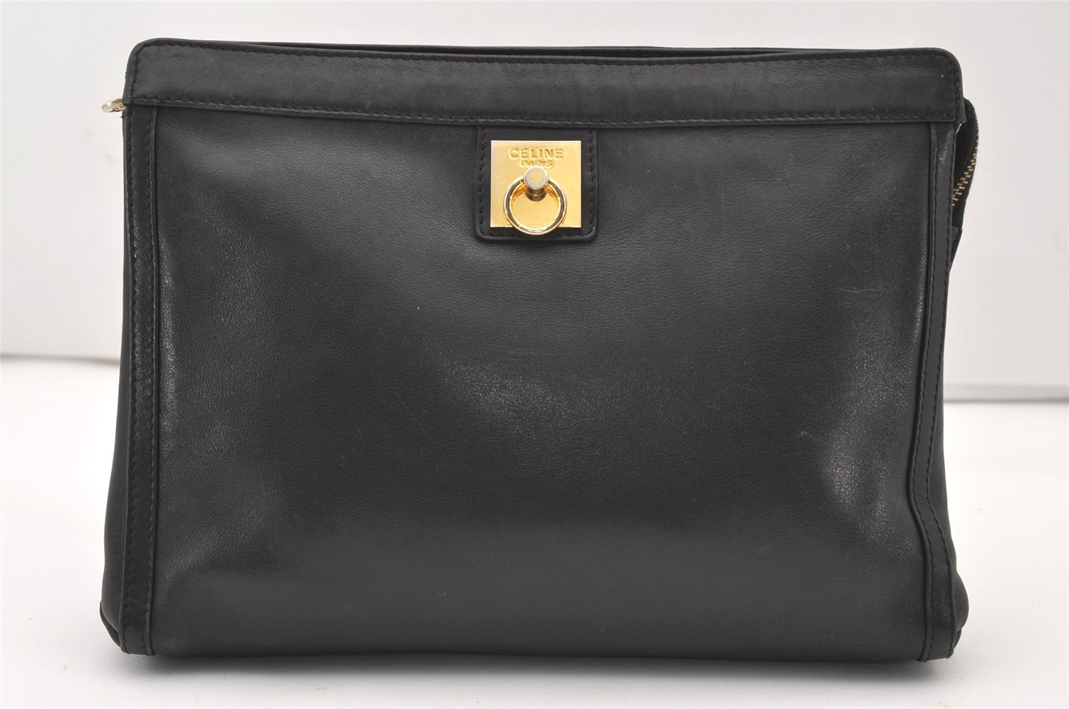 | Authentic CELINE Vintage Clutch Hand Bag Purse Leather Black | |