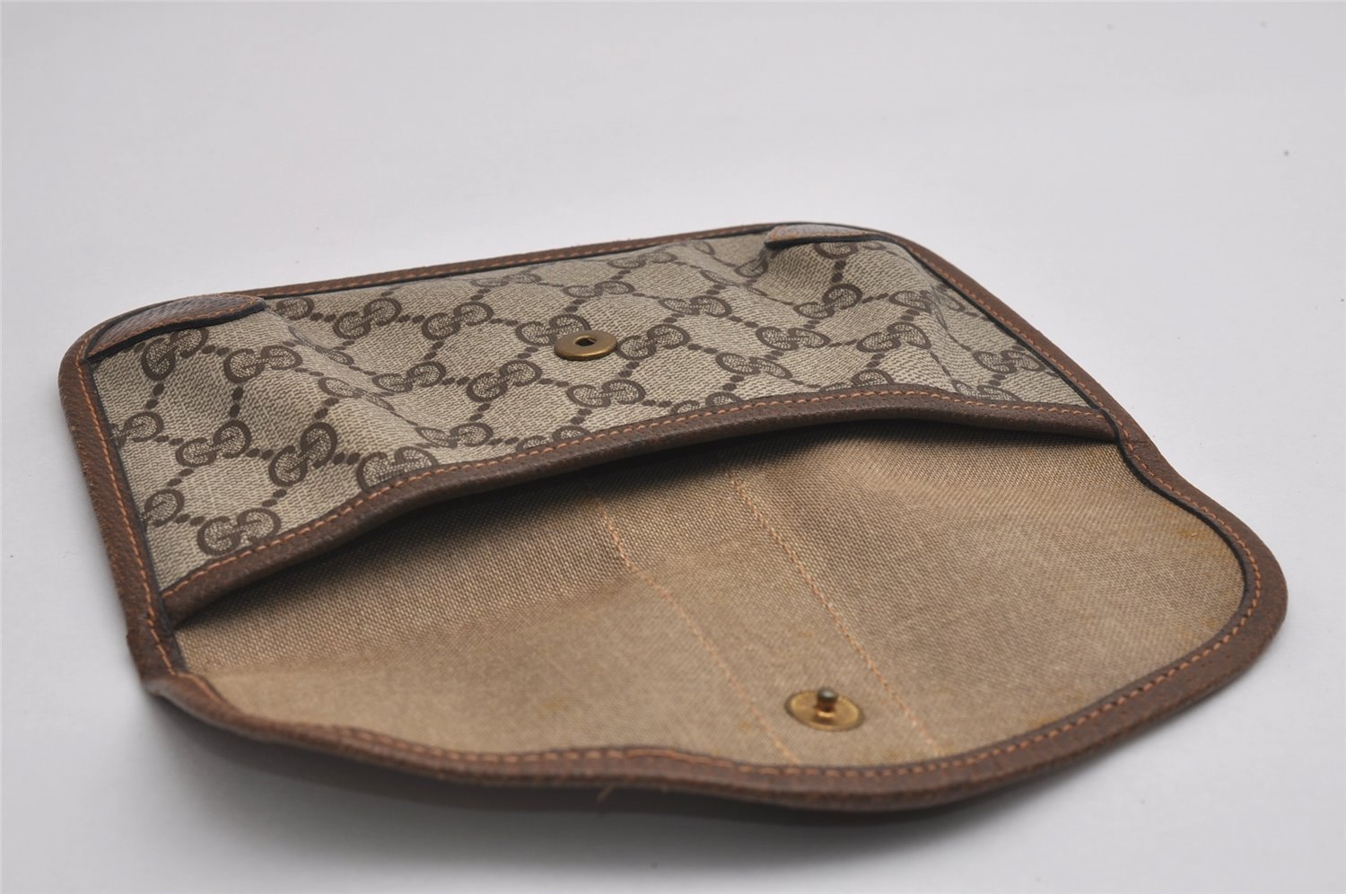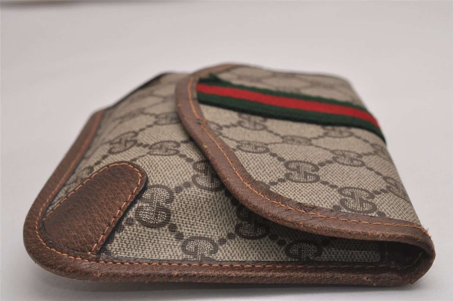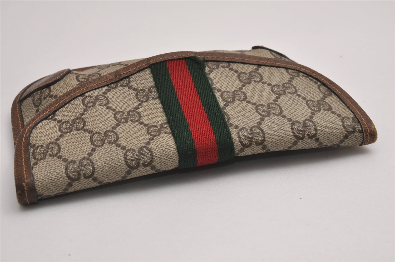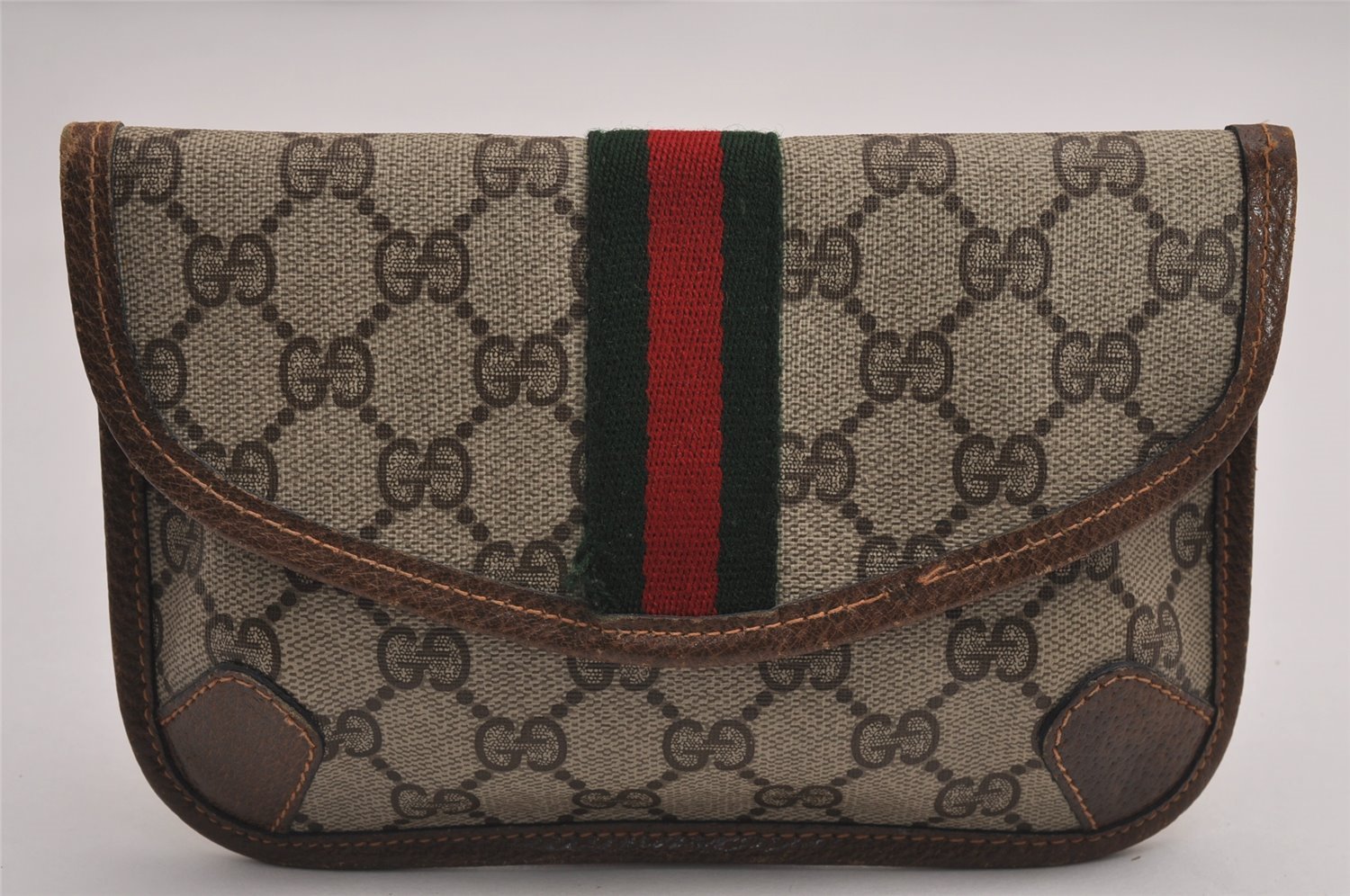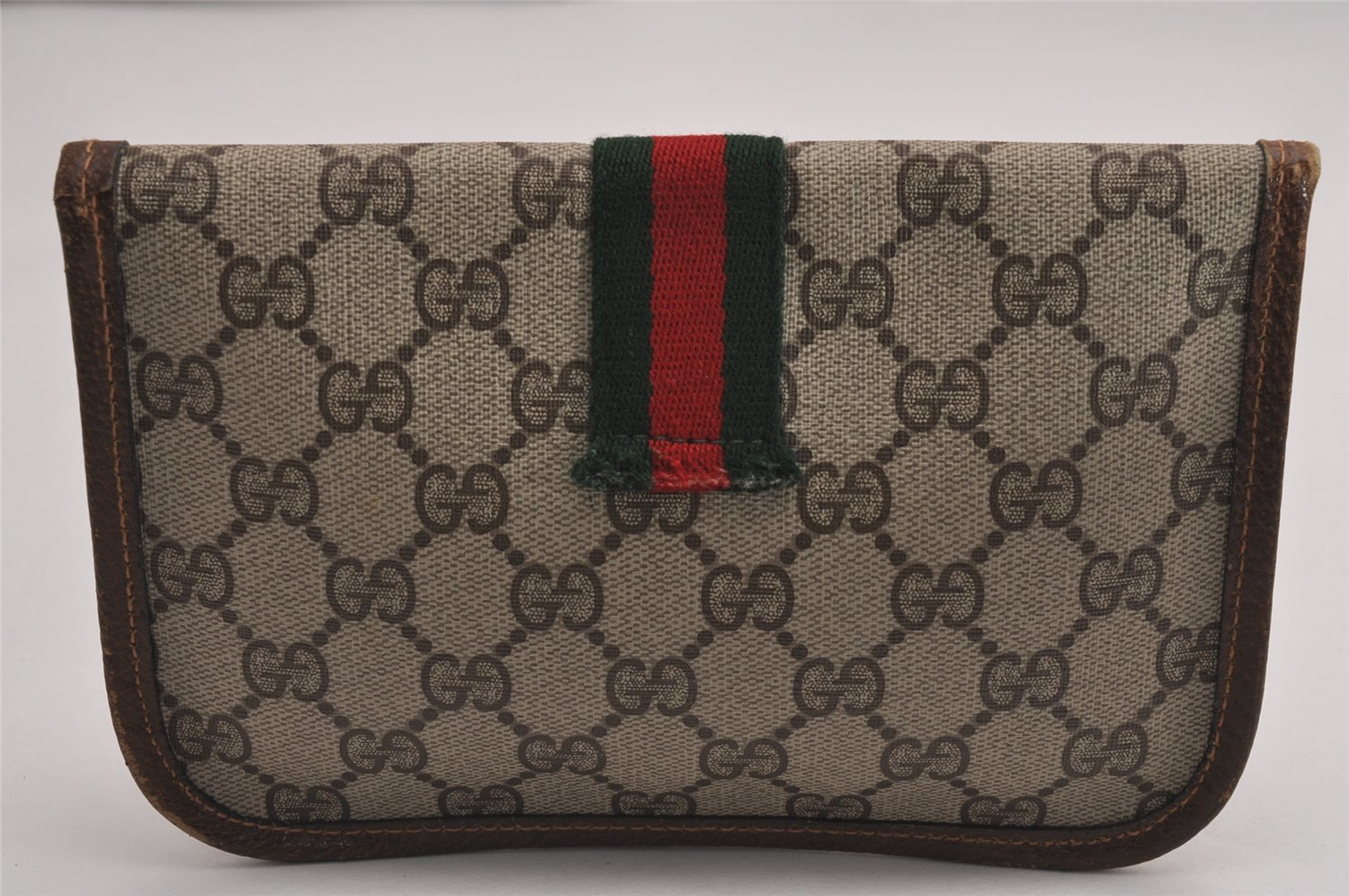 | Authentic GUCCI Vintage Web Sherry Line Pouch Purse GG PVC Leather Brown | |