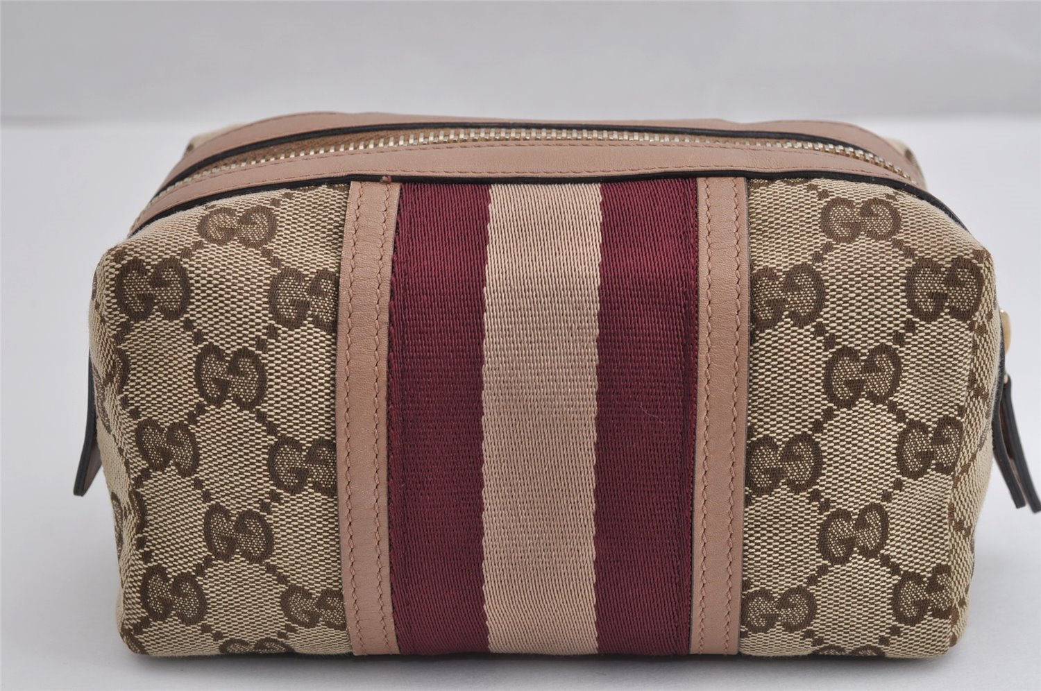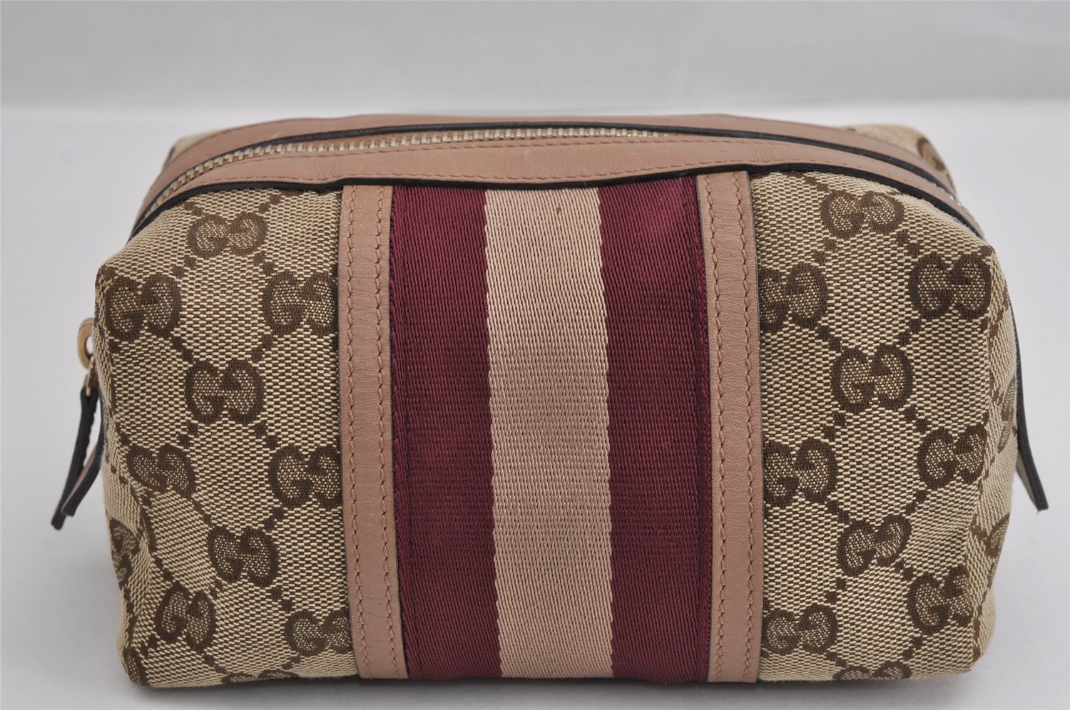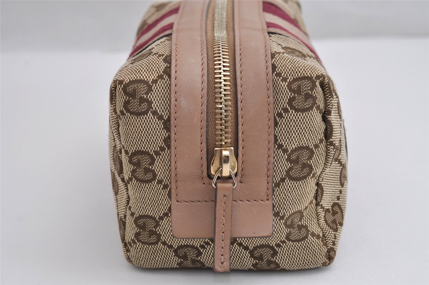 | Authentic GUCCI Sherry Line Pouch Purse GG Canvas Leather 256636 Brown | |