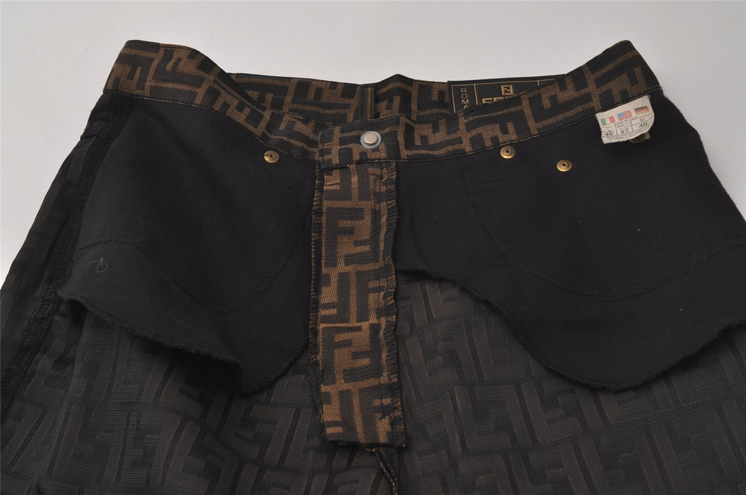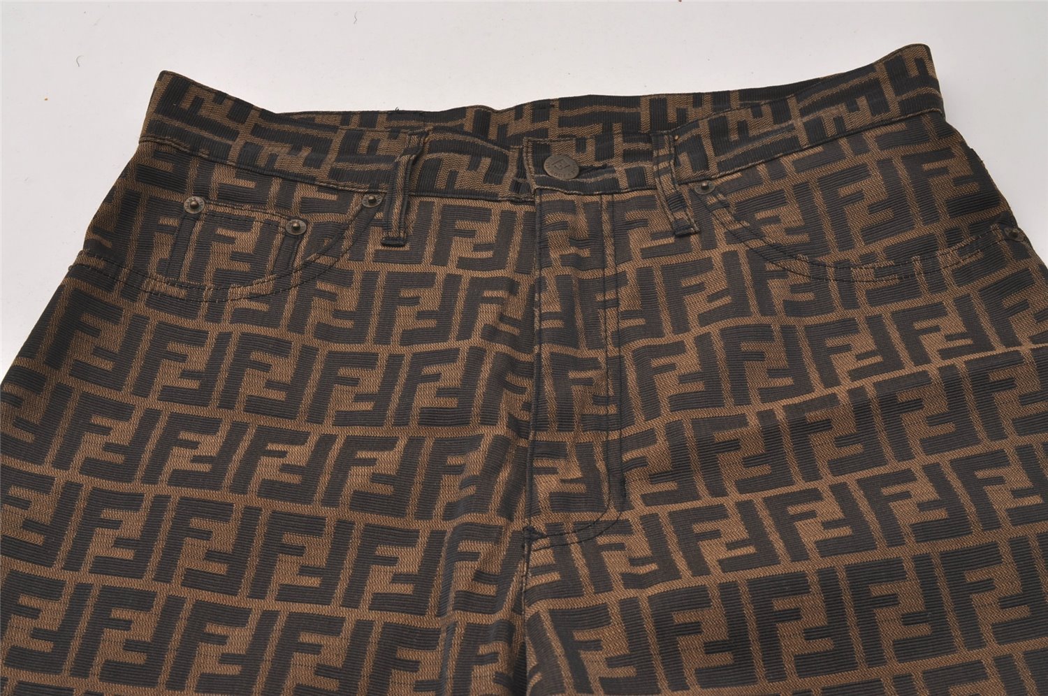 | Authentic FENDI Zucca Pants Canvas 32inches USA Size 10 Brown Black | |