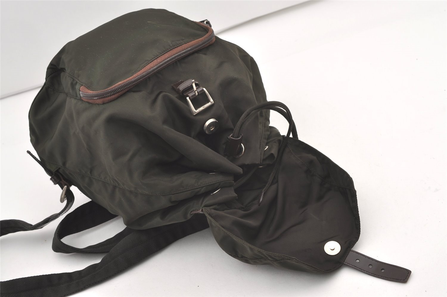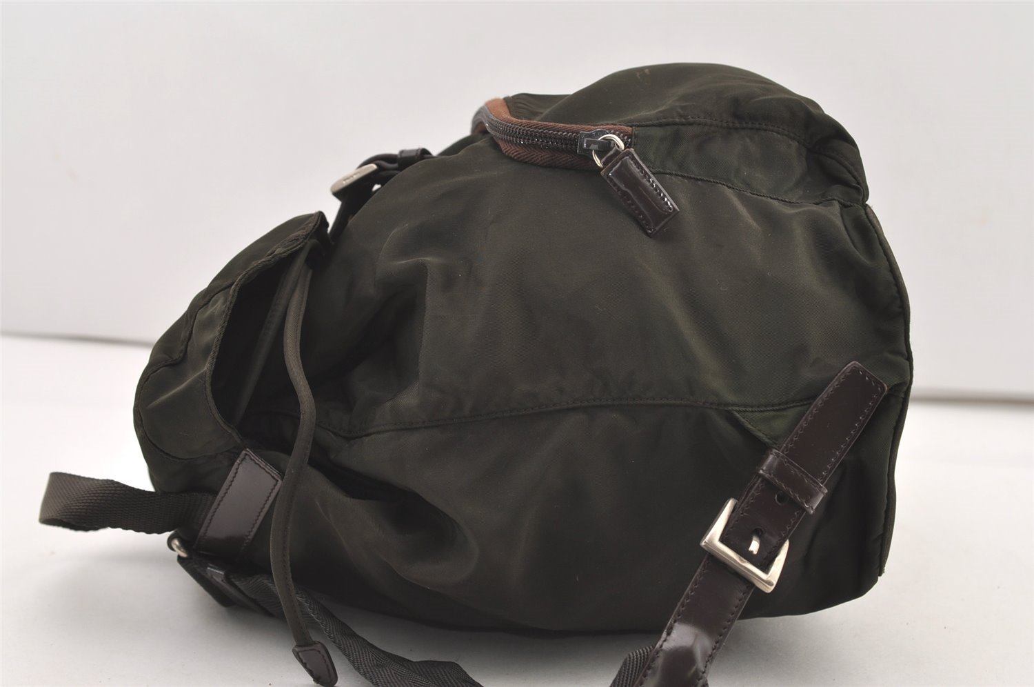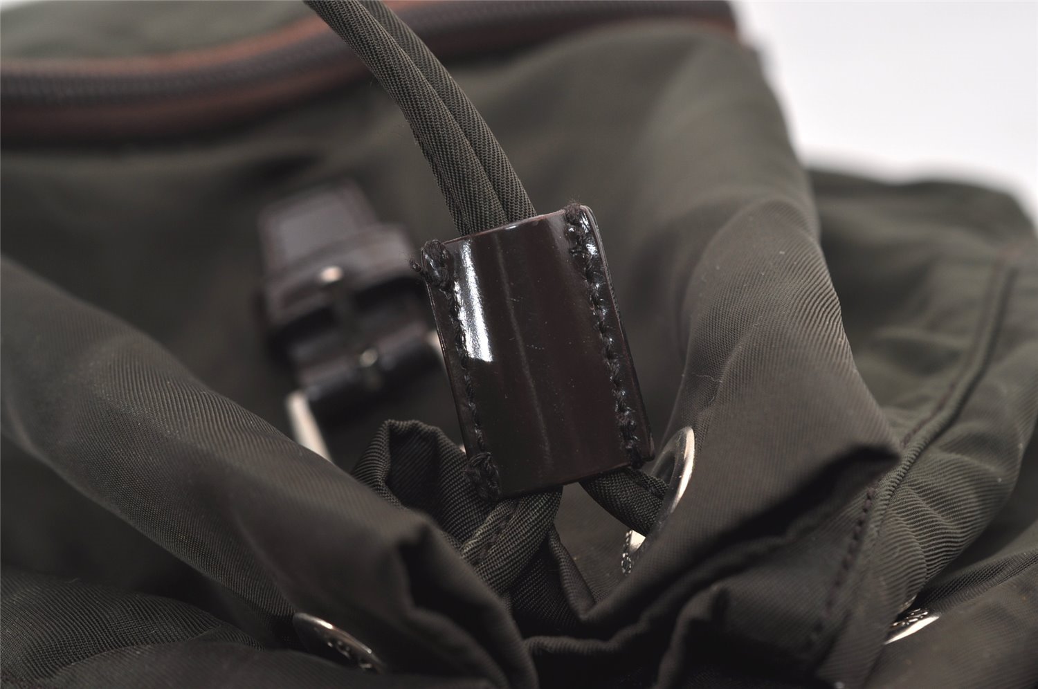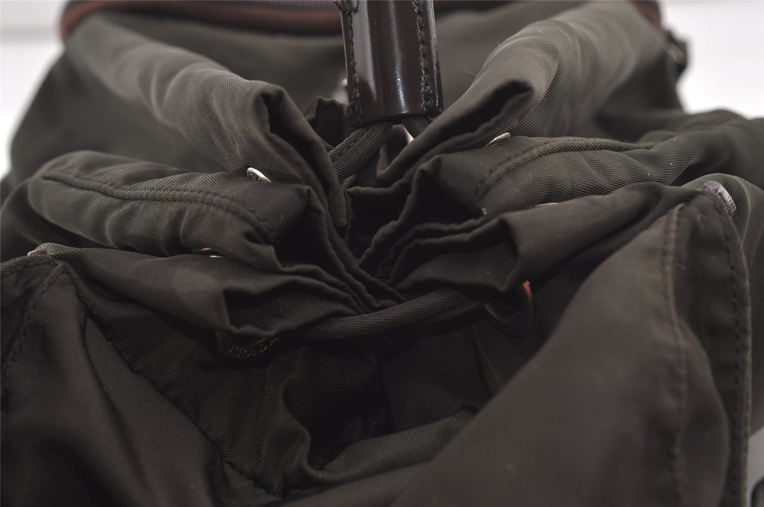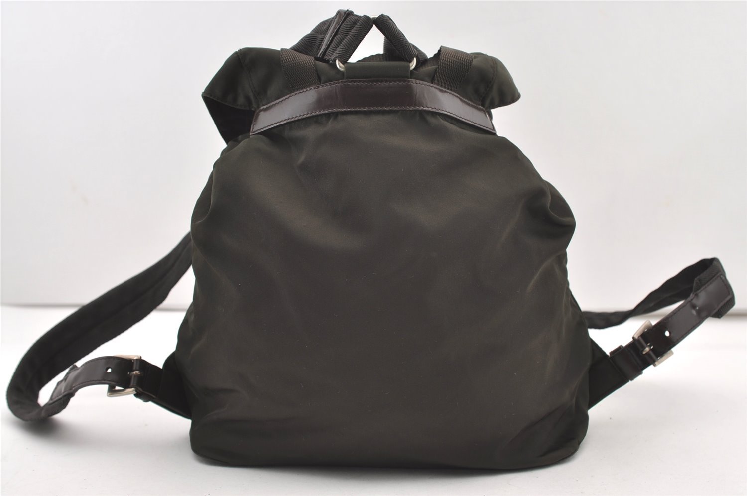 | Authentic PRADA Vintage Nylon Tessuto Leather Drawstring Backpack Khaki | |