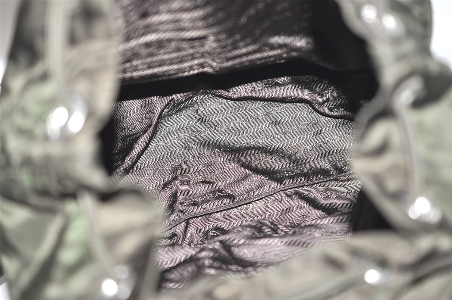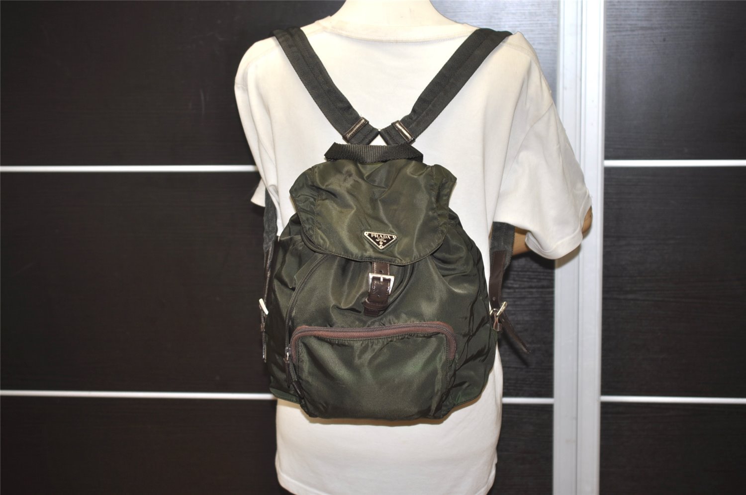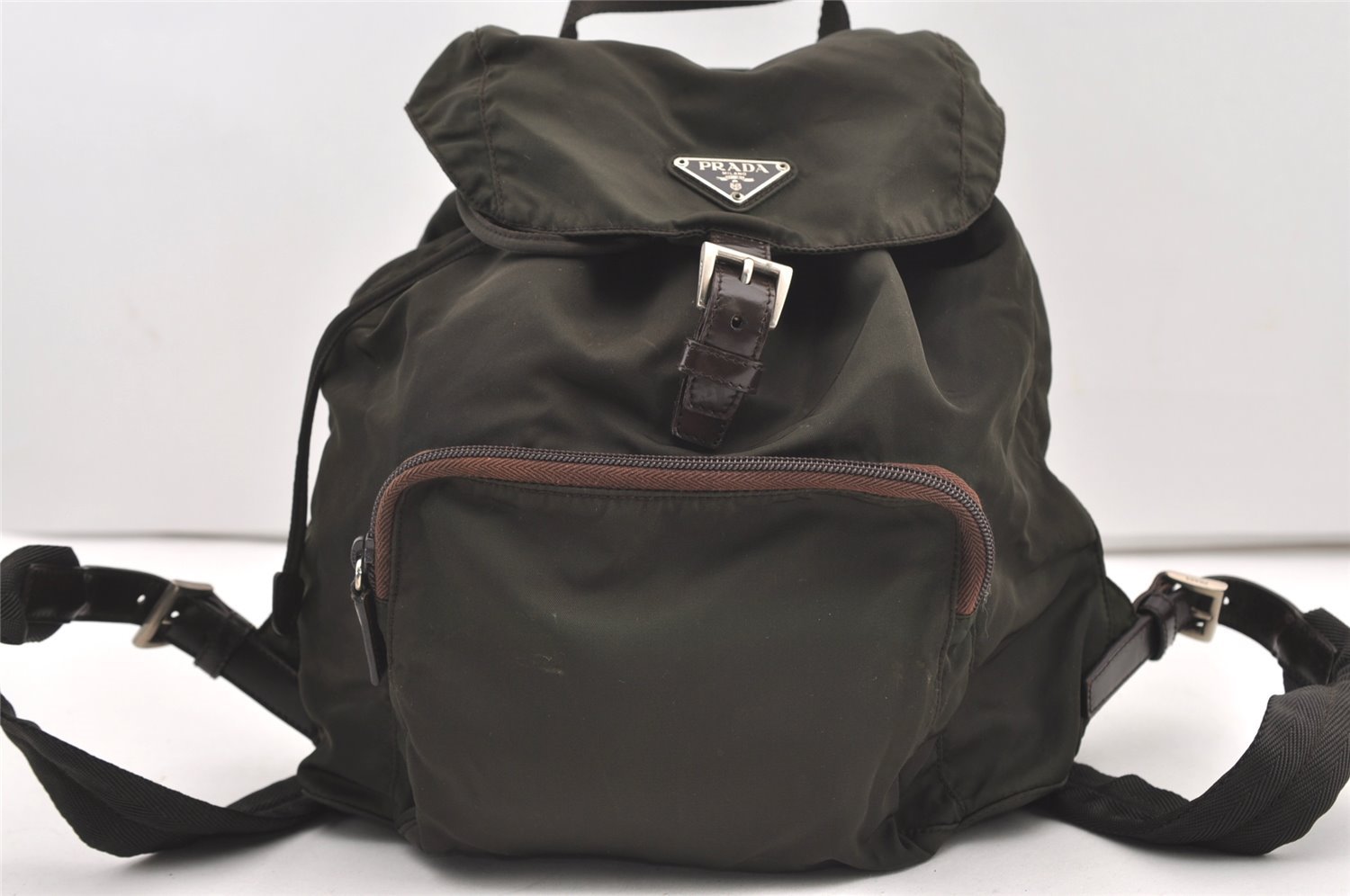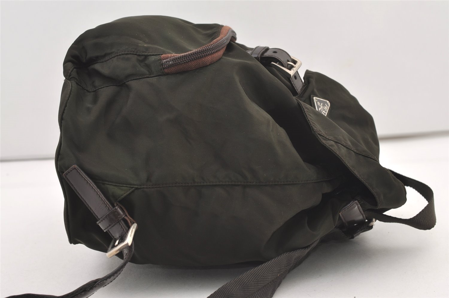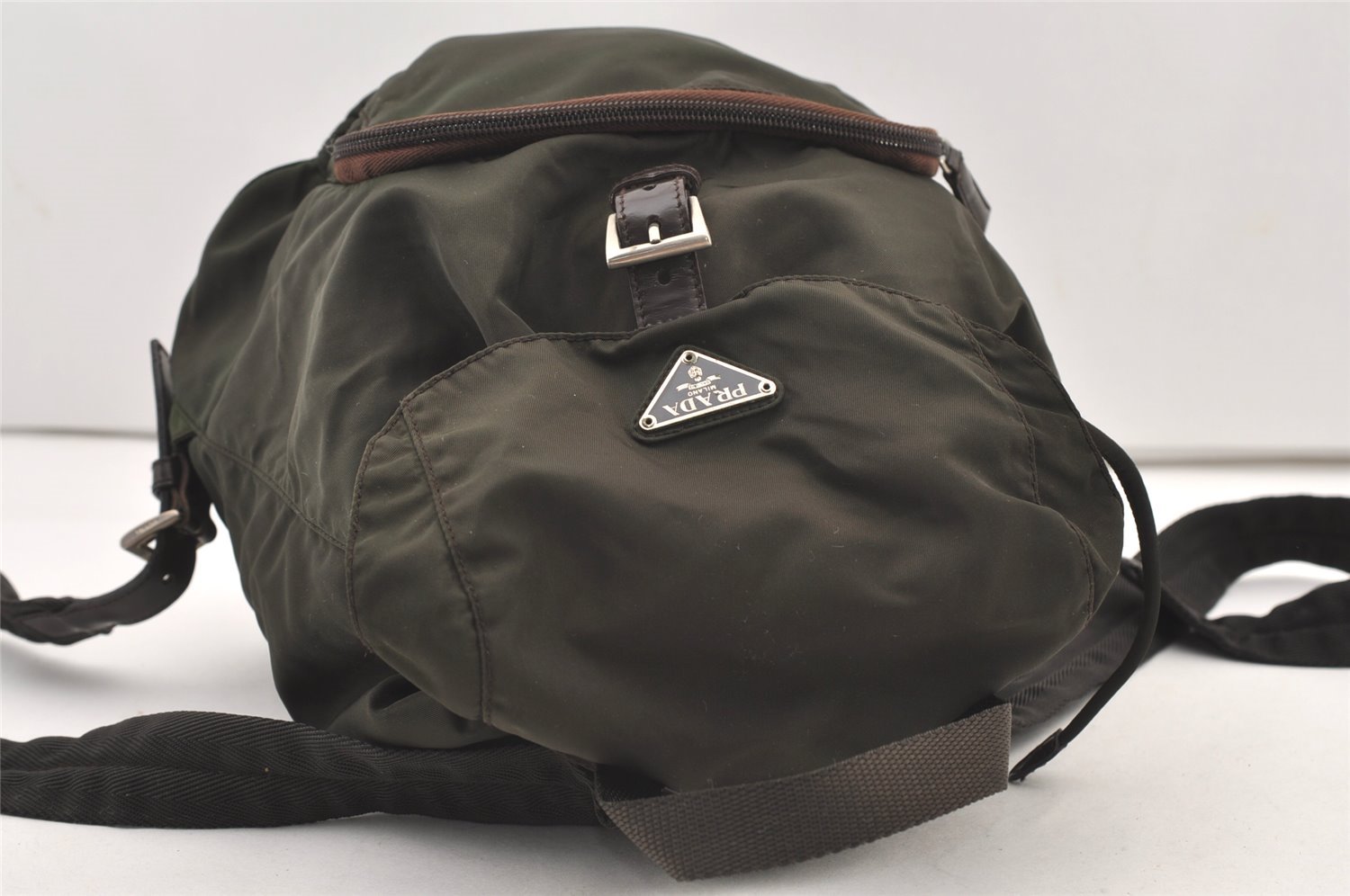 | Authentic PRADA Vintage Nylon Tessuto Leather Drawstring Backpack Khaki | |