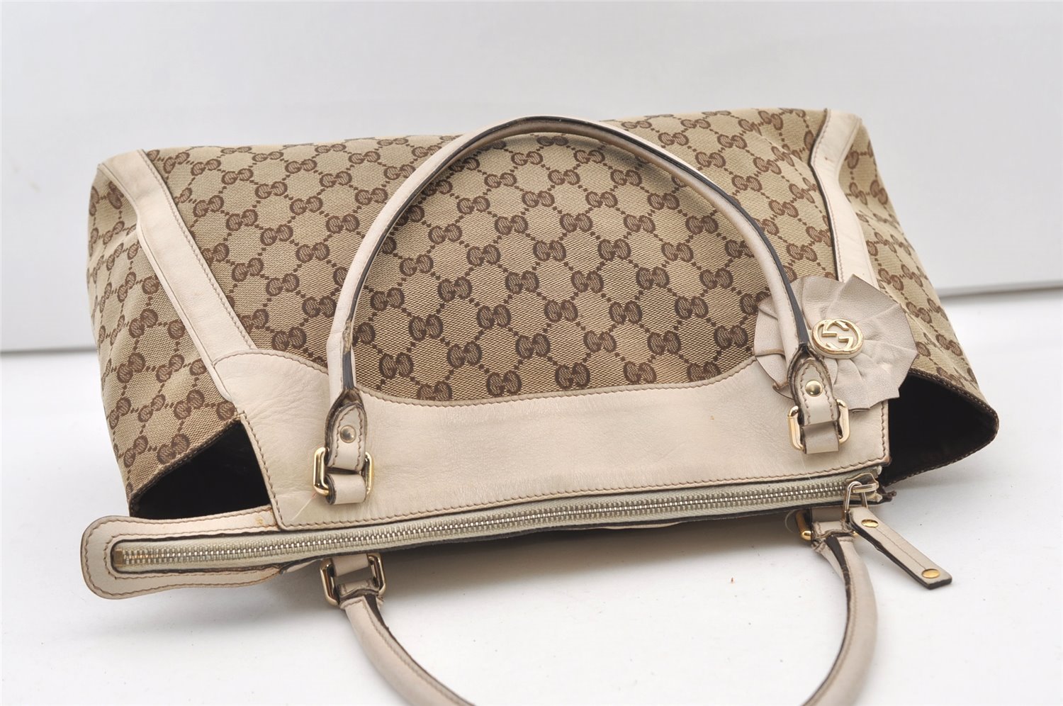 | Authentic GUCCI Trophy Shoulder Tote Bag GG Canvas Leather 189828 Brown | |