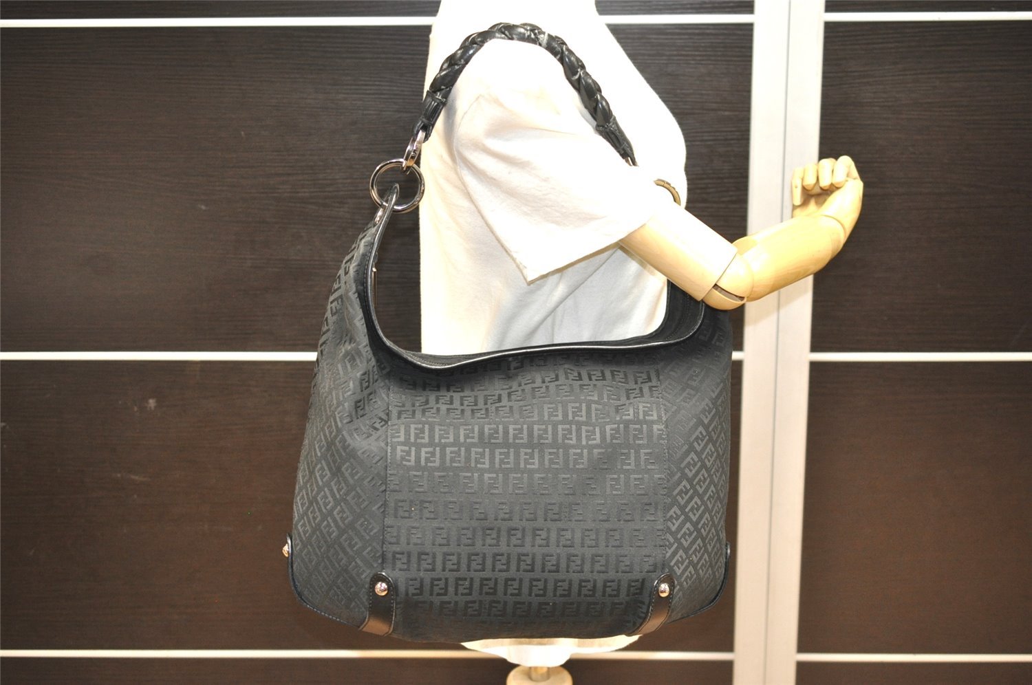 | Authentic FENDI Vintage Zucchino Shoulder Hand Bag Canvas Leather Black | |