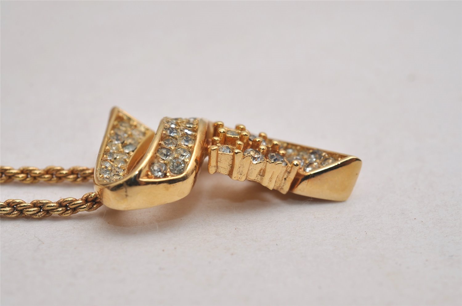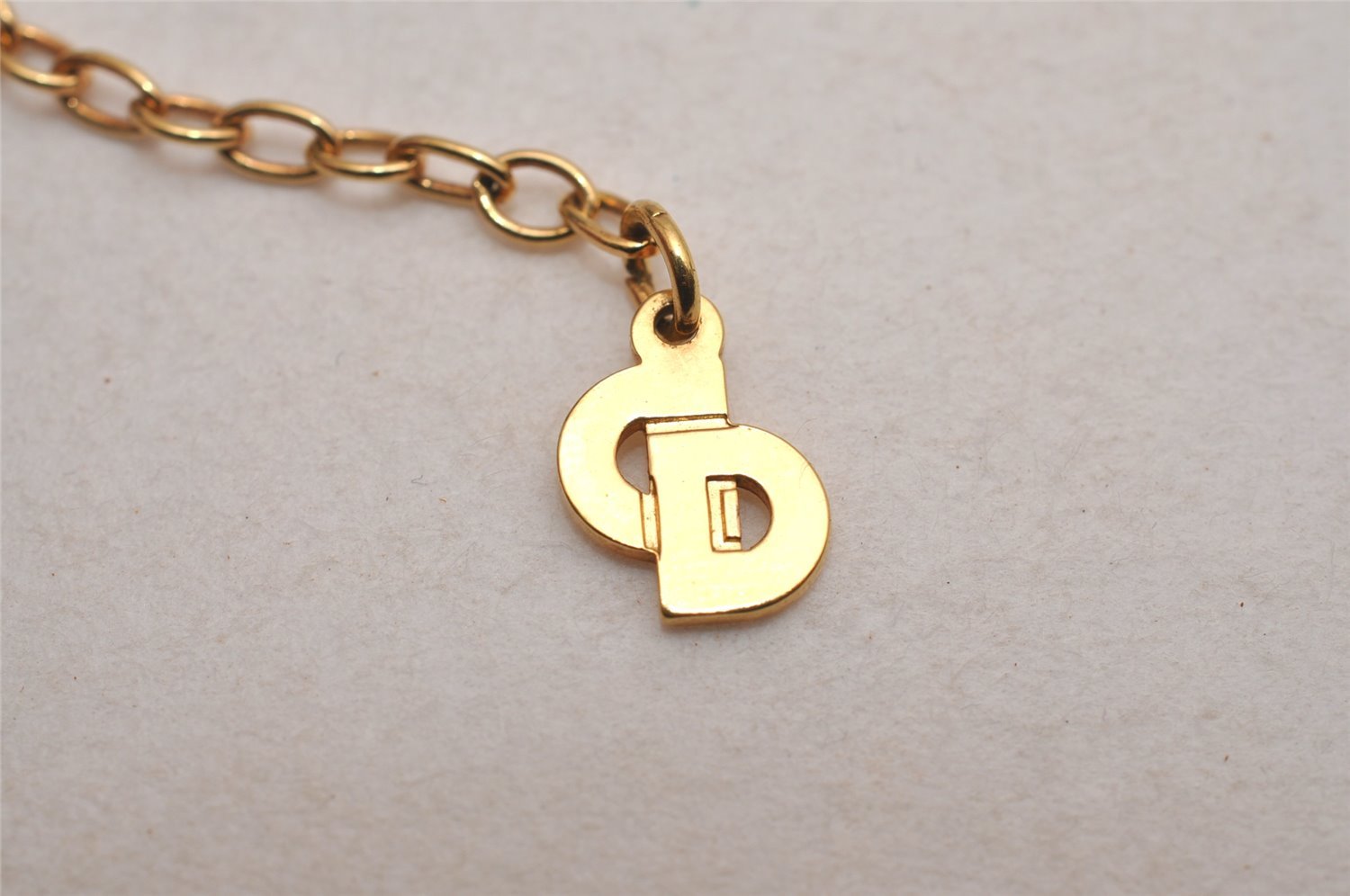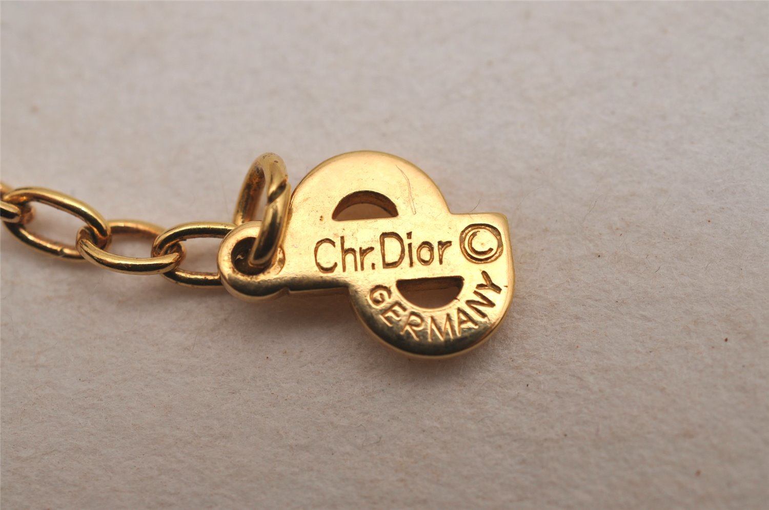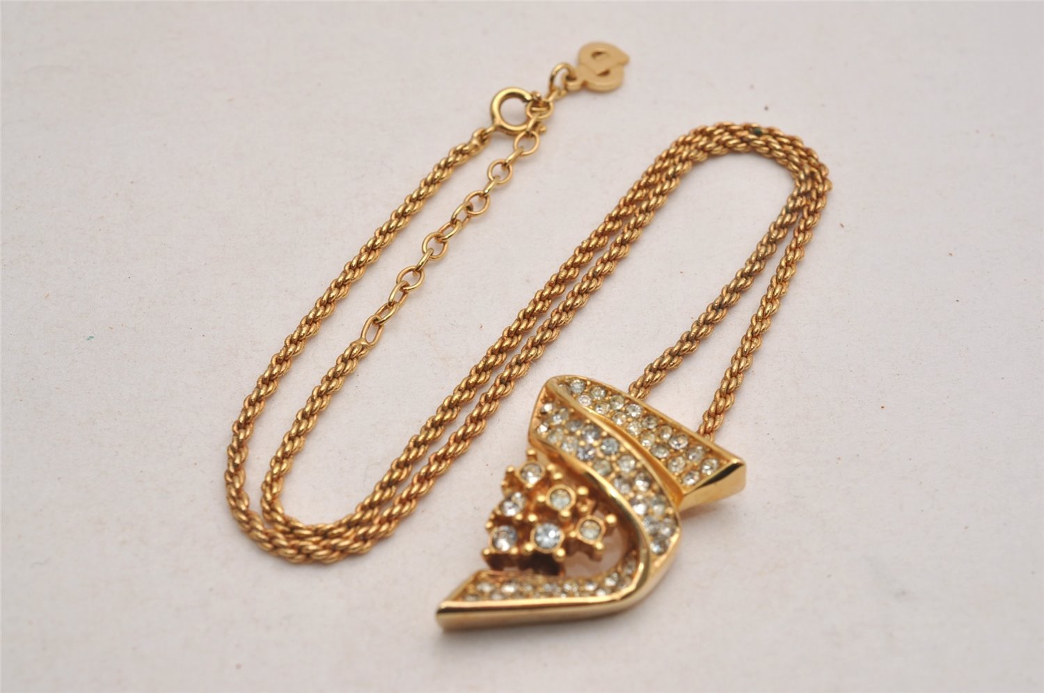 | Authentic Christian Dior Gold Tone Chain Rhinestone Pendant Necklace CD | |