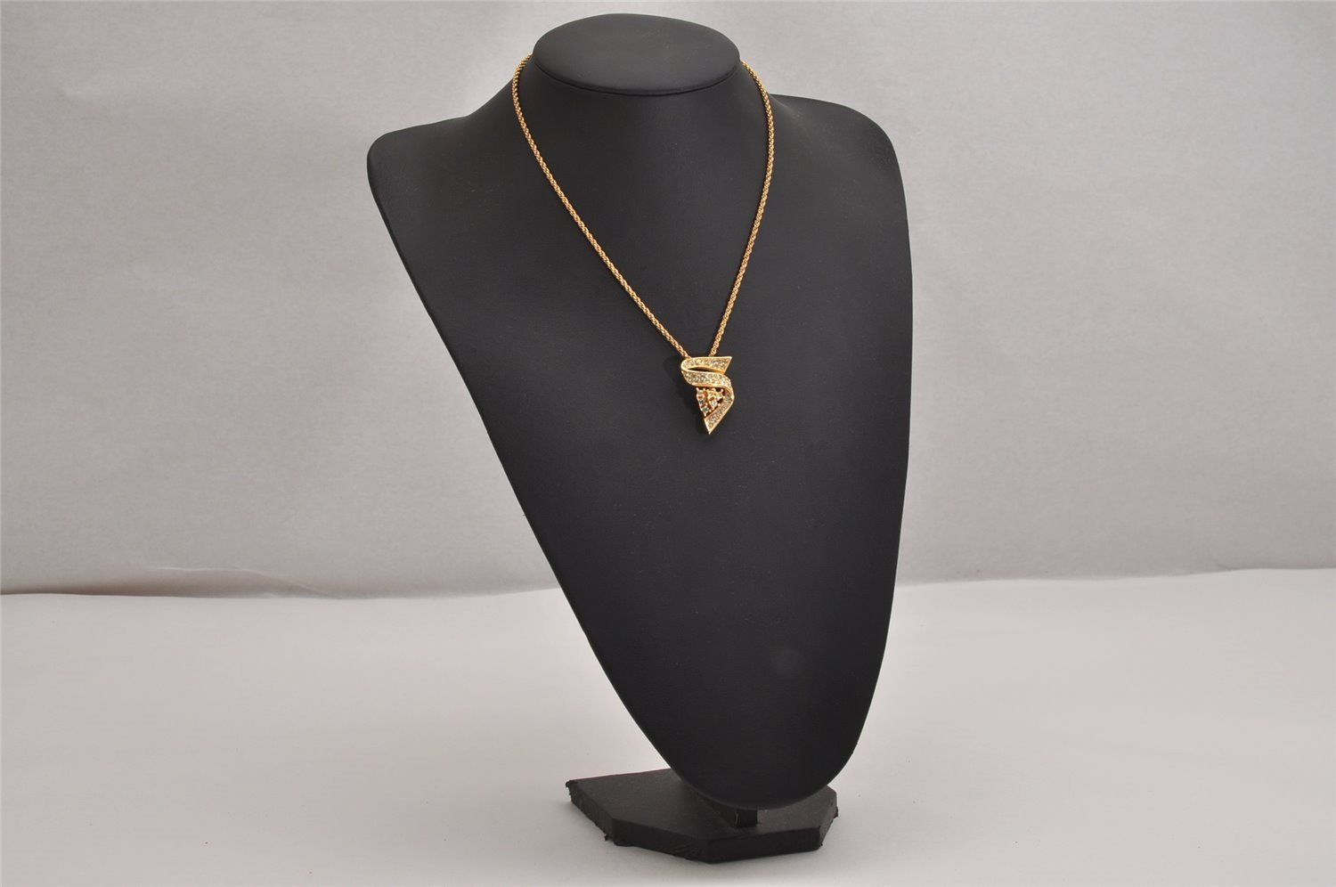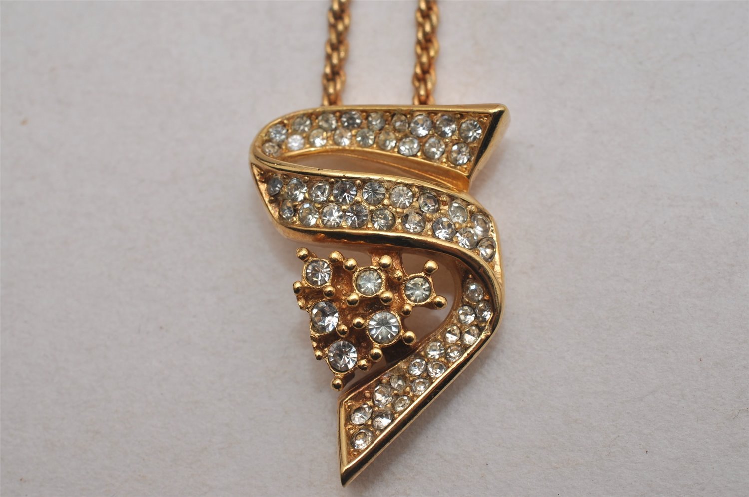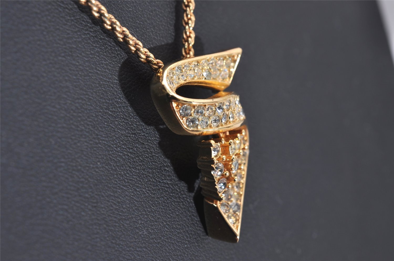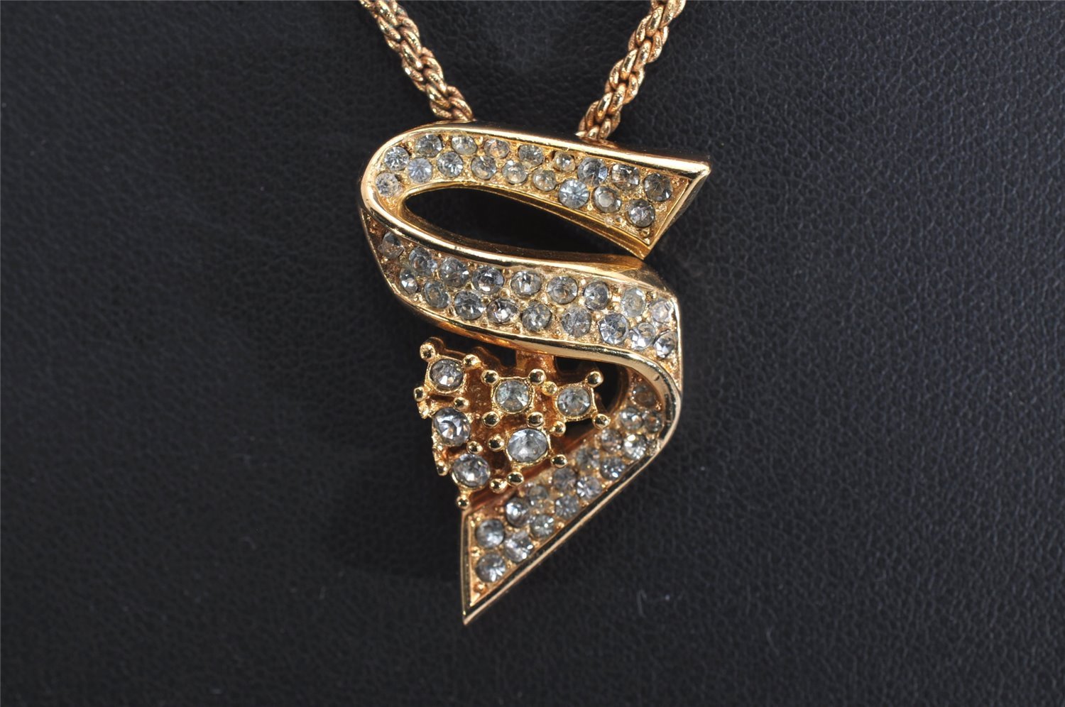 | Authentic Christian Dior Gold Tone Chain Rhinestone Pendant Necklace CD | |