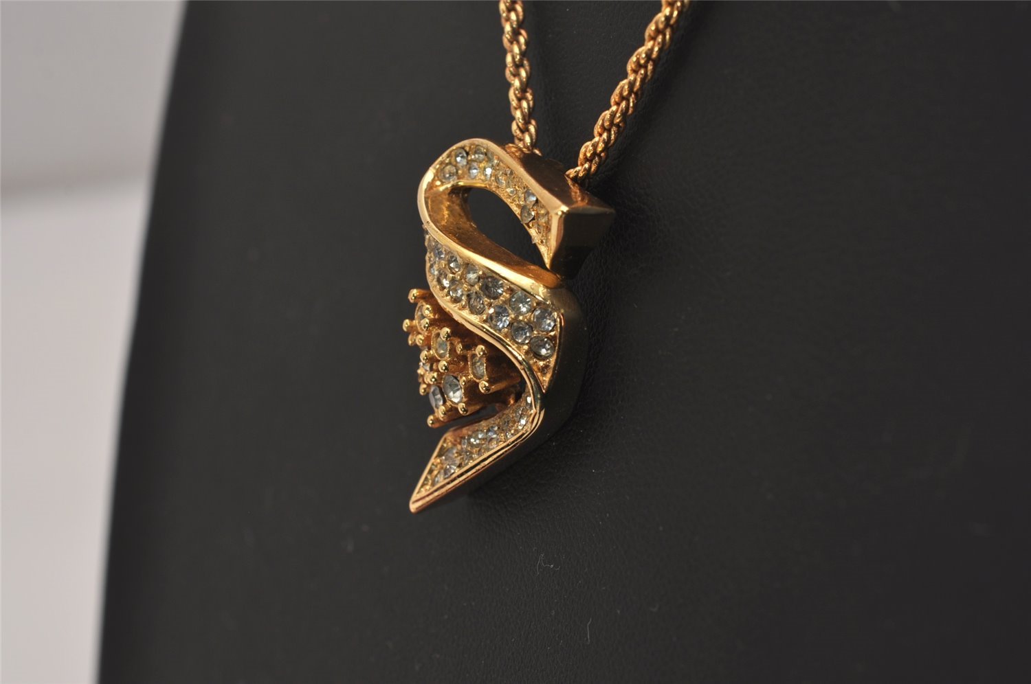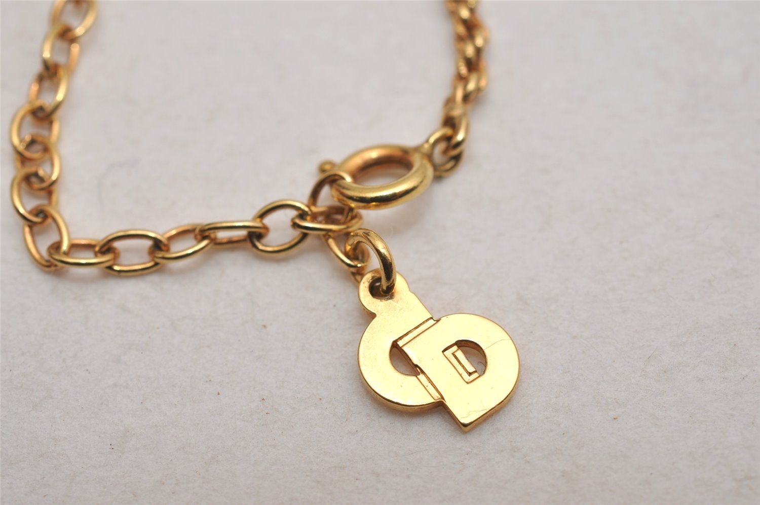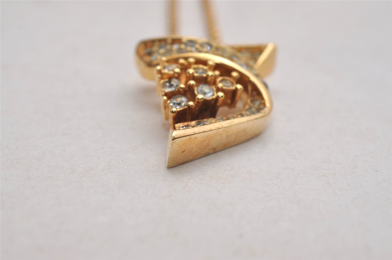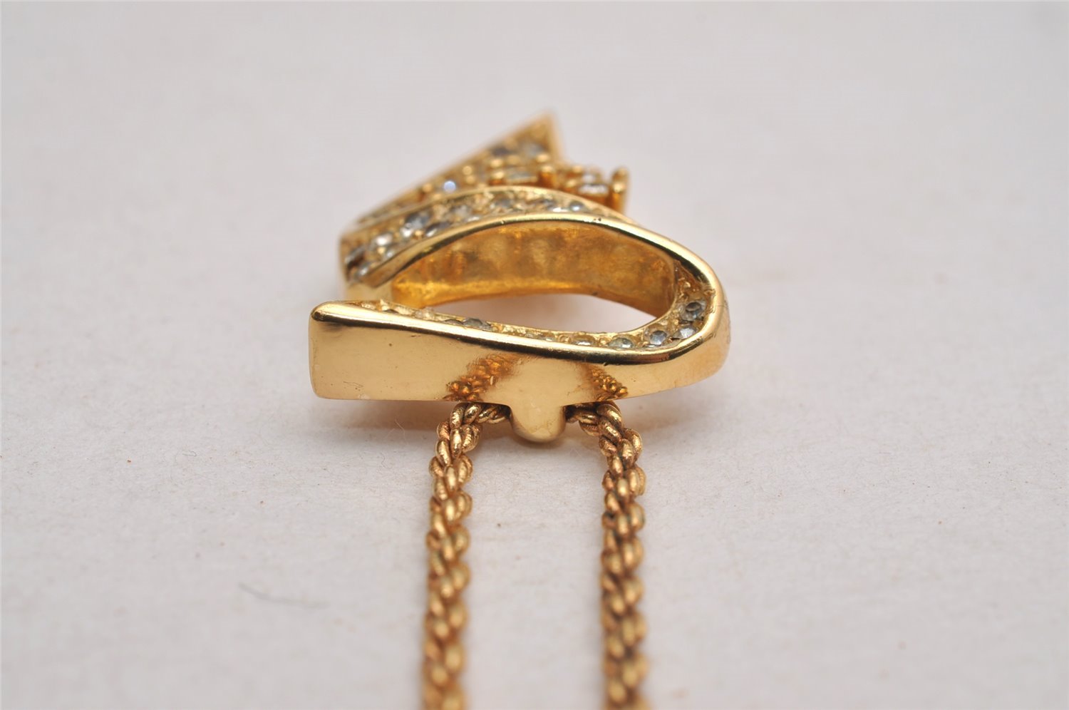 | Authentic Christian Dior Gold Tone Chain Rhinestone Pendant Necklace CD | |