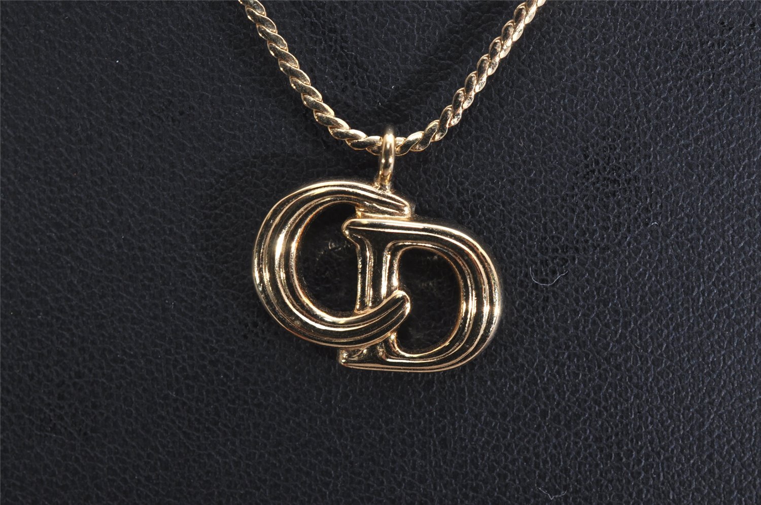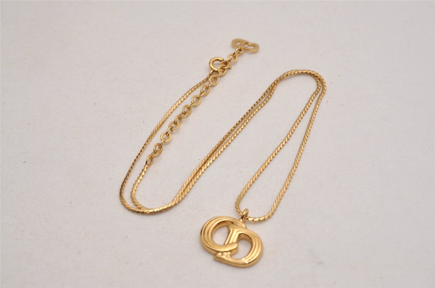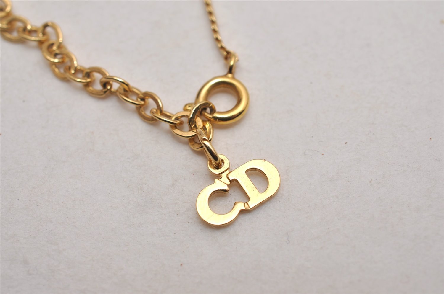 | Authentic Christian Dior Gold Tone Chain Pendant Necklace CD | |