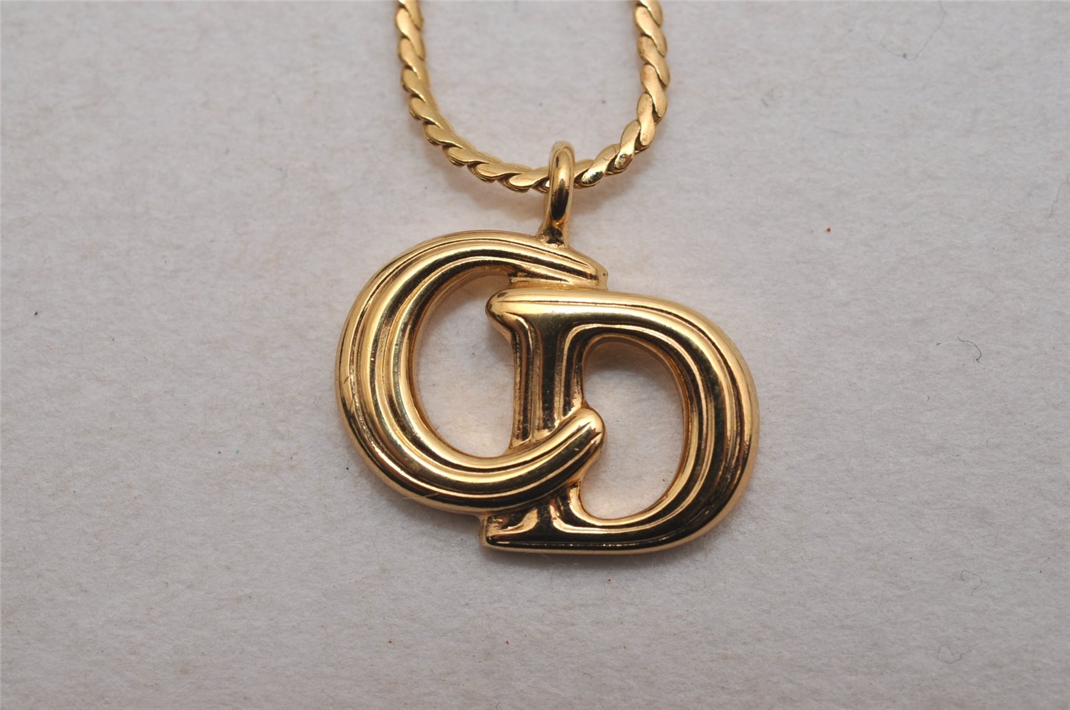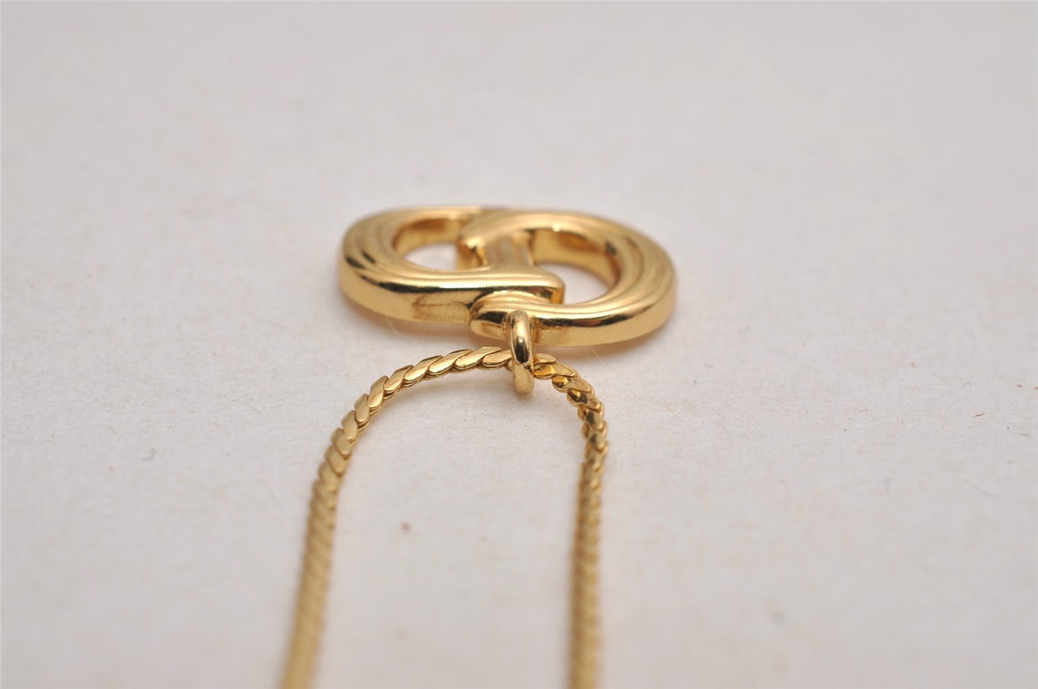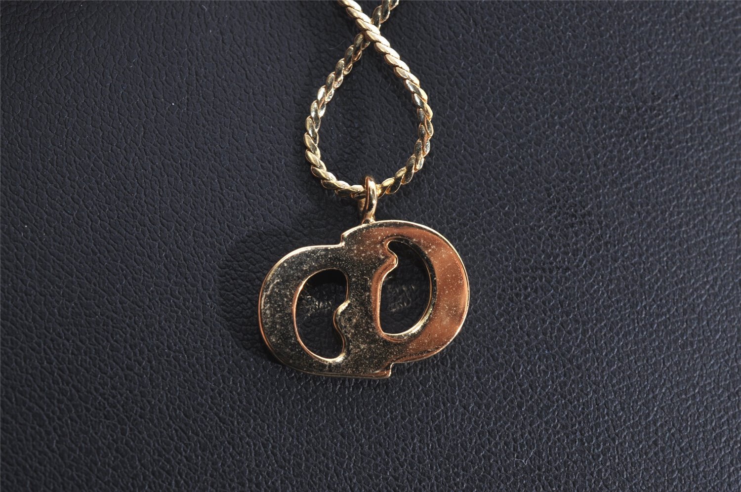 | Authentic Christian Dior Gold Tone Chain Pendant Necklace CD | |