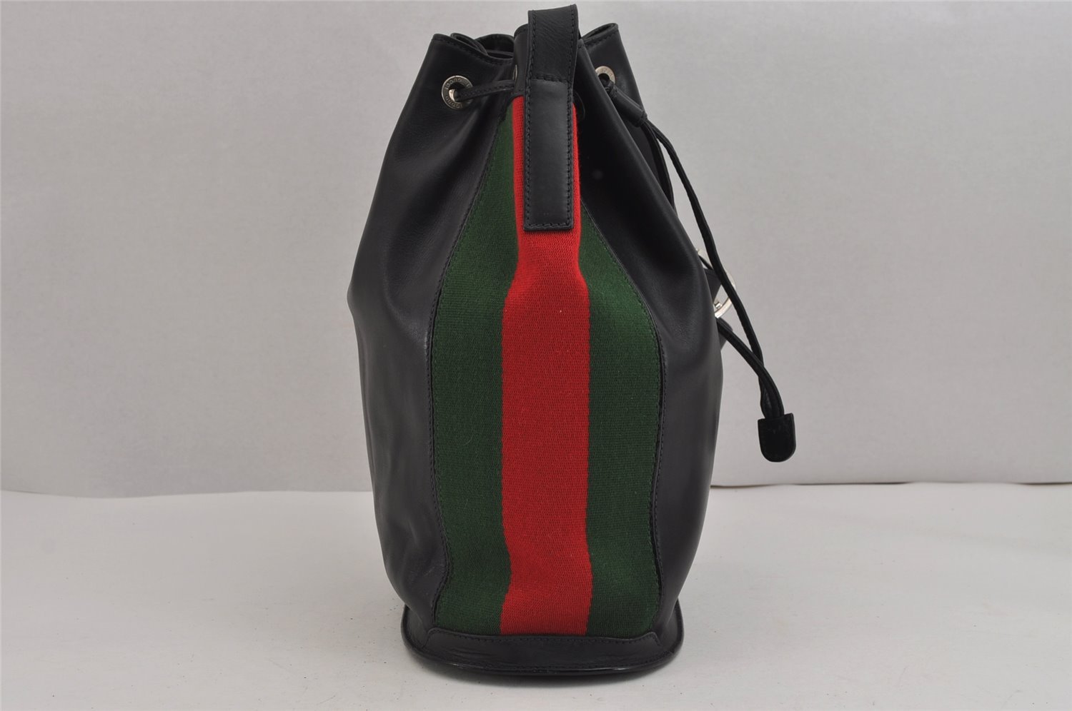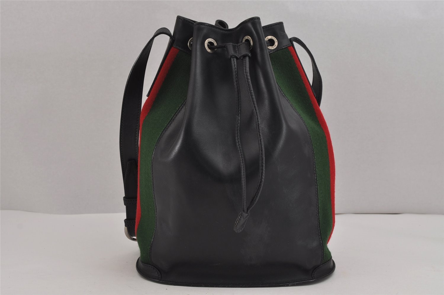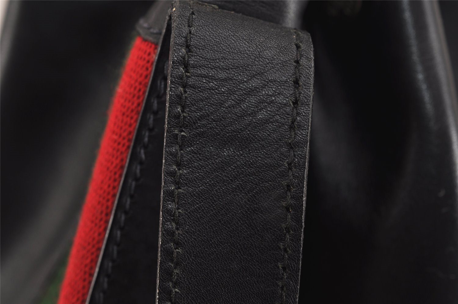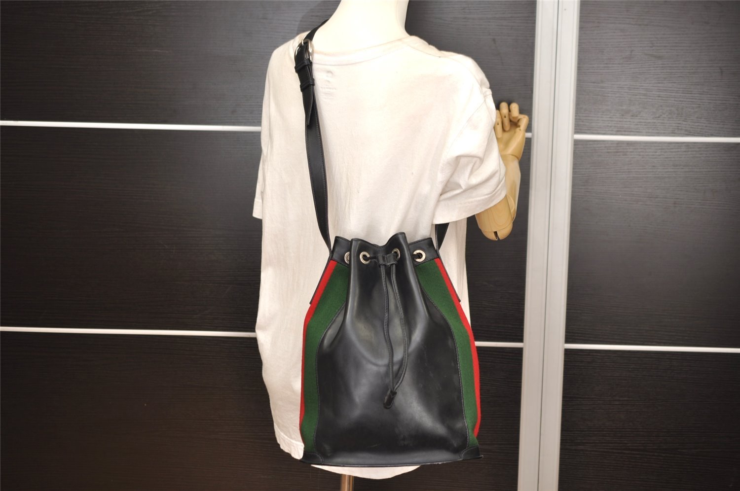 | Authentic GUCCI Web Sherry Line Shoulder Drawstring Bag Leather Black Junk | |