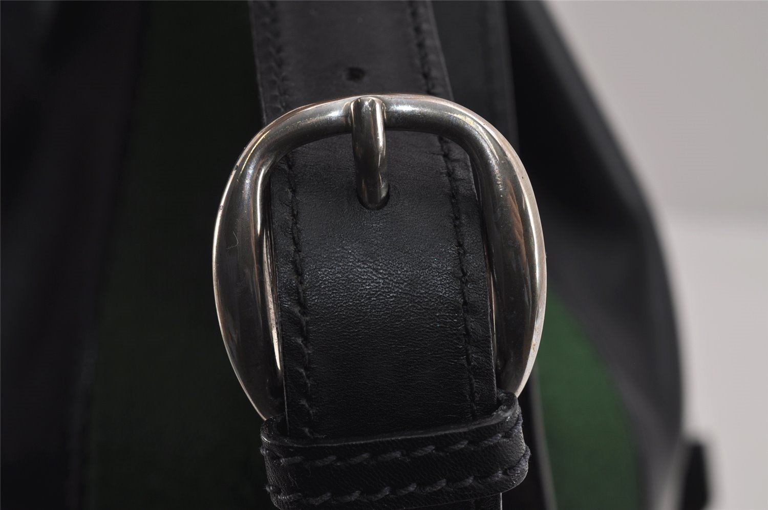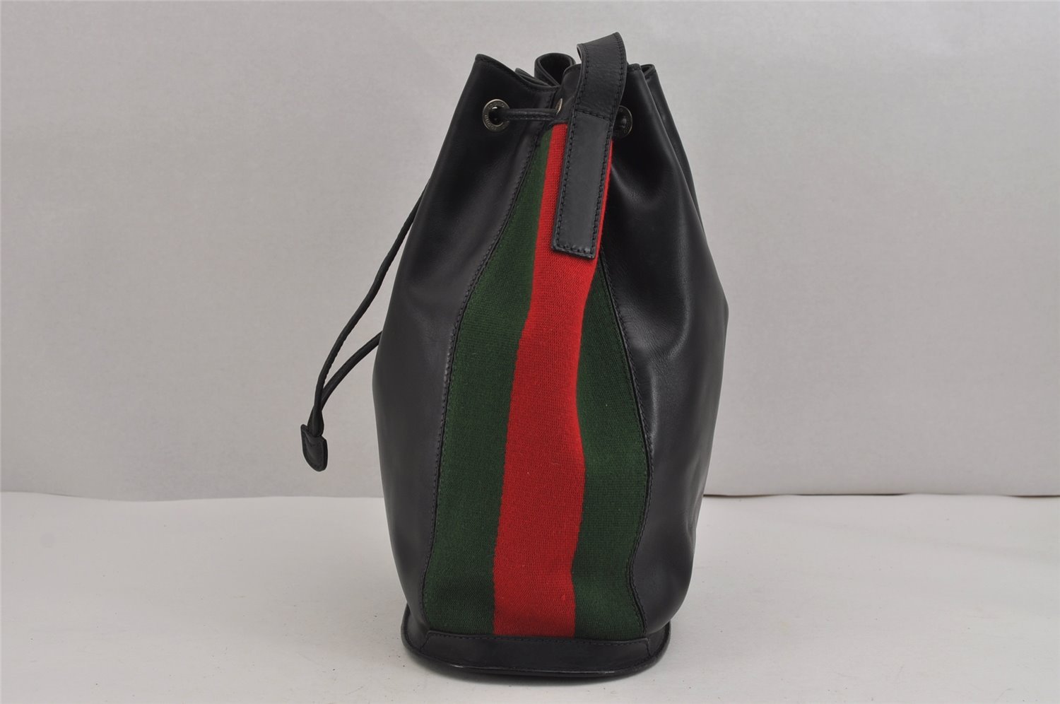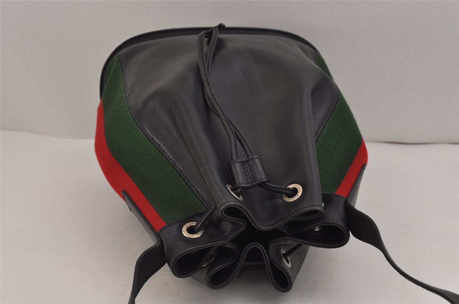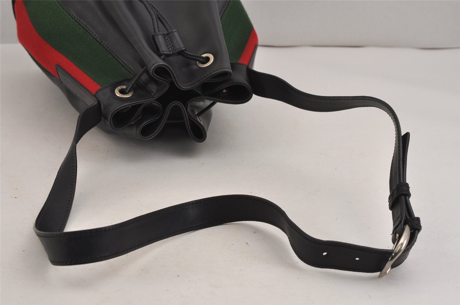 | Authentic GUCCI Web Sherry Line Shoulder Drawstring Bag Leather Black Junk | |