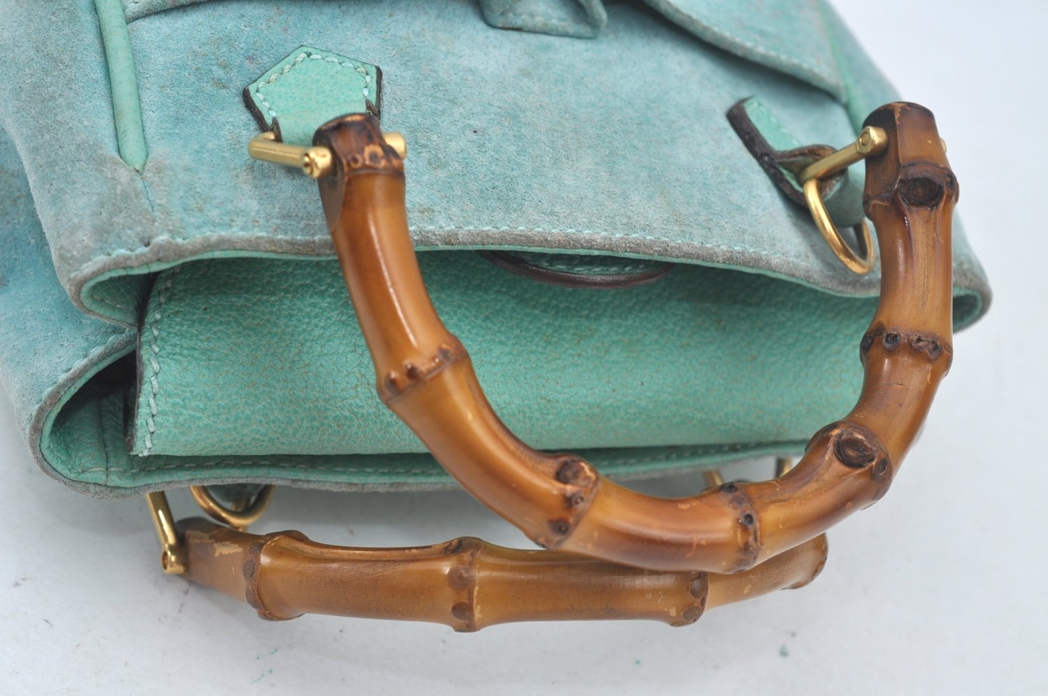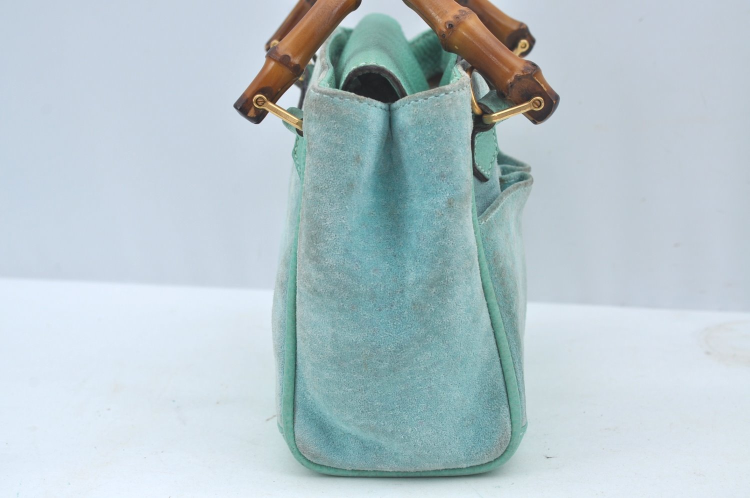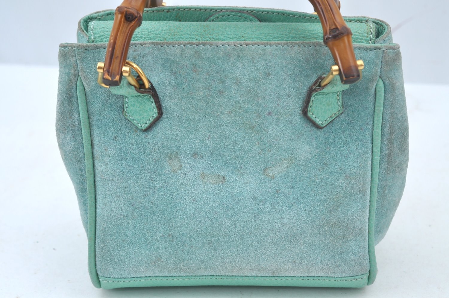 | Authentic GUCCI Bamboo 2Way Shoulder Hand Bag Suede Leather Light Blue | |