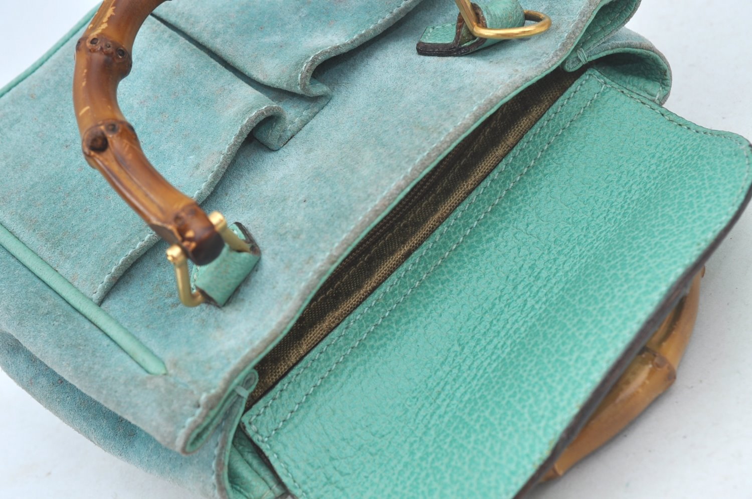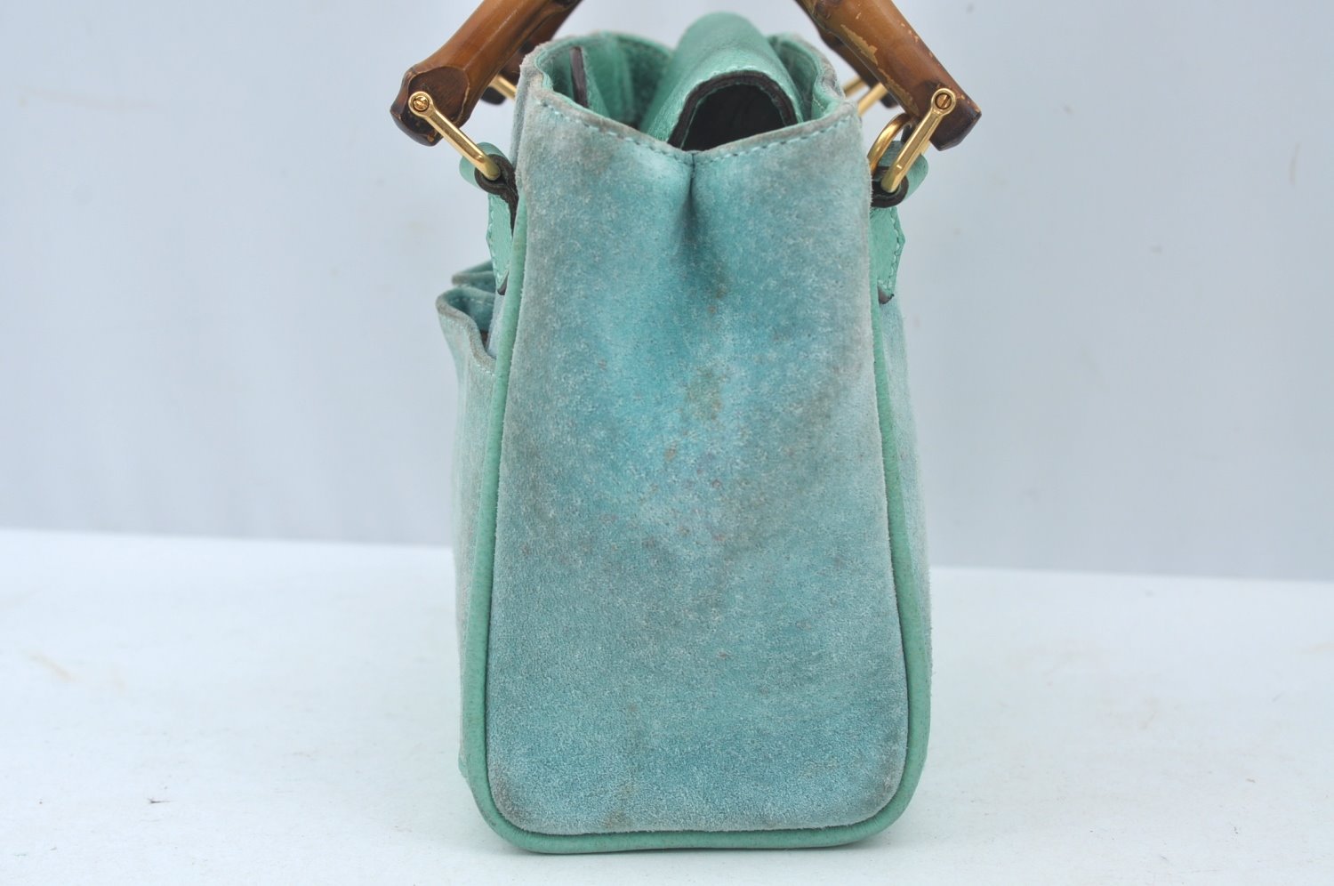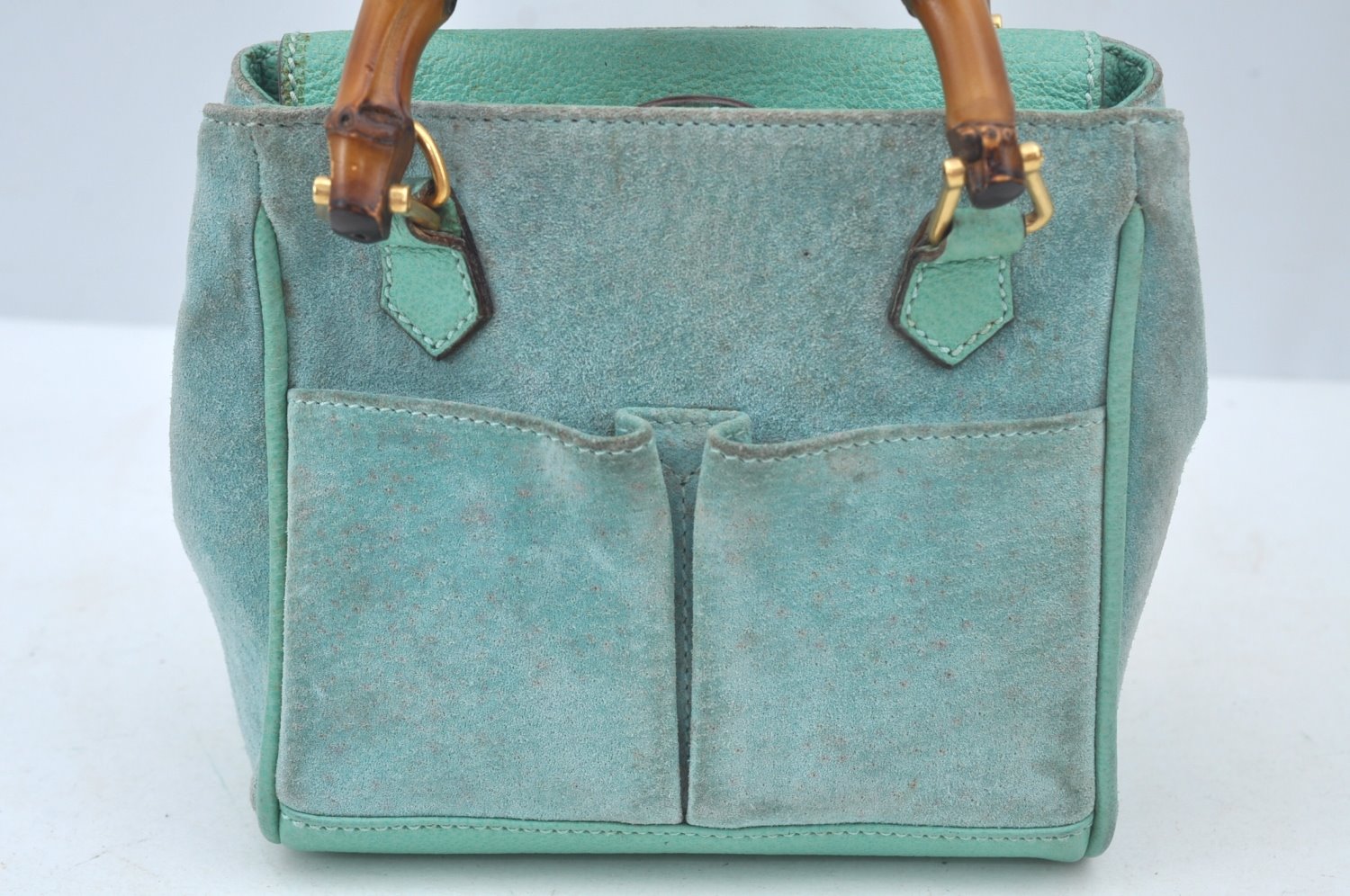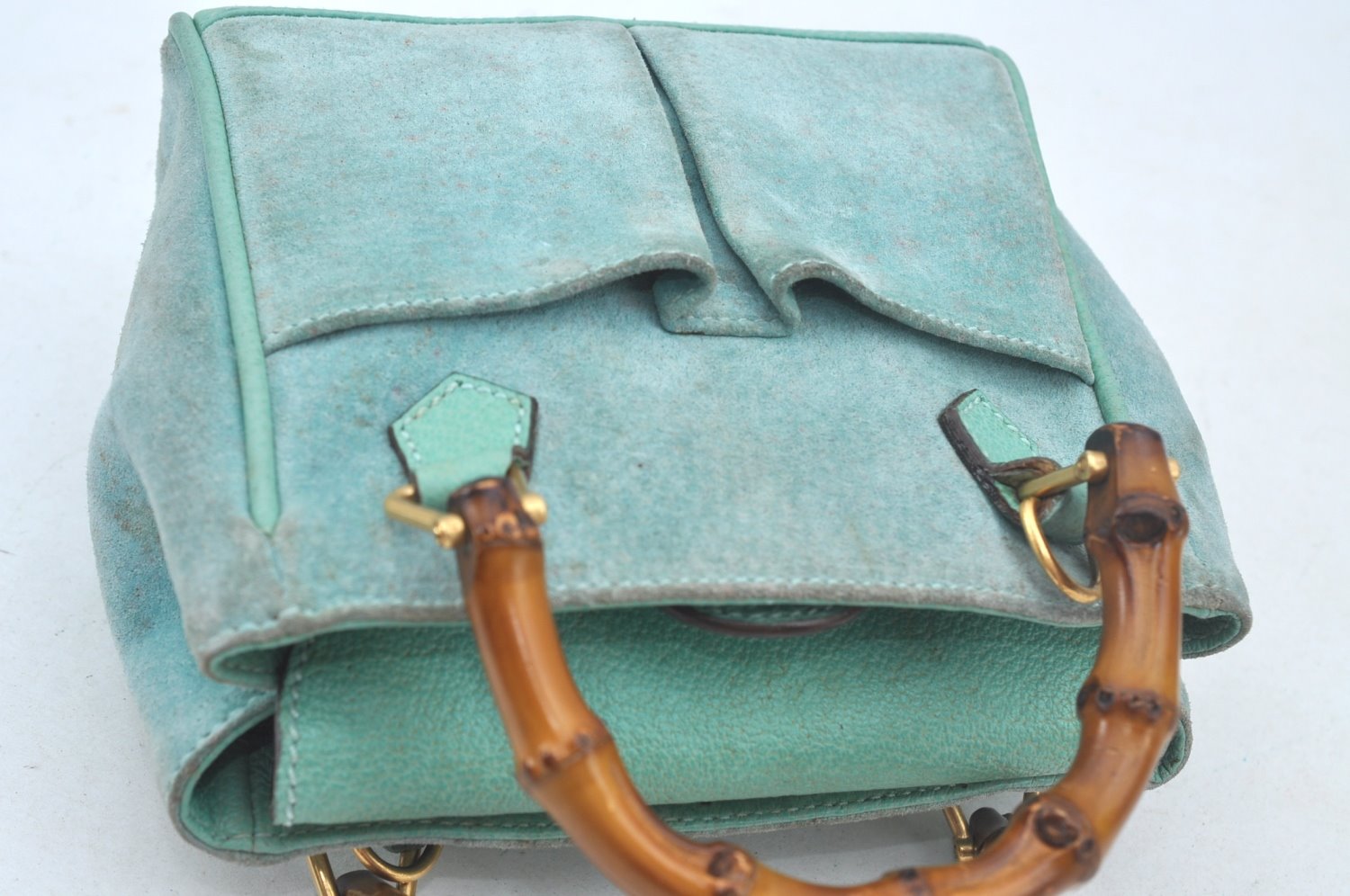 | Authentic GUCCI Bamboo 2Way Shoulder Hand Bag Suede Leather Light Blue | |