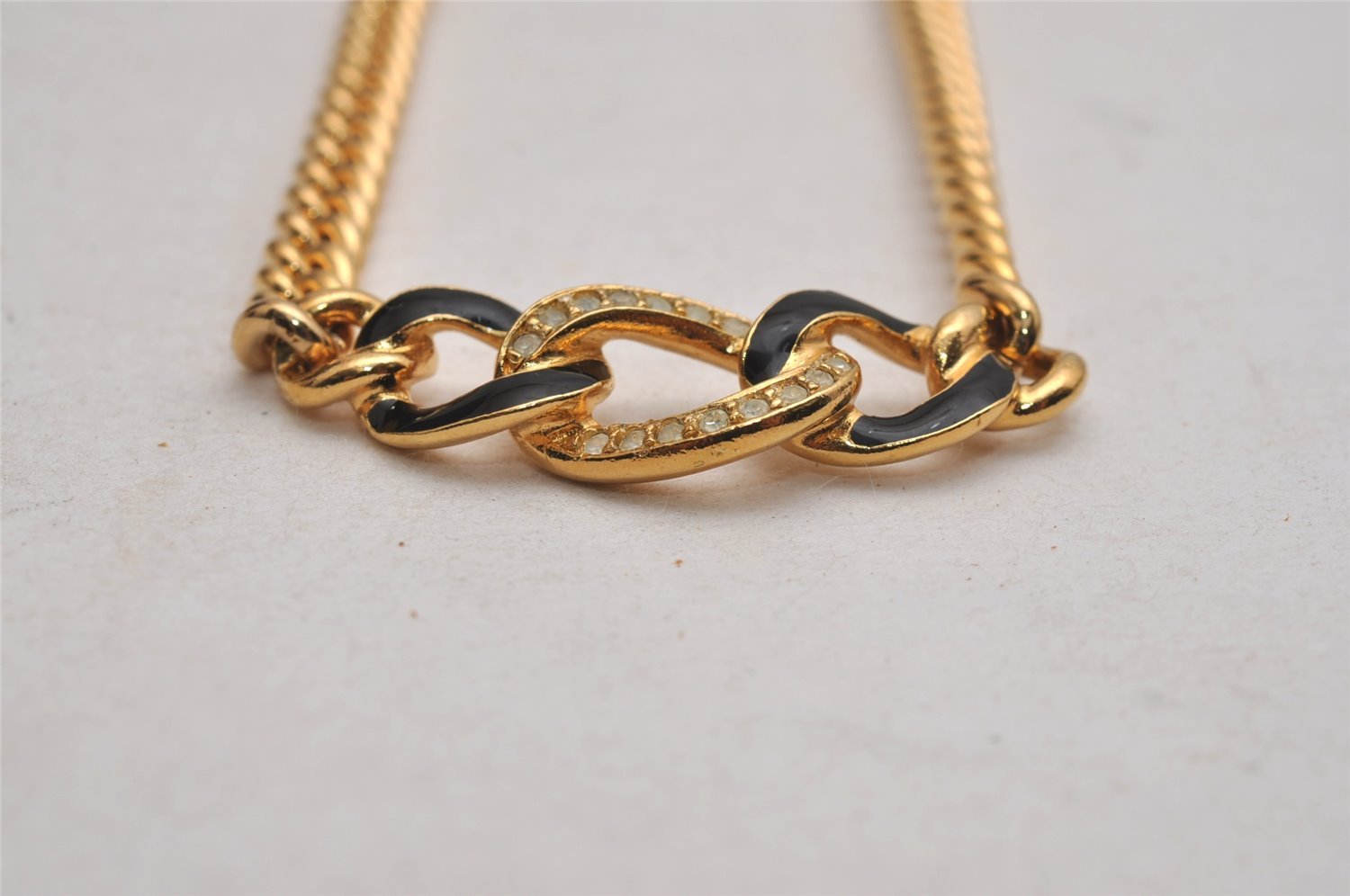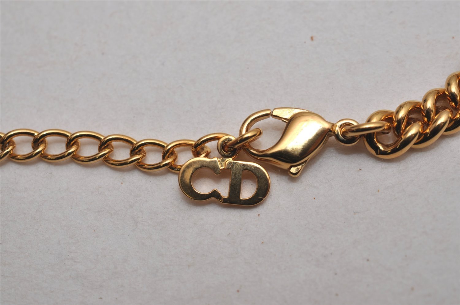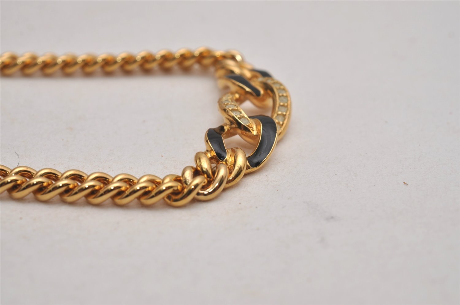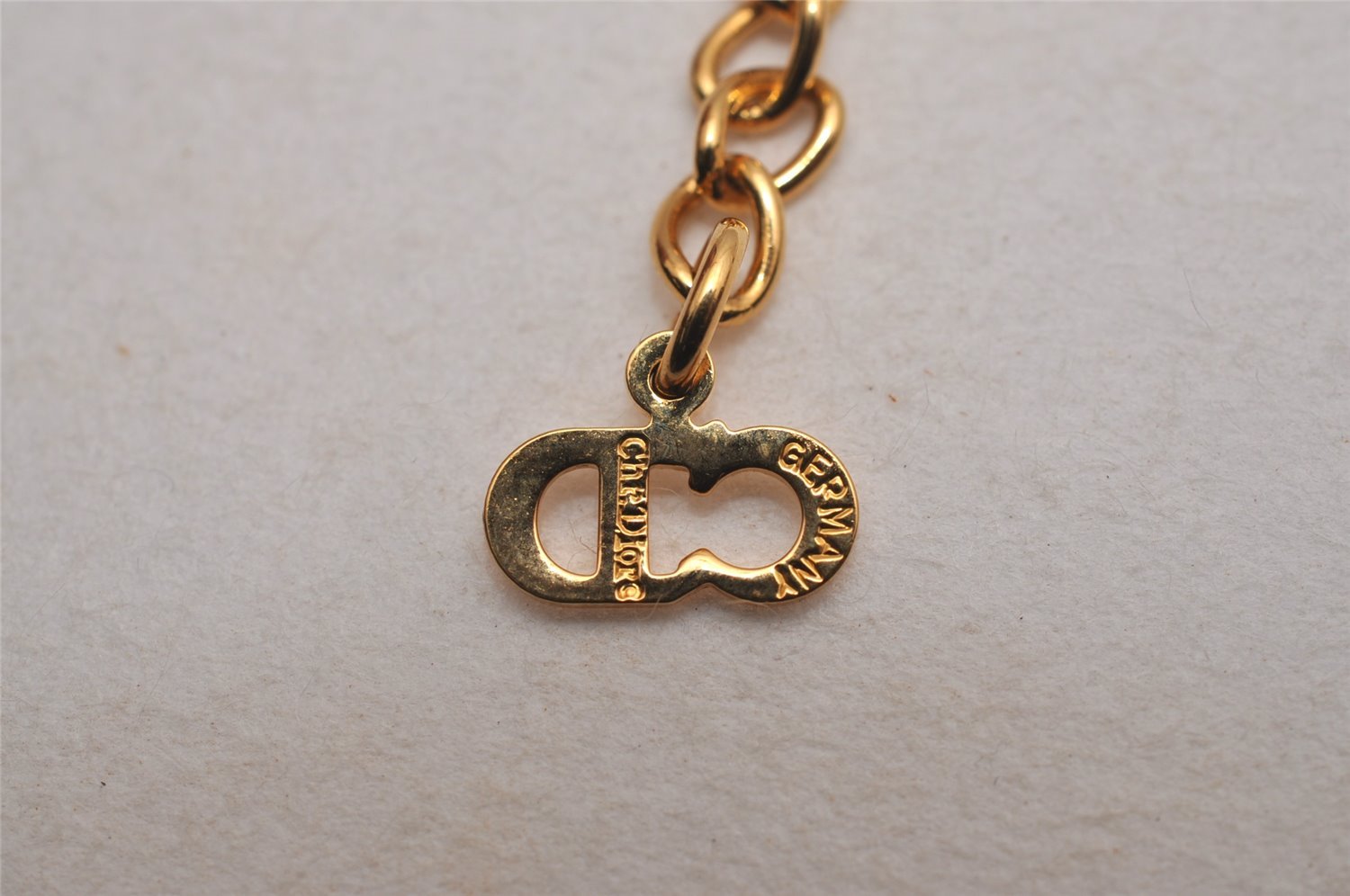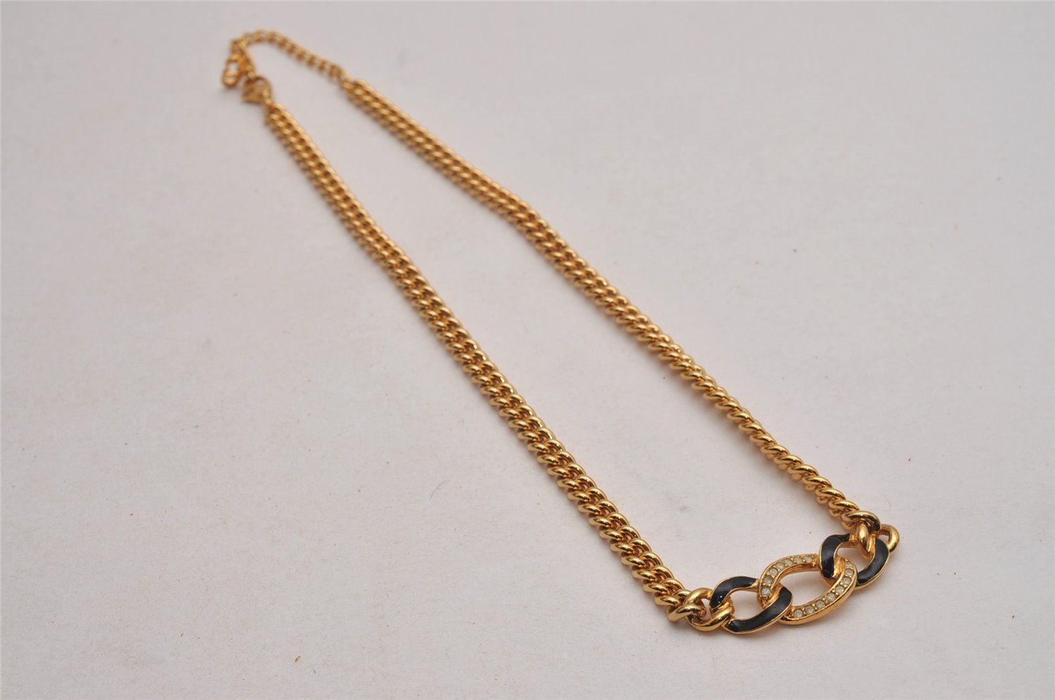 | Authentic Christian Dior Gold Tone Rhinestone Chain Pendant Necklace CD | |