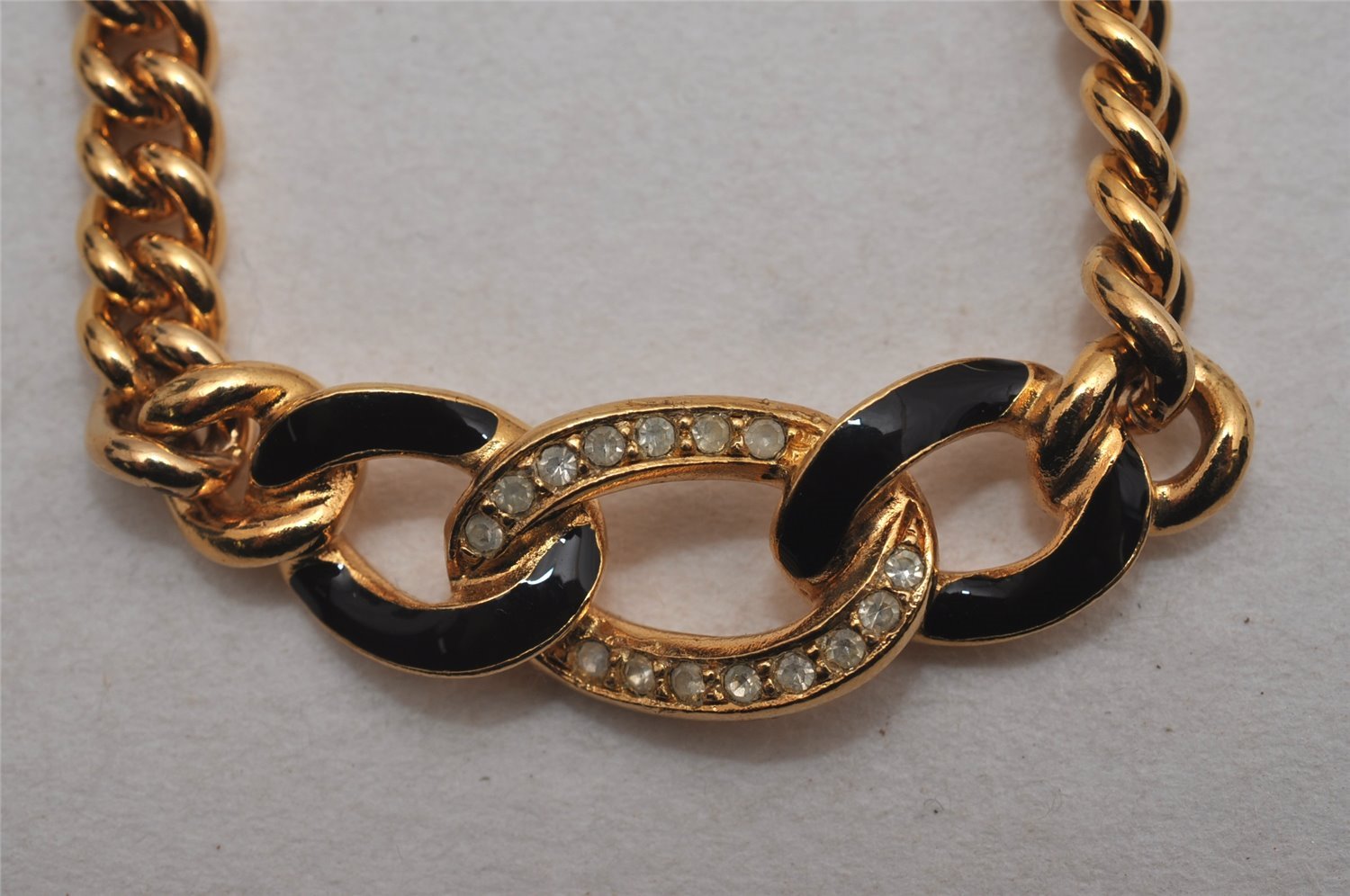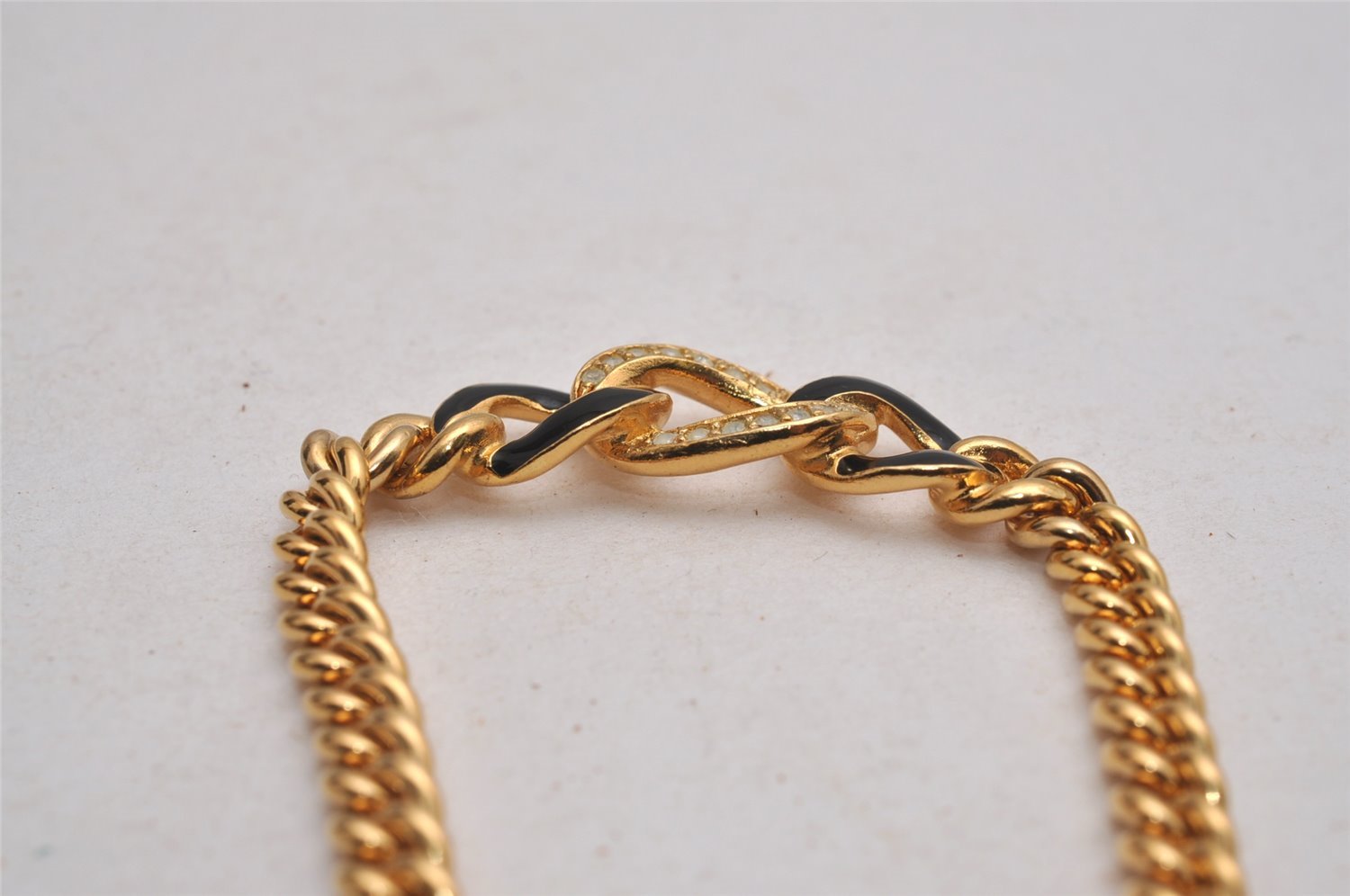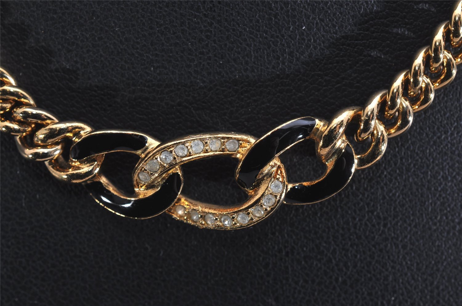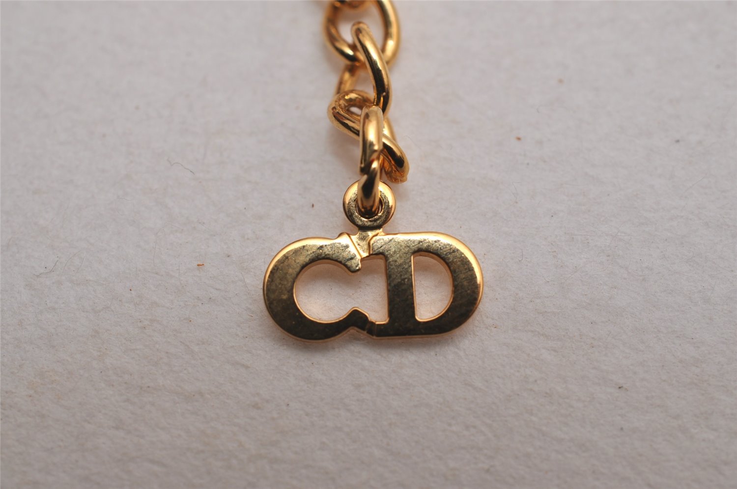 | Authentic Christian Dior Gold Tone Rhinestone Chain Pendant Necklace CD | |