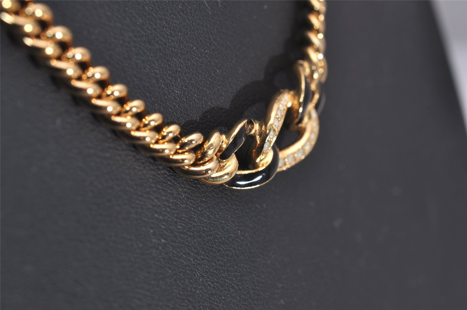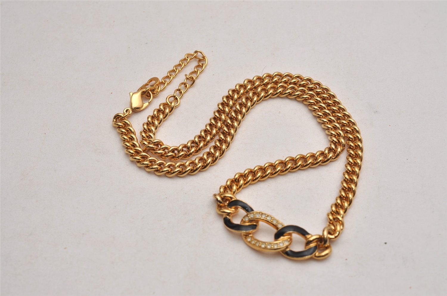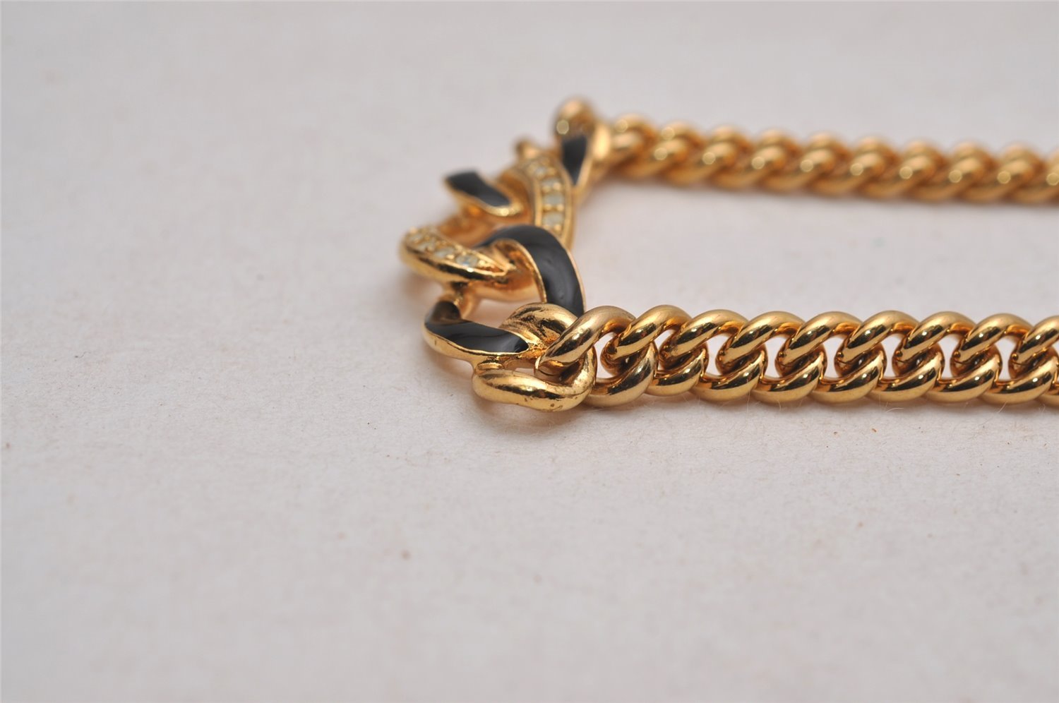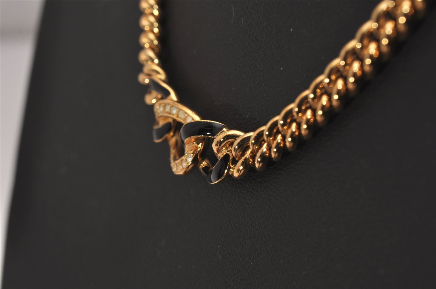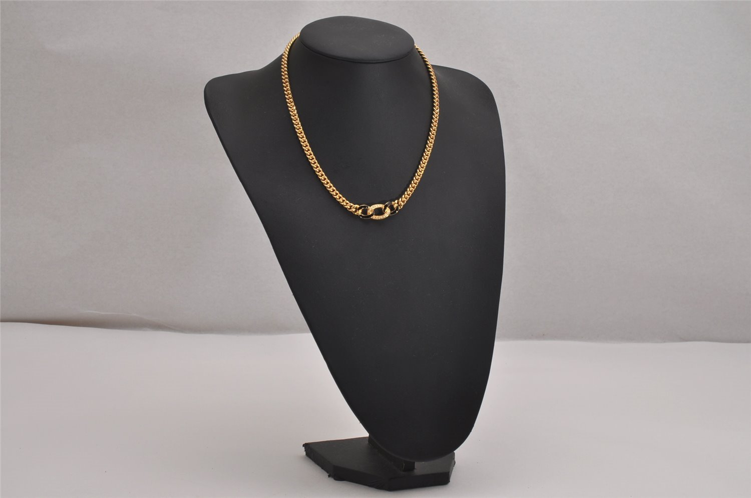 | Authentic Christian Dior Gold Tone Rhinestone Chain Pendant Necklace CD | |
