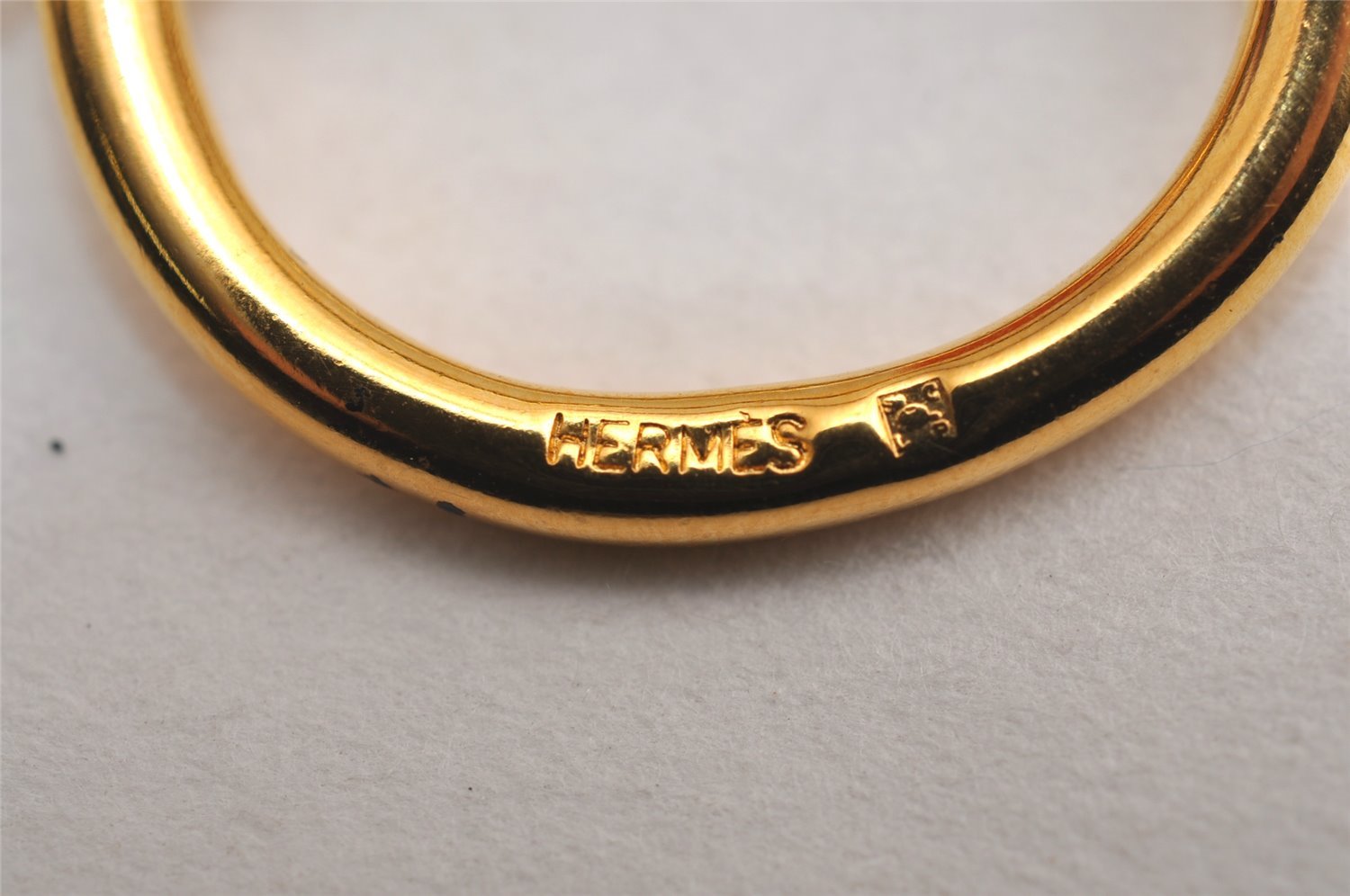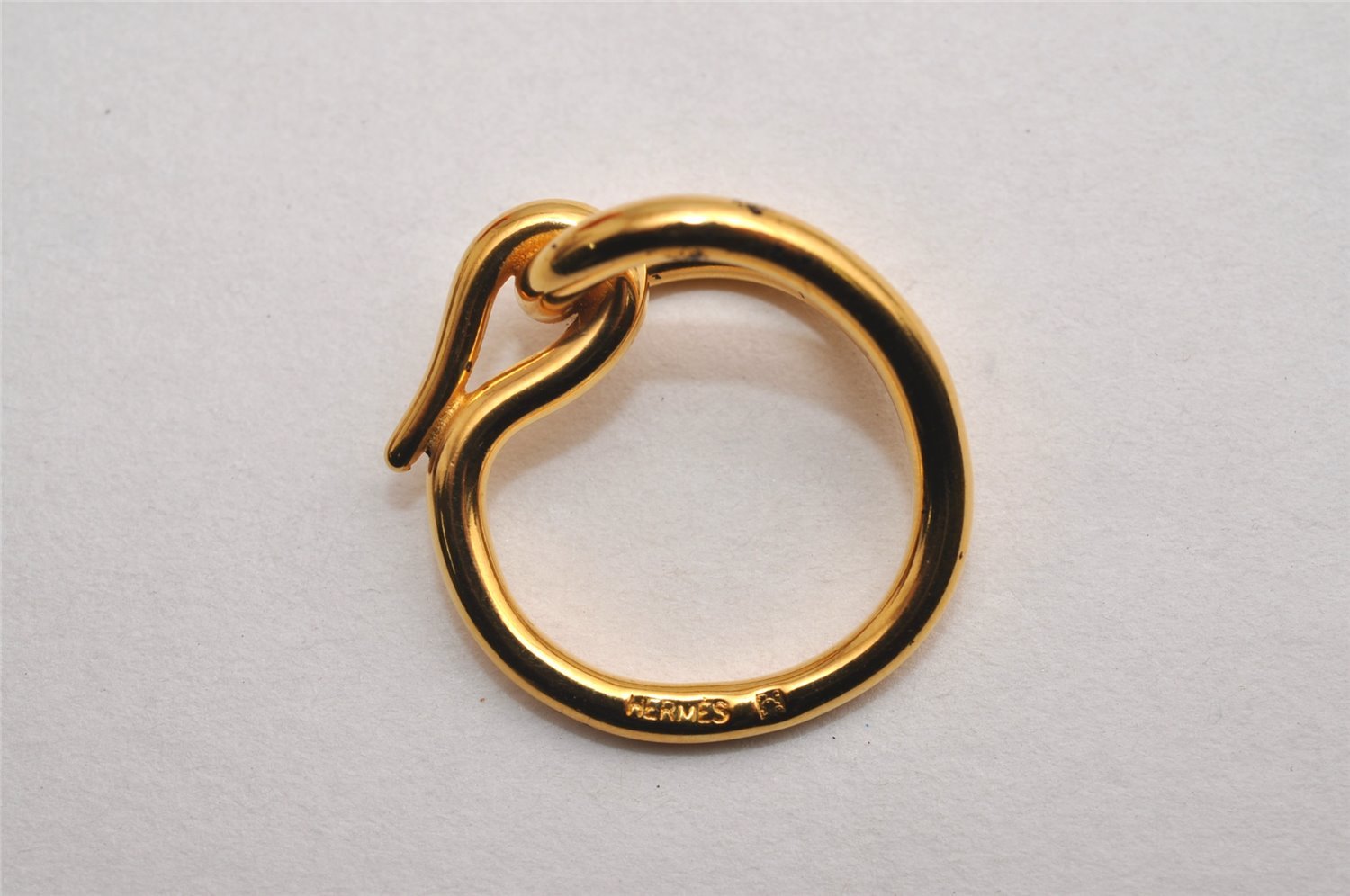 | Authentic HERMES Scarf Ring Jumbo Circle Design Gold Tone Box | |