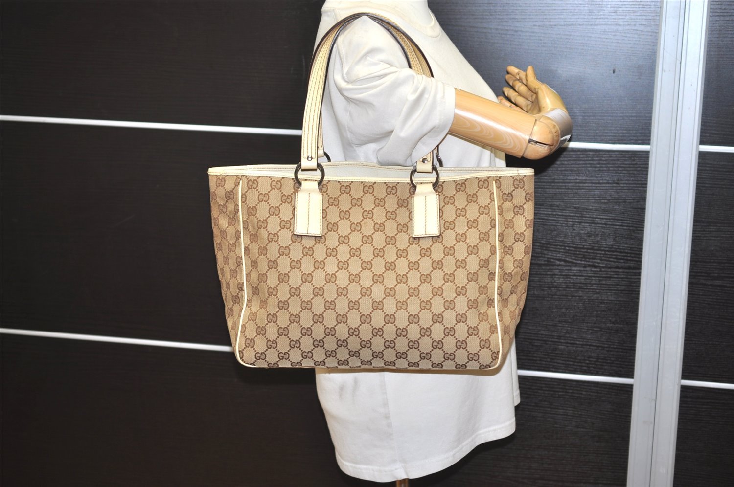 | Authentic GUCCI Vintage Shoulder Tote Bag GG Canvas Leather 113017 Brown | |