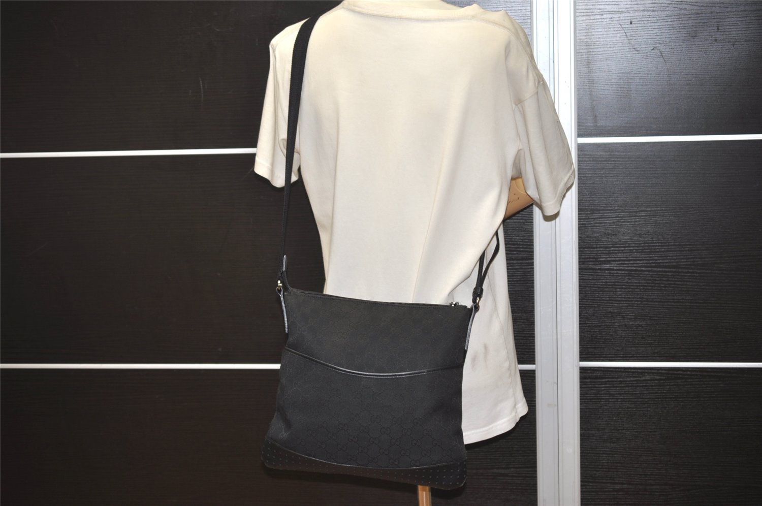 | Authentic GUCCI Shoulder Cross Body Bag GG Canvas Leather 145857 Black | |
