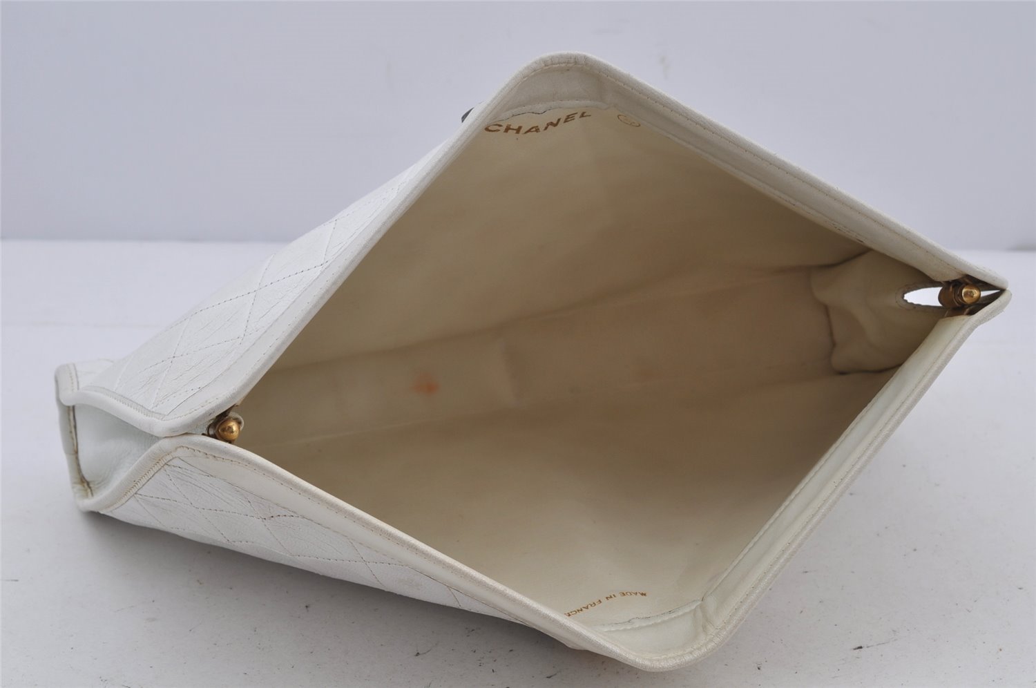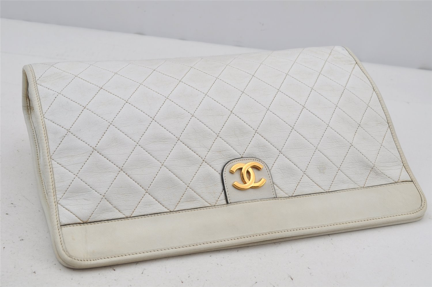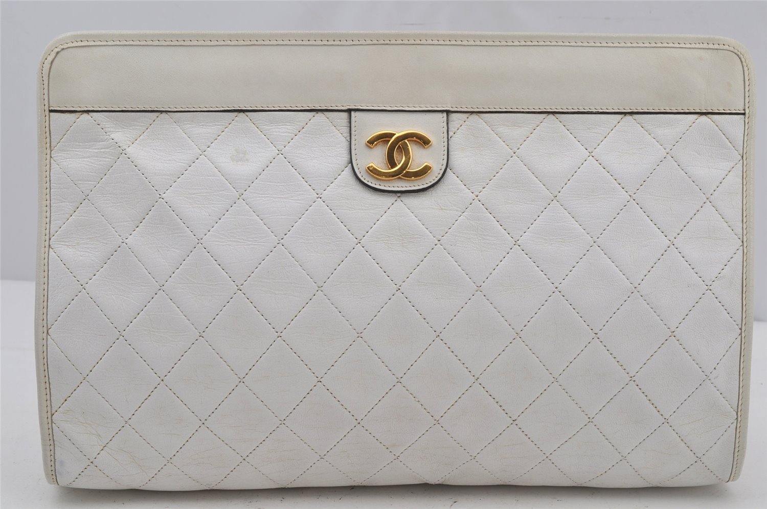 | Authentic CHANEL Calf Skin Matelasse CoCo Mark Clutch Hand Bag Purse White | |