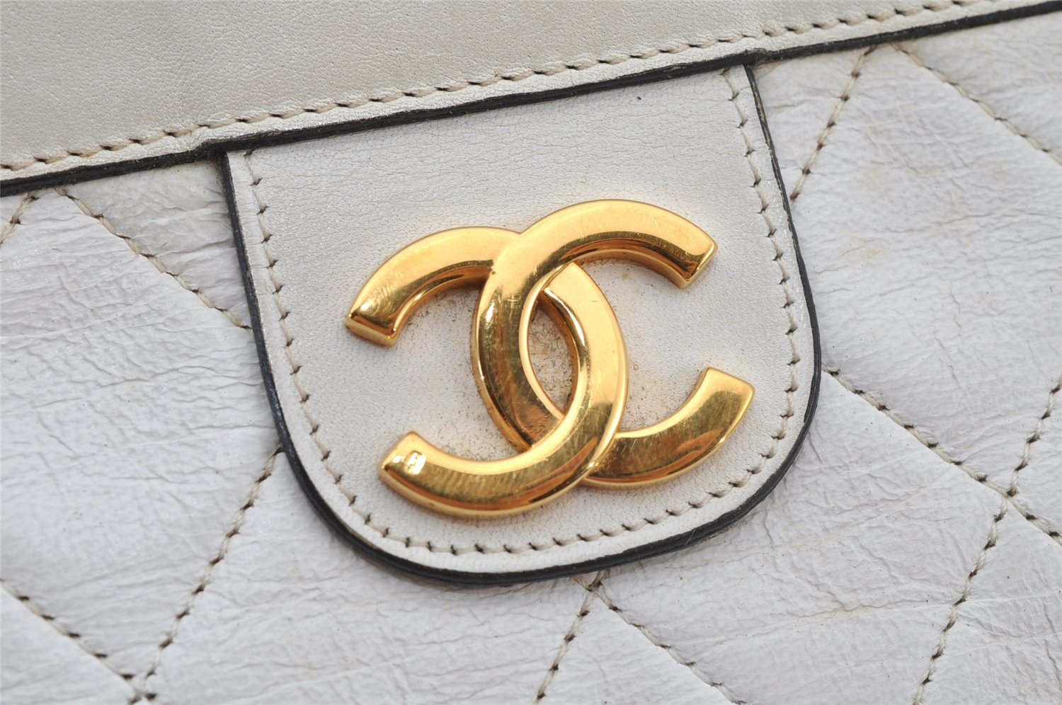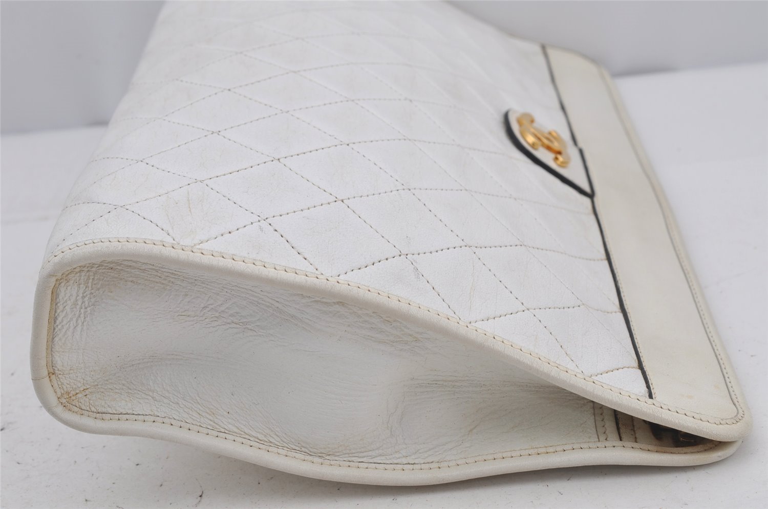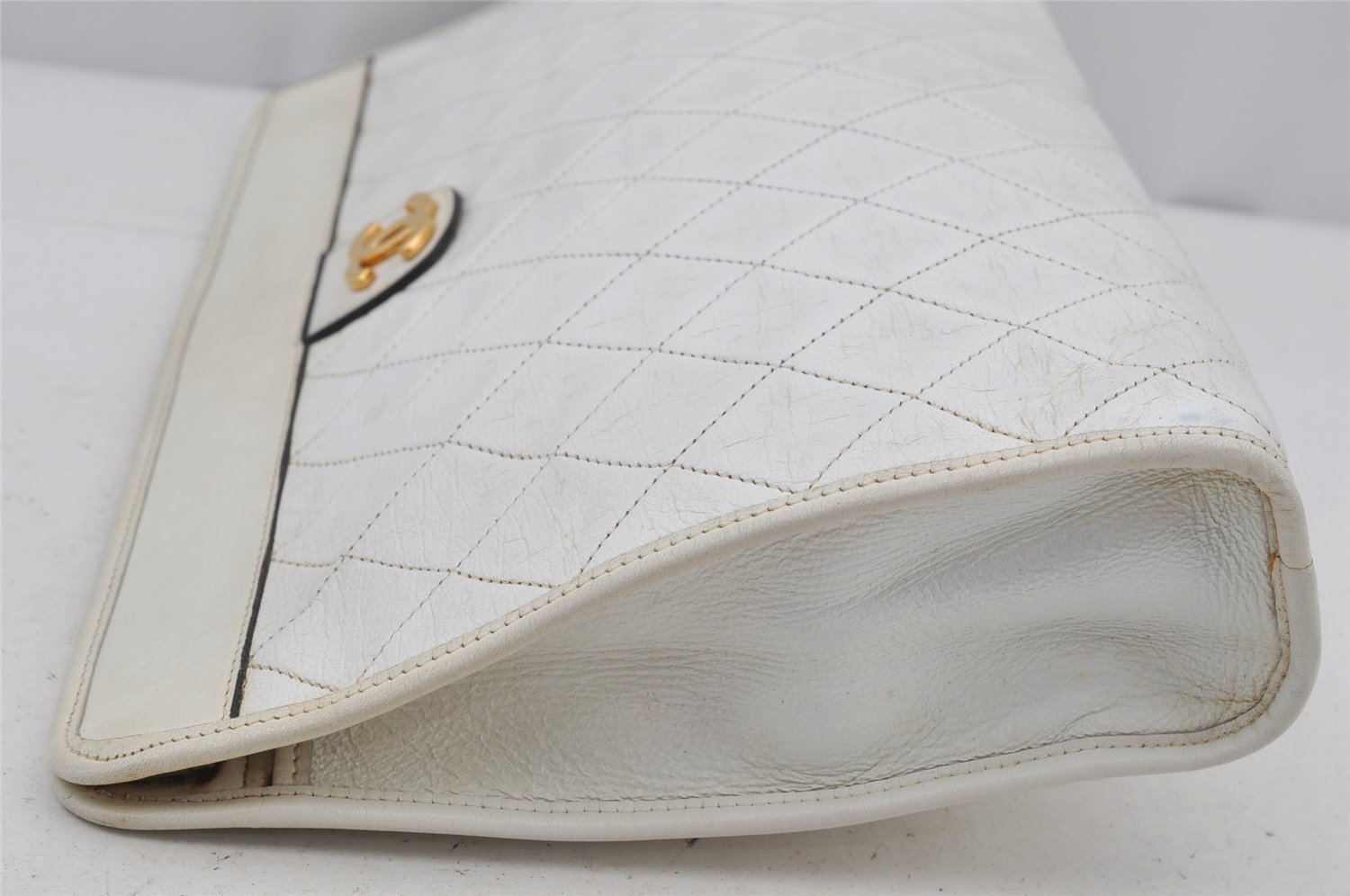 | Authentic CHANEL Calf Skin Matelasse CoCo Mark Clutch Hand Bag Purse White | |