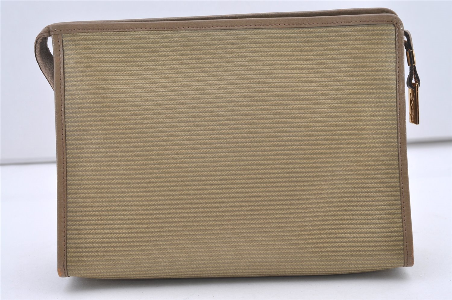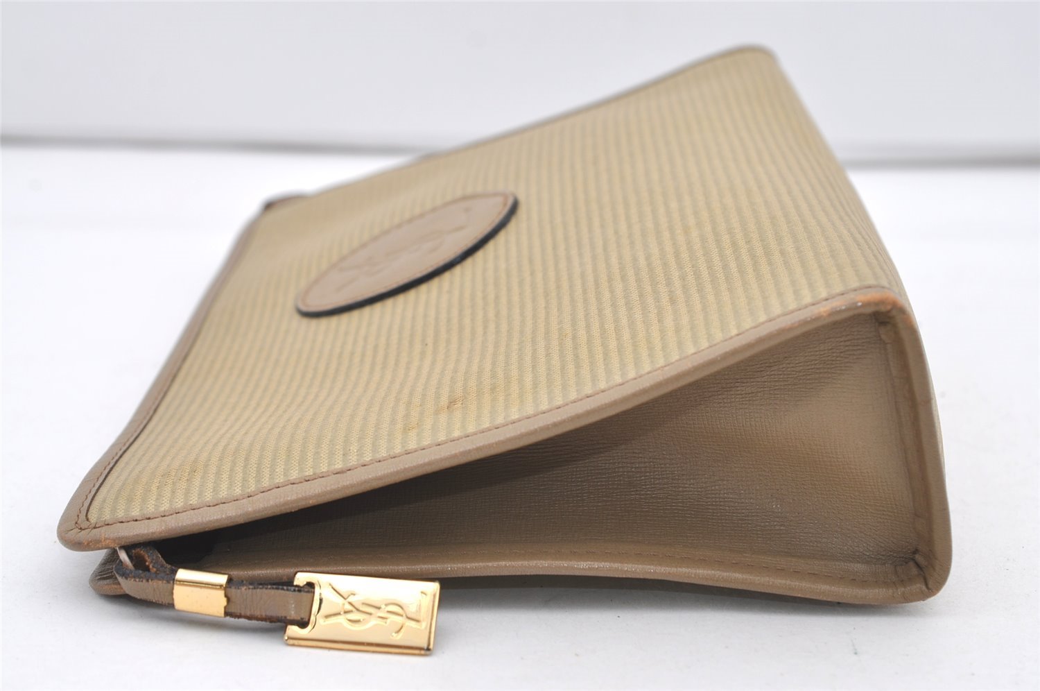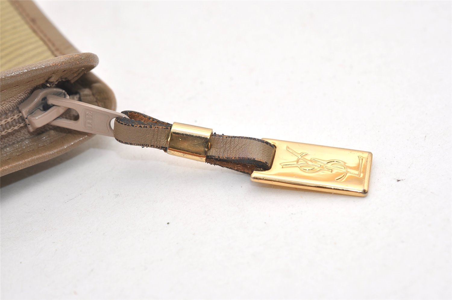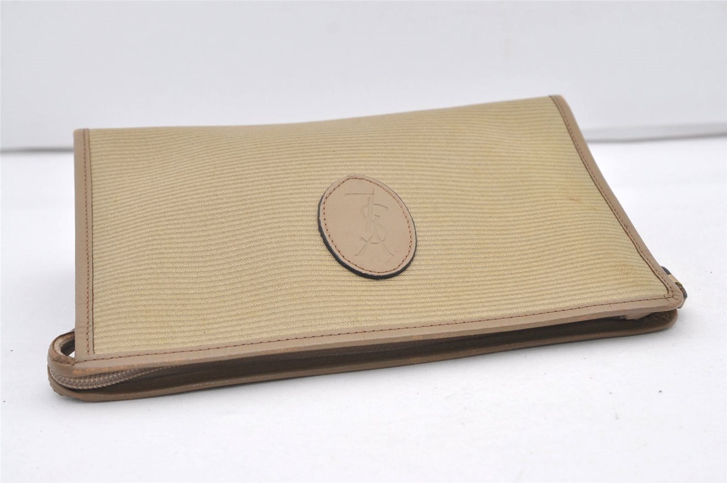 | Authentic YVES SAINT LAURENT Clutch Hand Bag Purse PVC Leather Beige | |