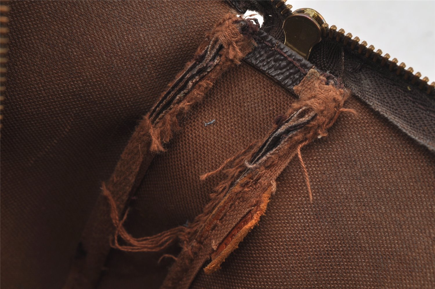 | Others | One part of the material near the zipper is torn and peeled off.Difficult to see the Serial number because of lacking.One part of the fabric on the inner side is torn and frayed.Shoulder strap is self repaired with glue.Inside of the bag has a little pen trace. |