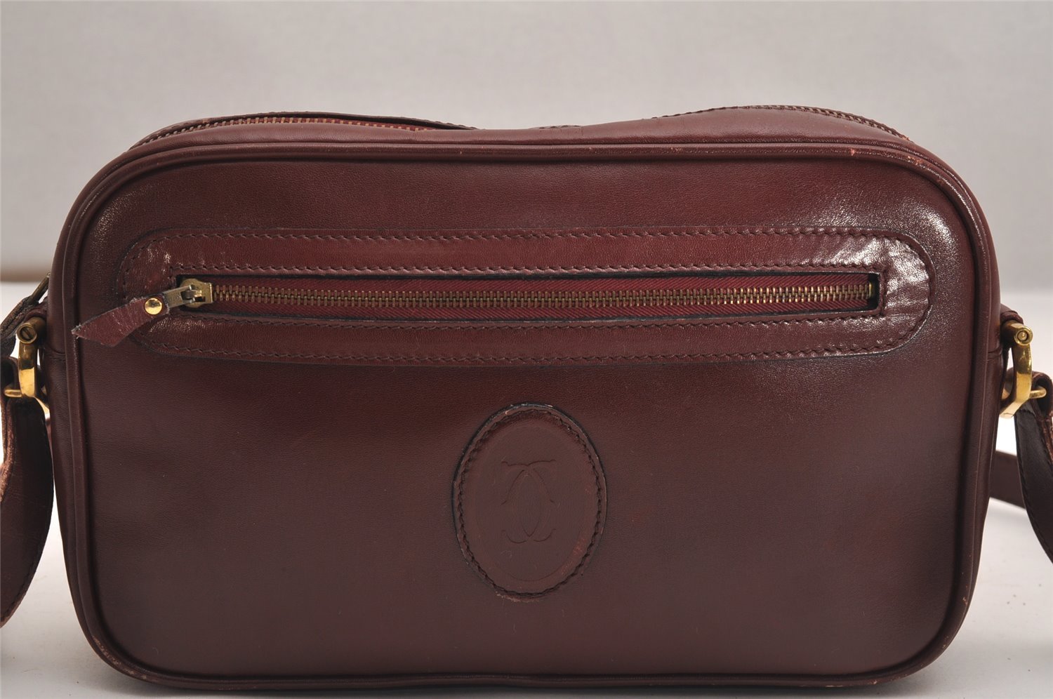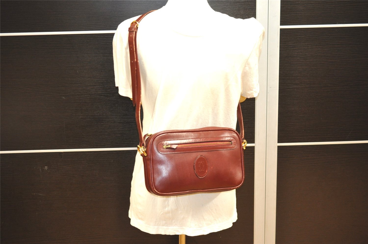 | Authentic Cartier Must de Cartier Leather Shoulder Cross Bag Bordeaux Red | |