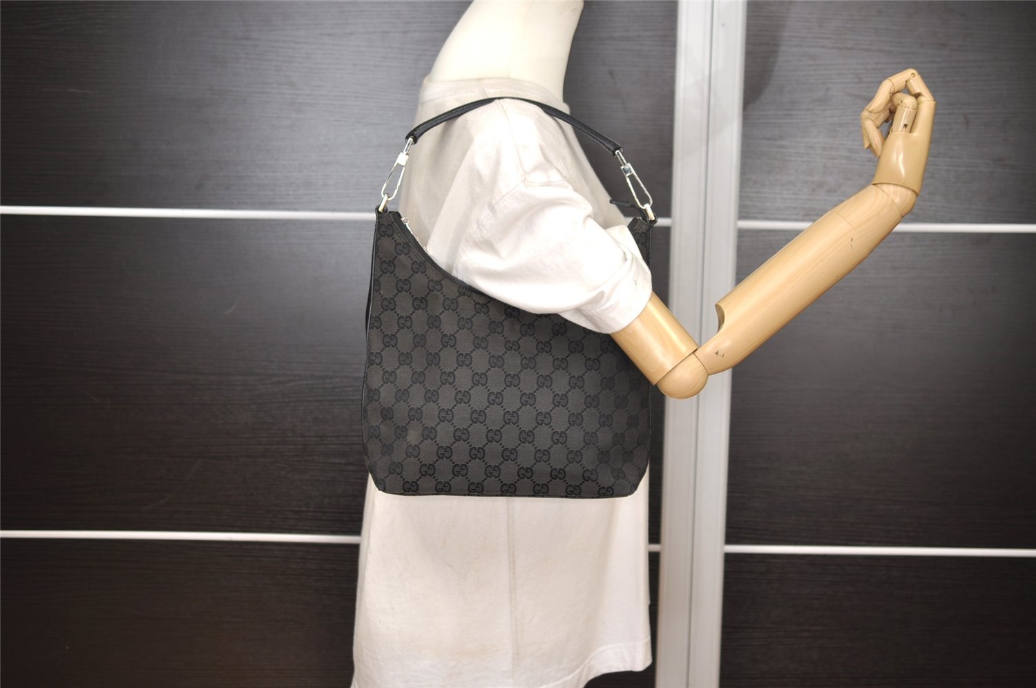 | Authentic GUCCI Shoulder Hand Bag Purse GG Canvas Leather 0000602 Black | |