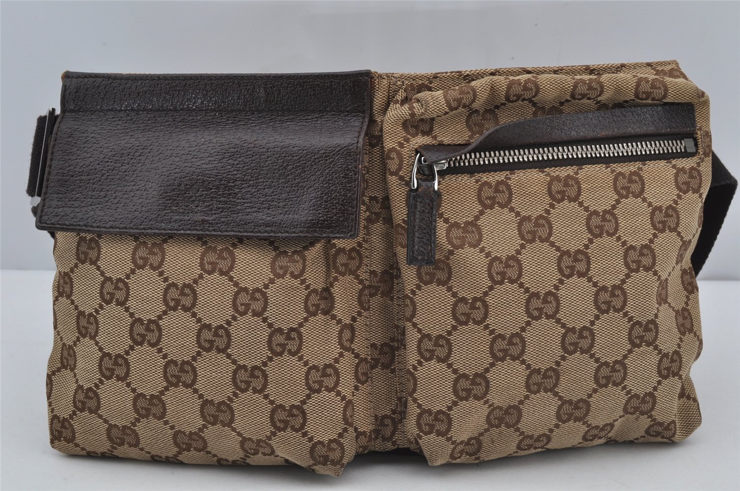 | Authentic GUCCI Waist Body Bag Purse GG Canvas Leather 28566 Brown | |