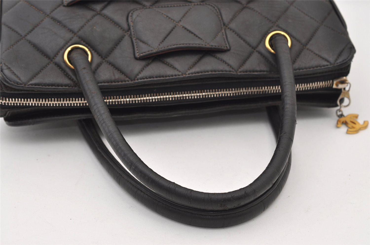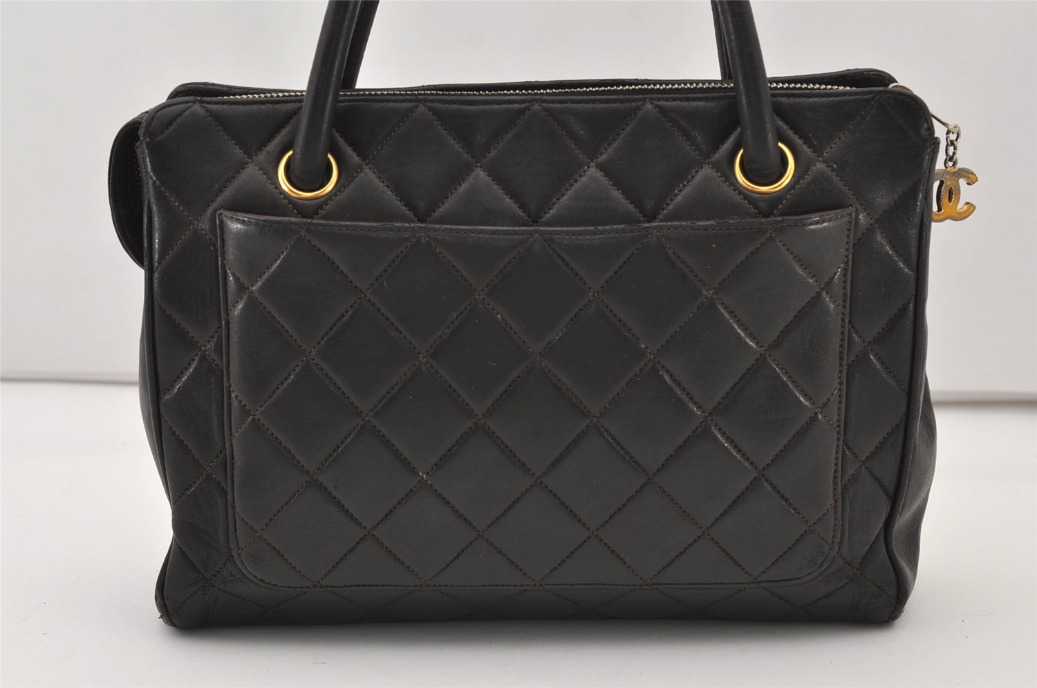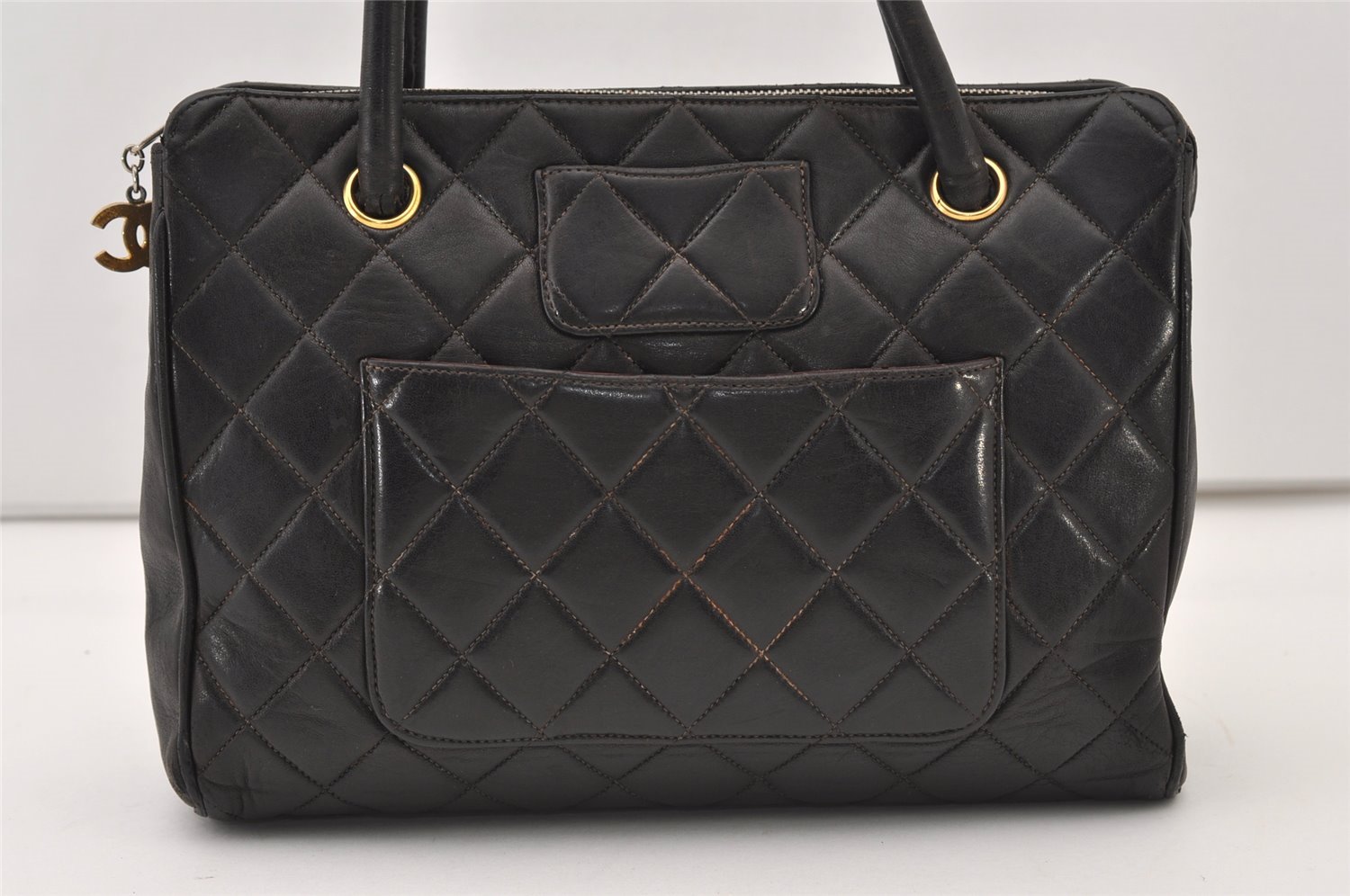 | Authentic CHANEL Vintage Calf Skin Matelasse Shoulder Tote Bag Brown CC | |