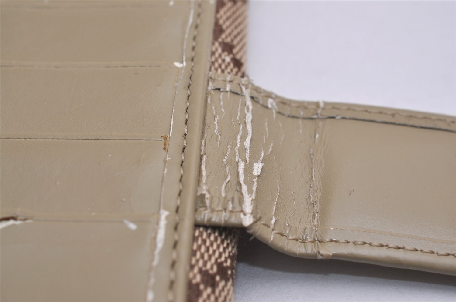 | Others | One of the card pockets is peeling and crumbling.The leather part of the wallet is peeling off and crumbling. |