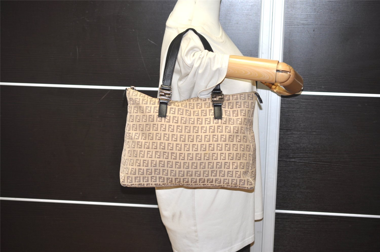 | Authentic FENDI Vintage Zucchino Shoulder Tote Bag Canvas Leather Beige | |