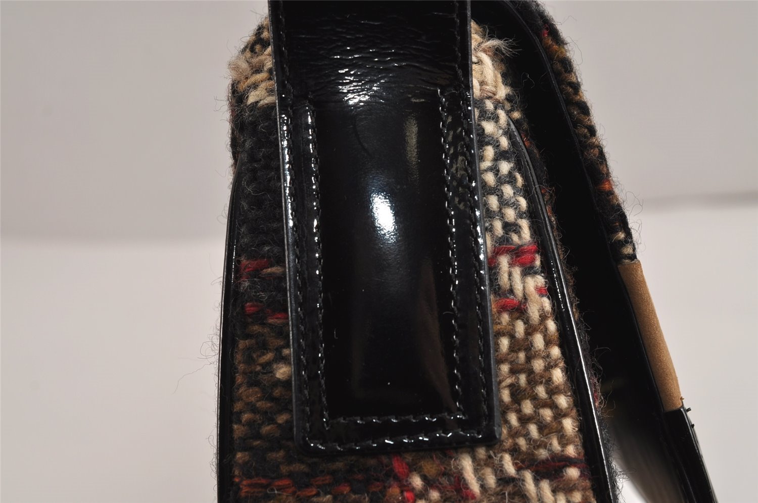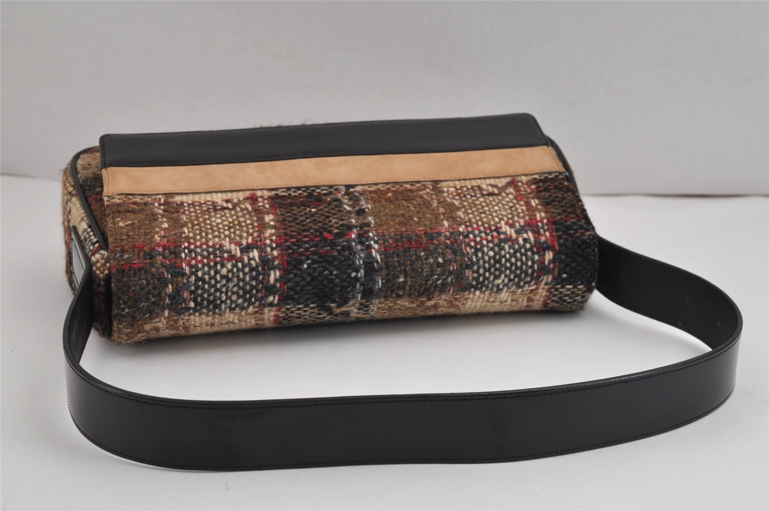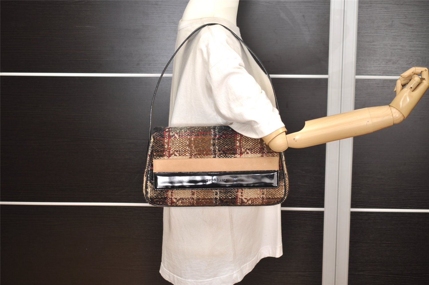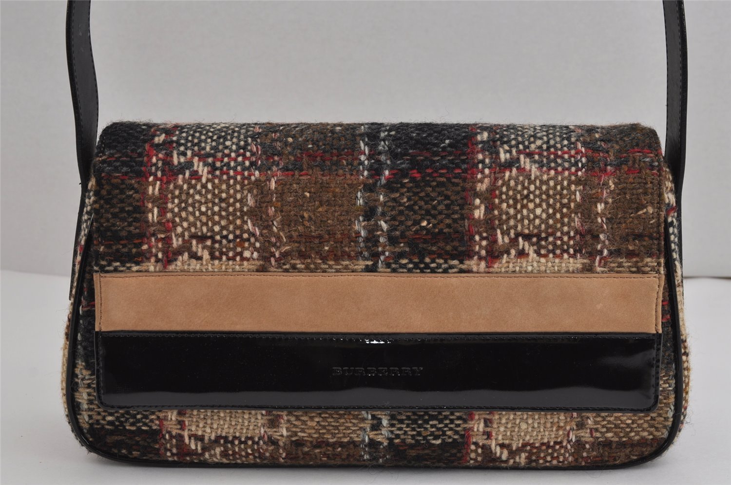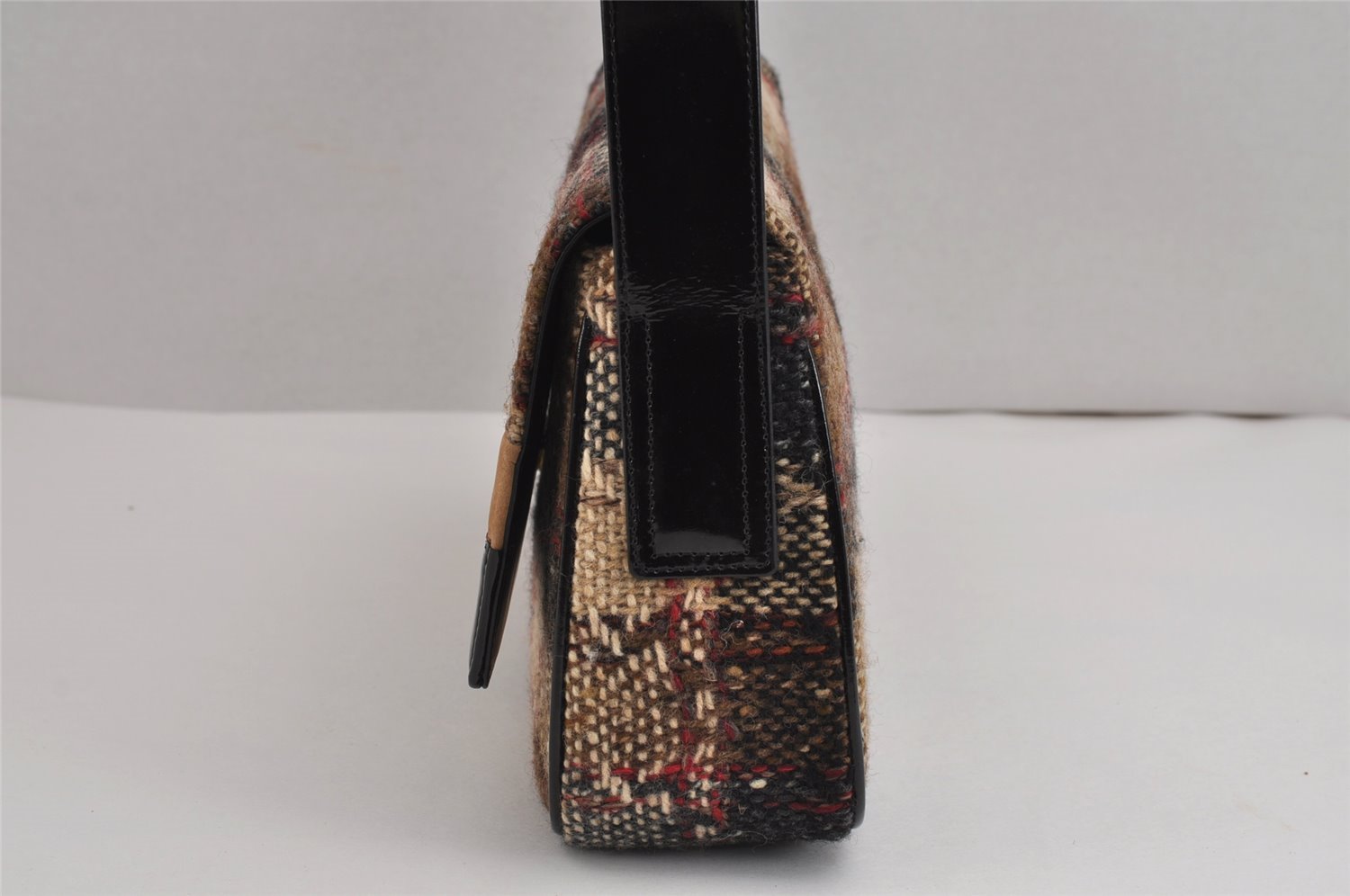 | Authentic BURBERRY Vintage Wool Enamel Shoulder Hand Bag Purse Beige | |