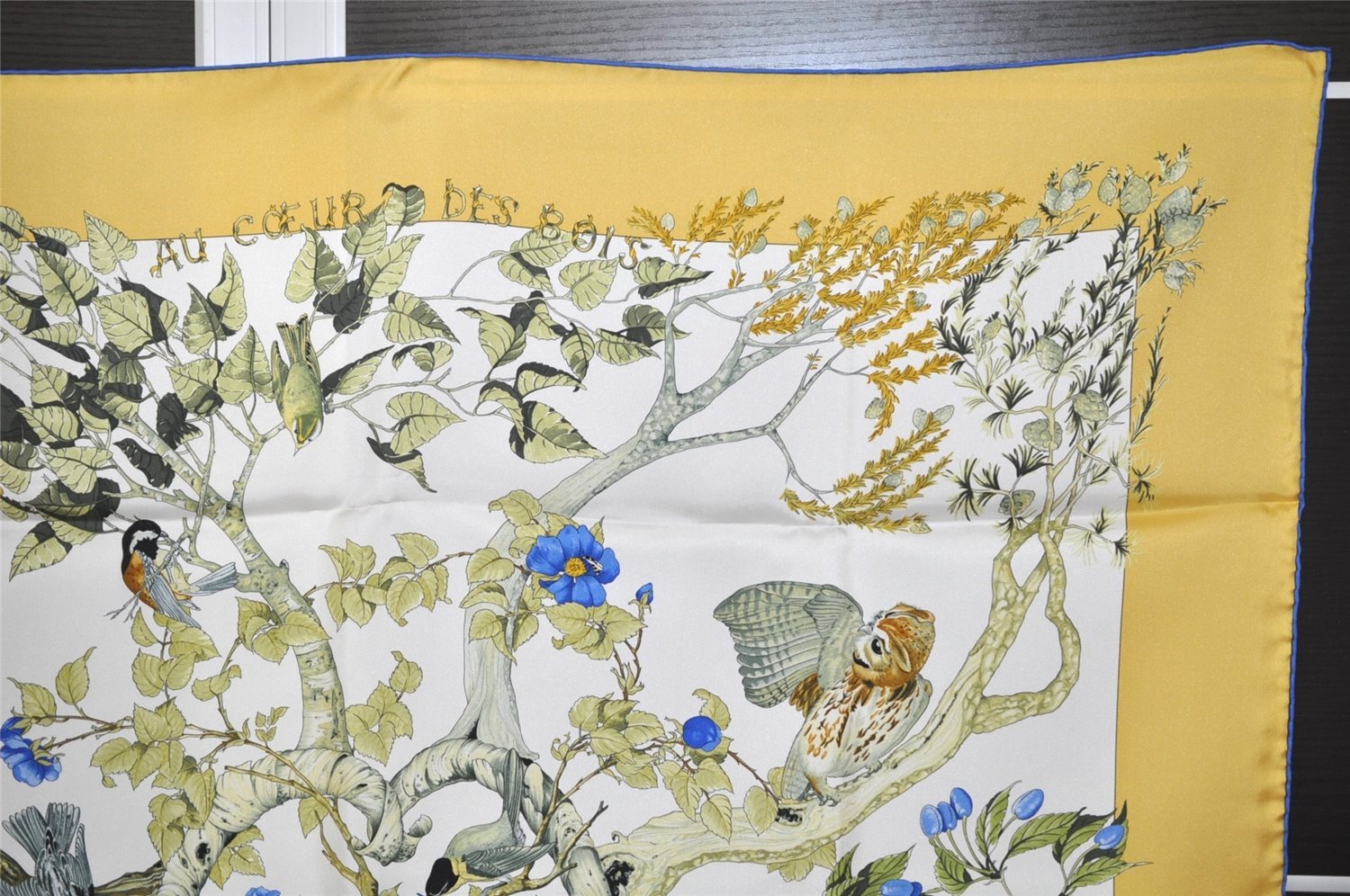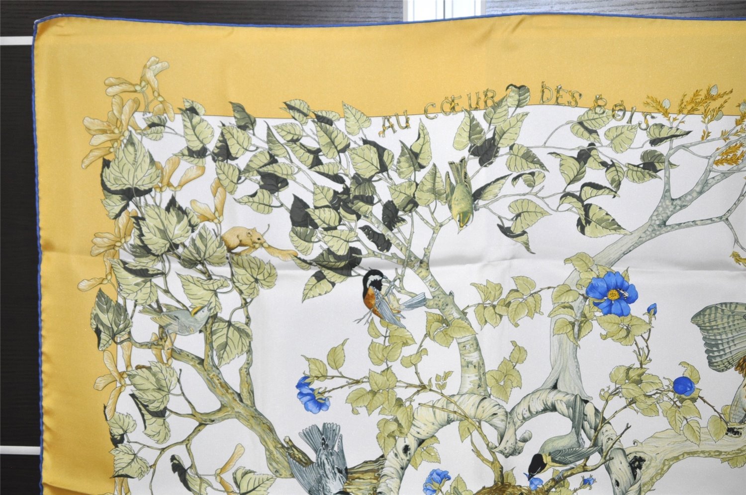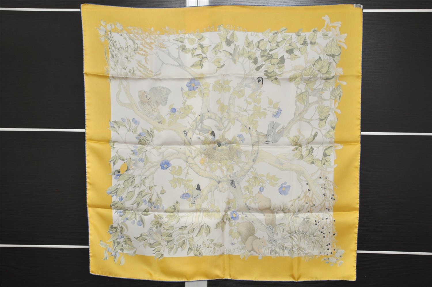 | Authentic HERMES Carre 90 Scarf "AU COEUR DES BOIS" Silk Blue Box | |