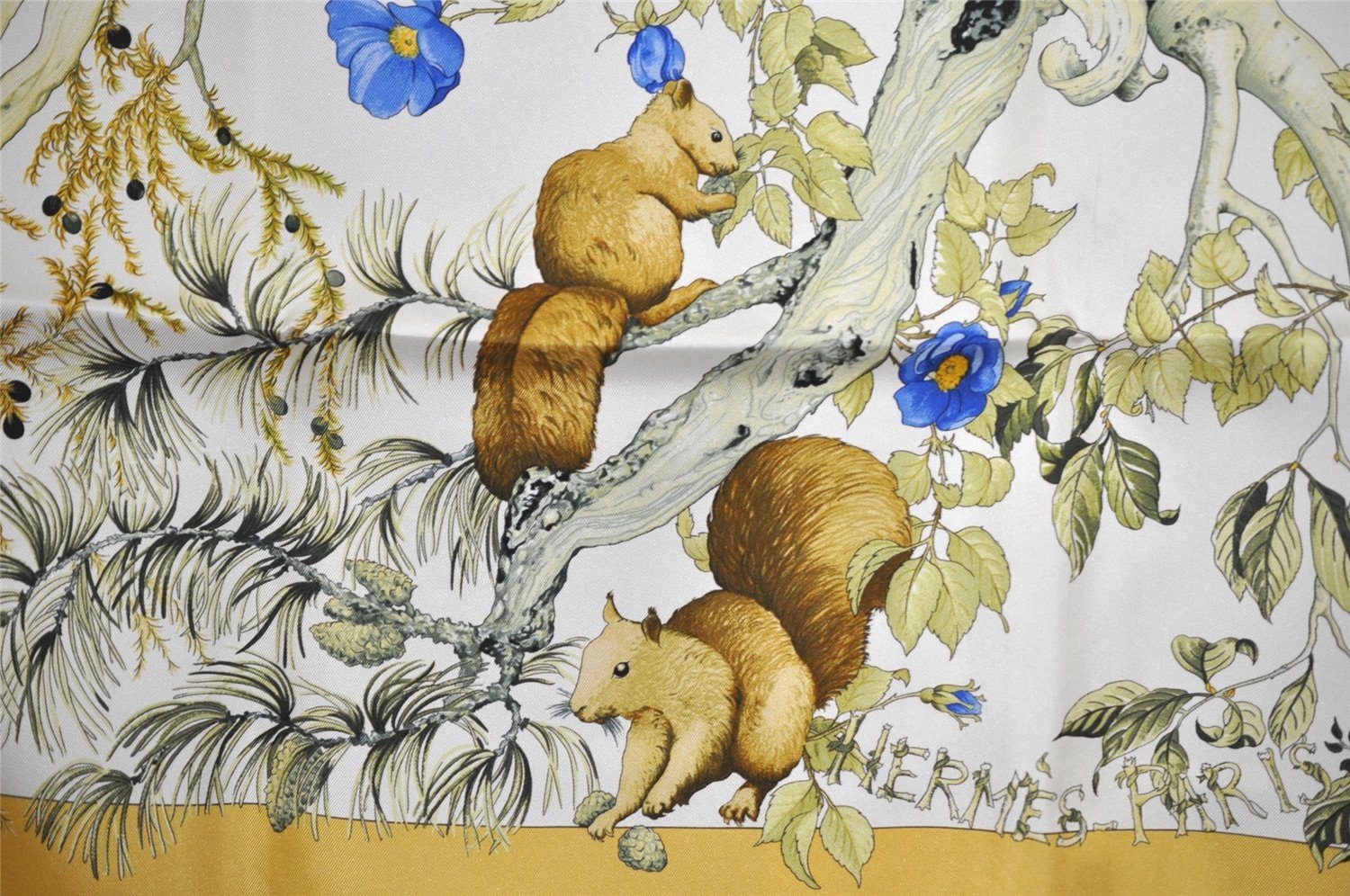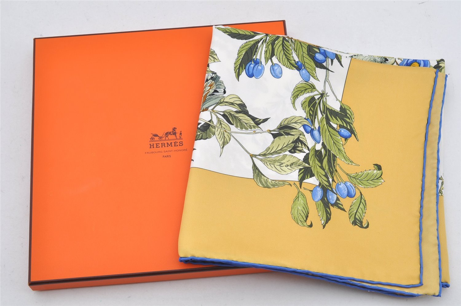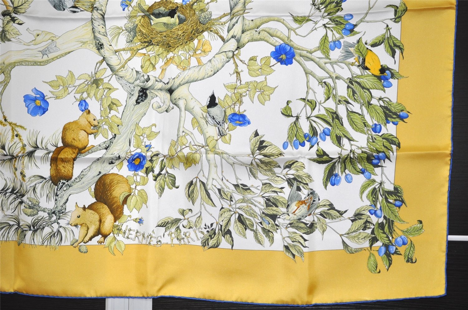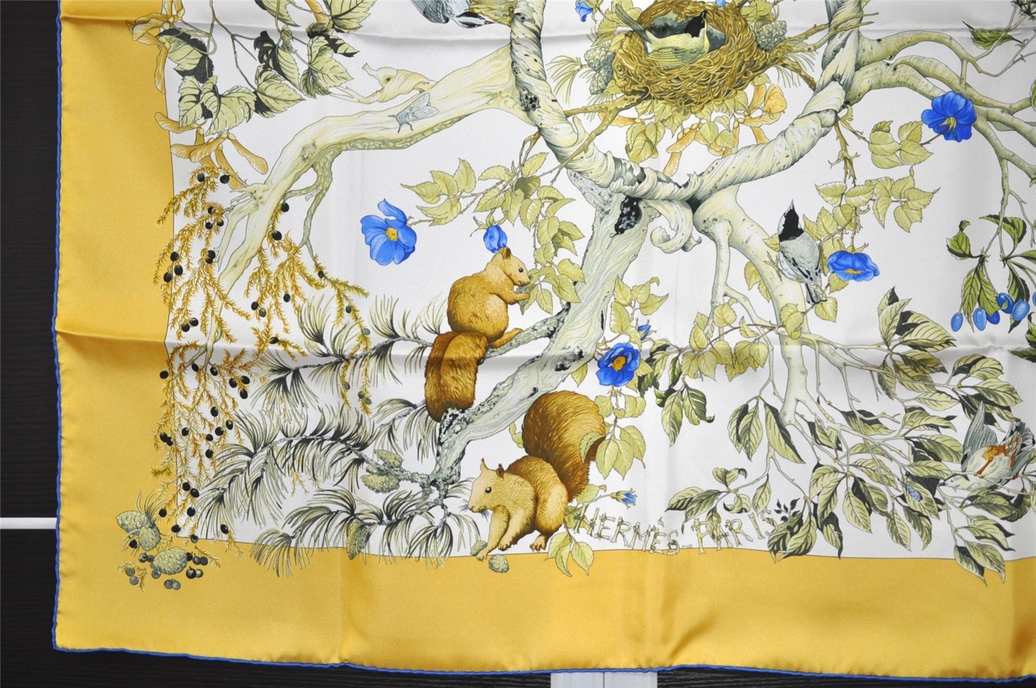 | Authentic HERMES Carre 90 Scarf "AU COEUR DES BOIS" Silk Blue Box | |