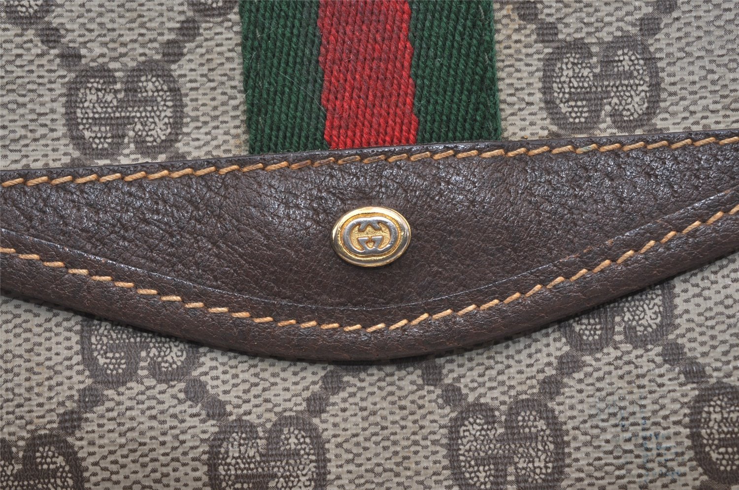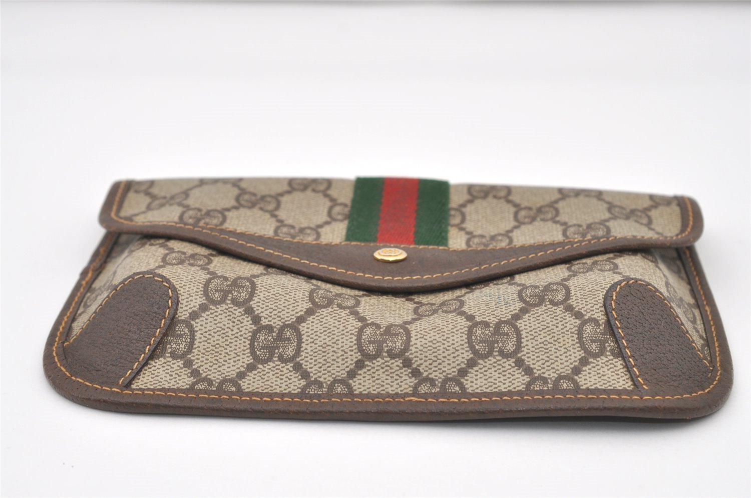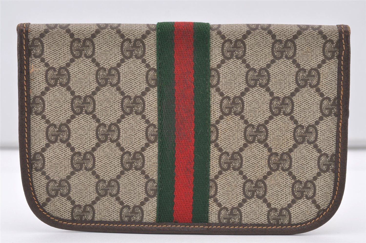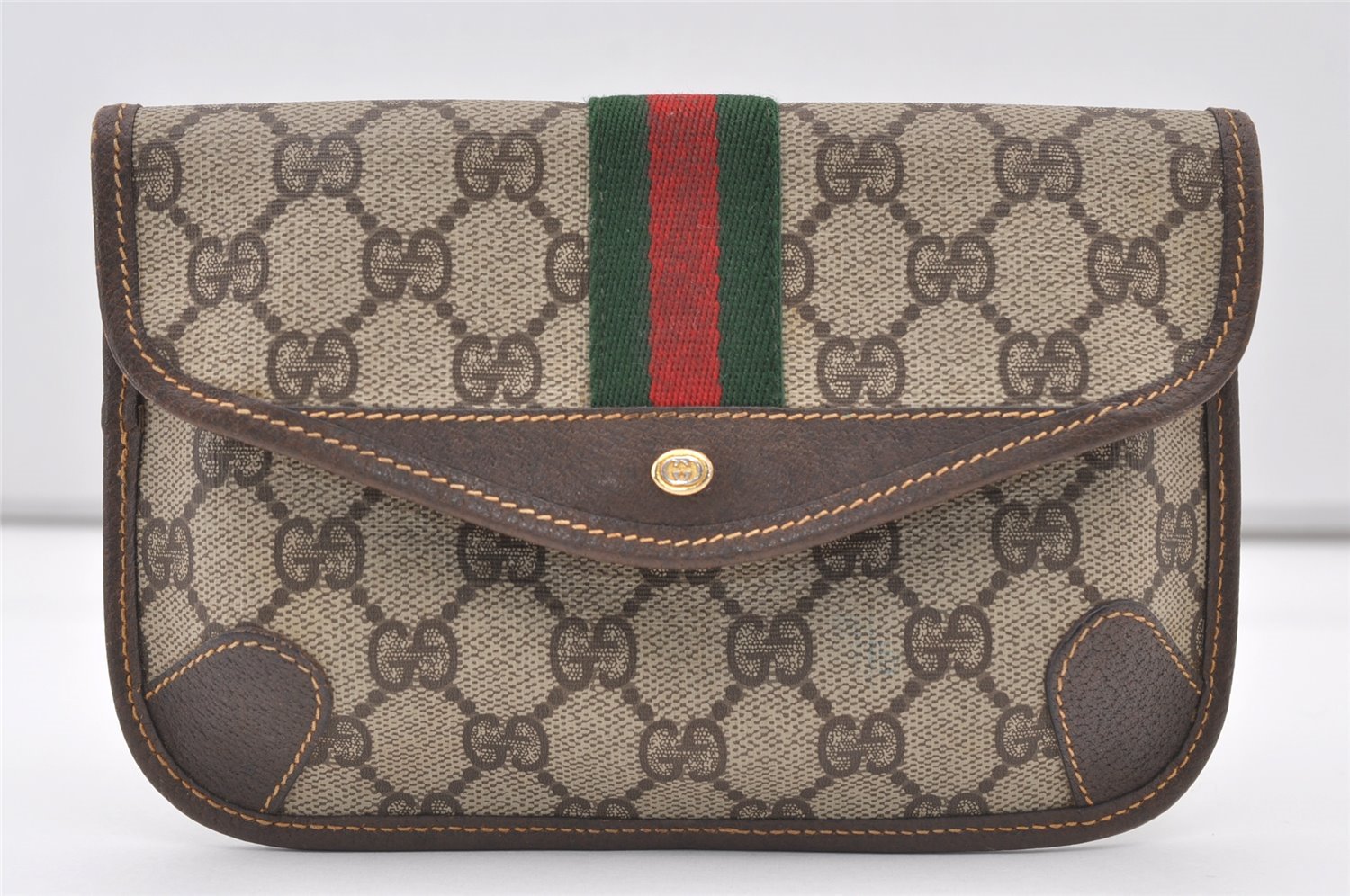 | Authentic GUCCI Web Sherry Line Clutch Hand Bag Purse GG PVC Leather Brown | |