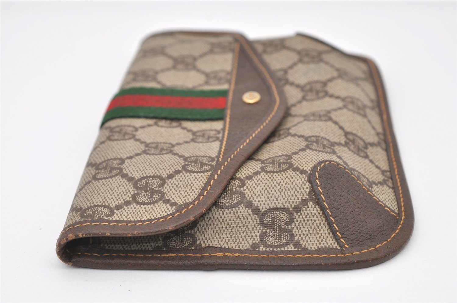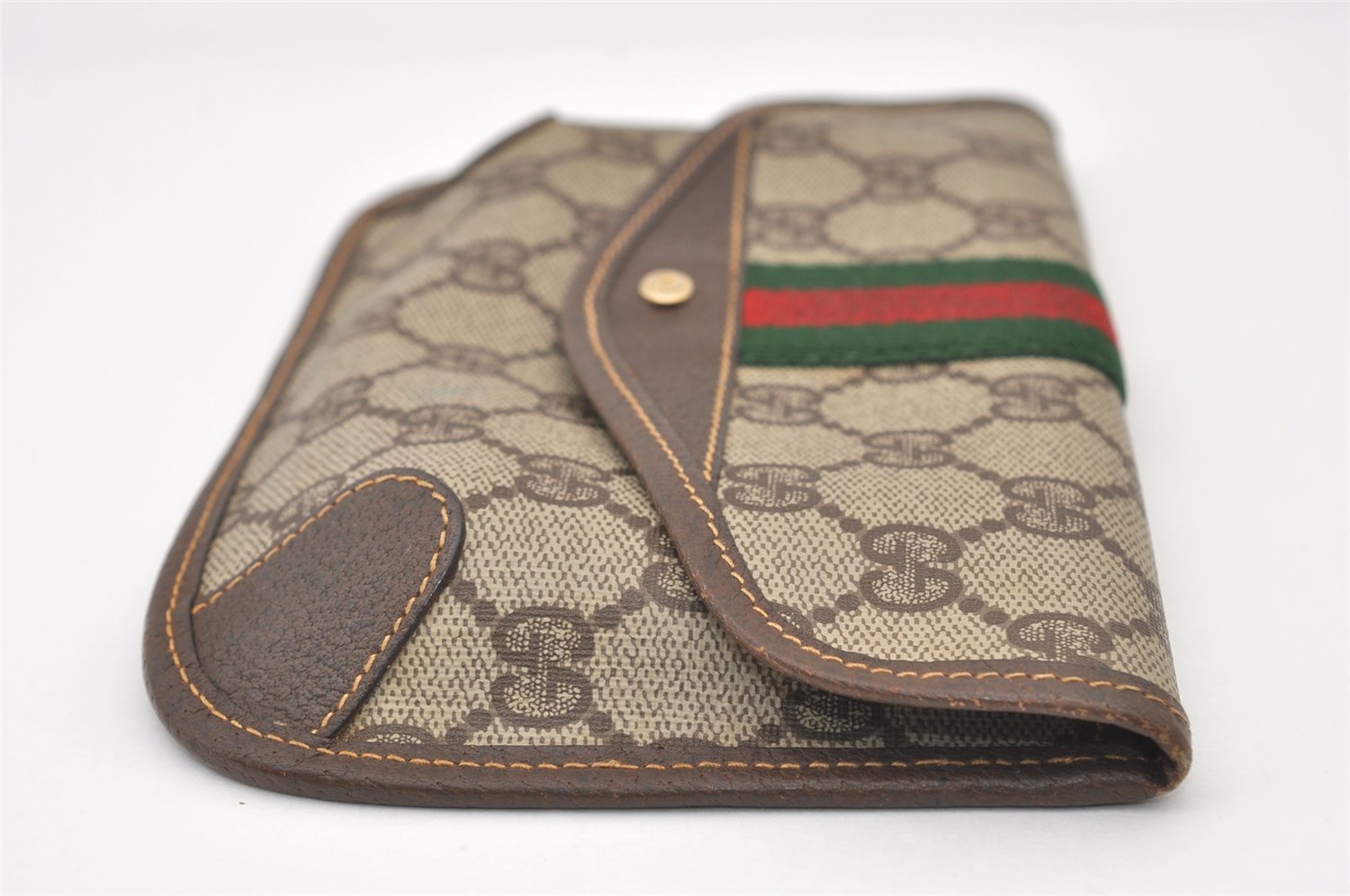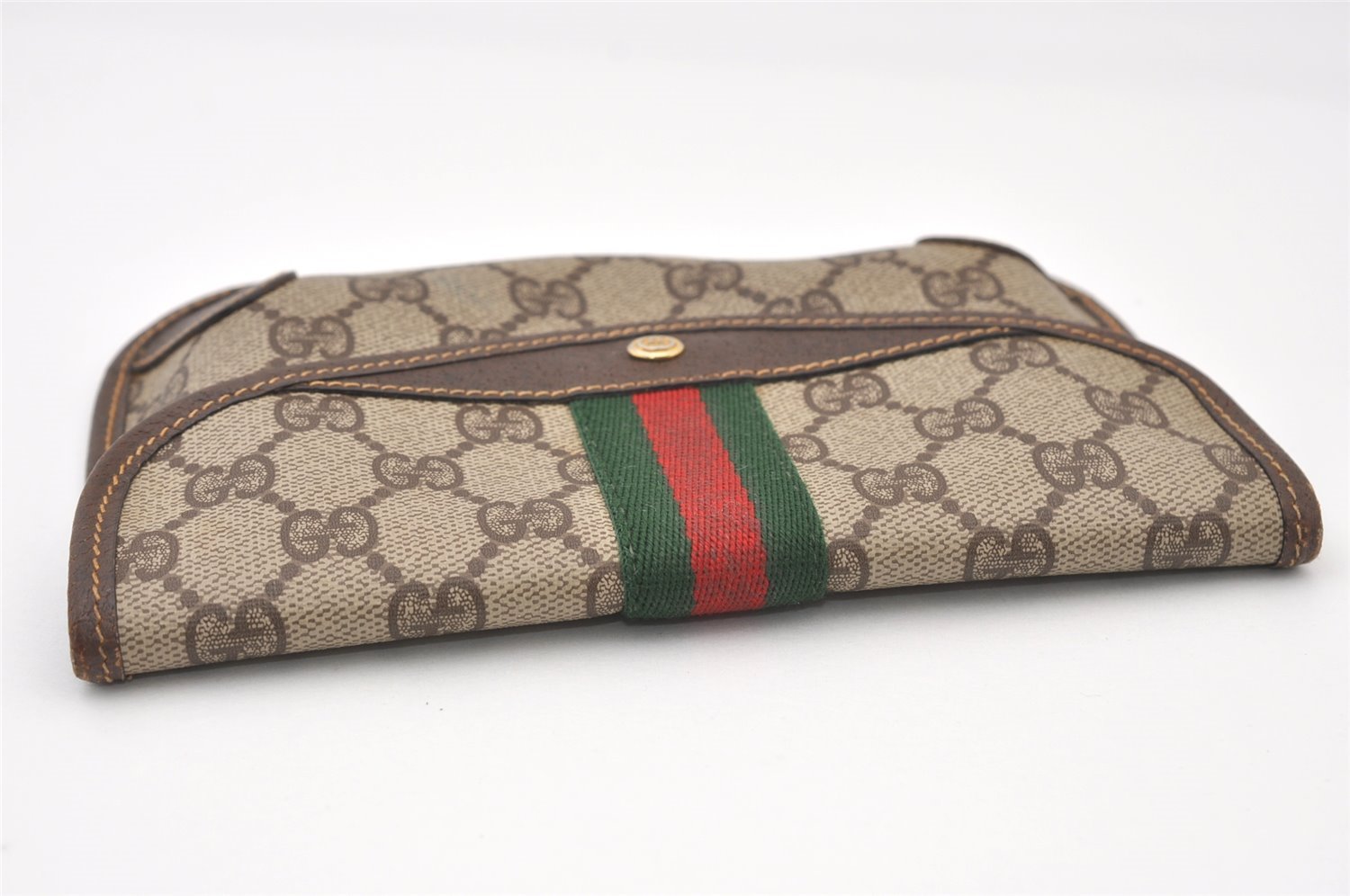 | Authentic GUCCI Web Sherry Line Clutch Hand Bag Purse GG PVC Leather Brown | |