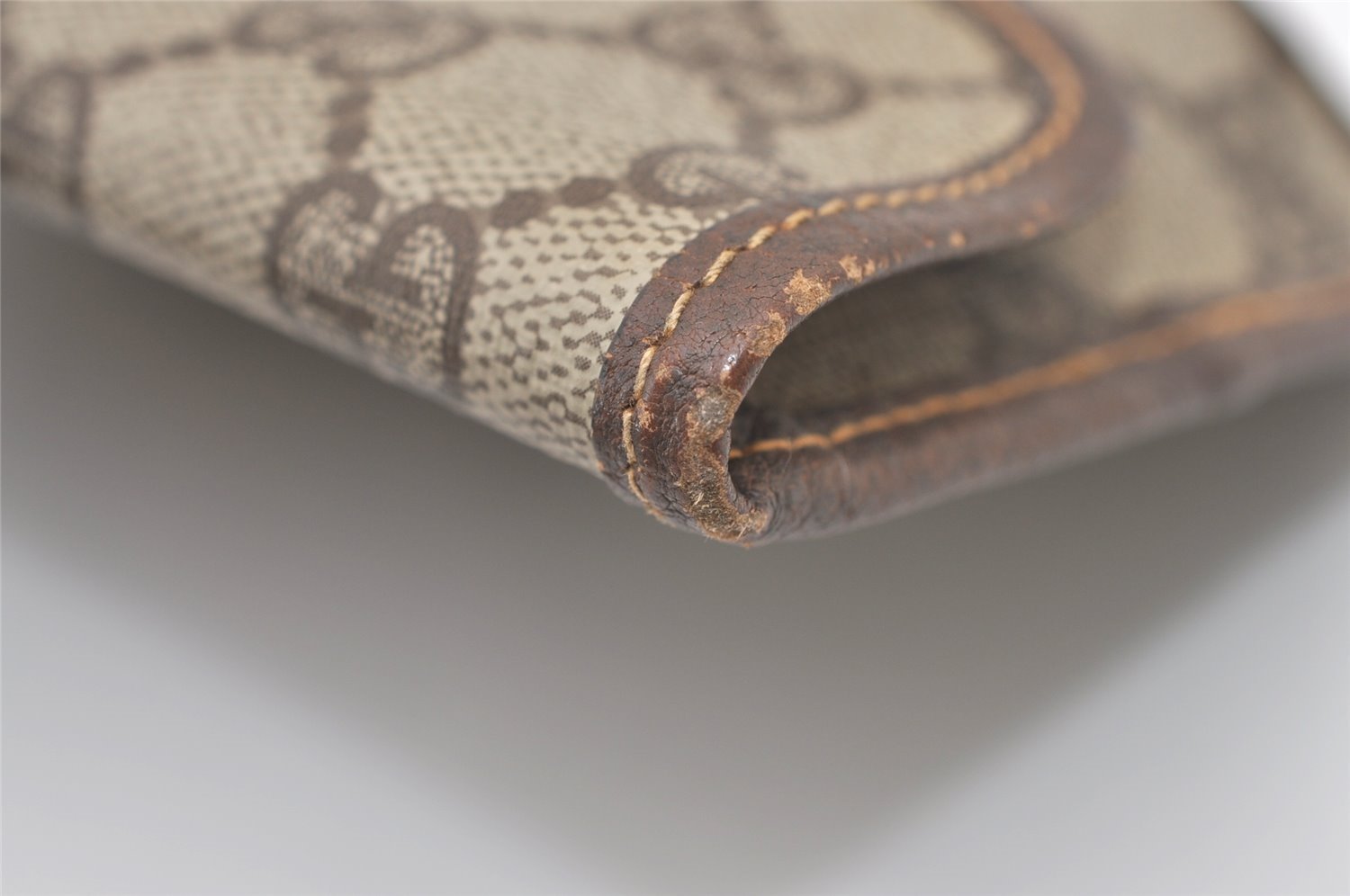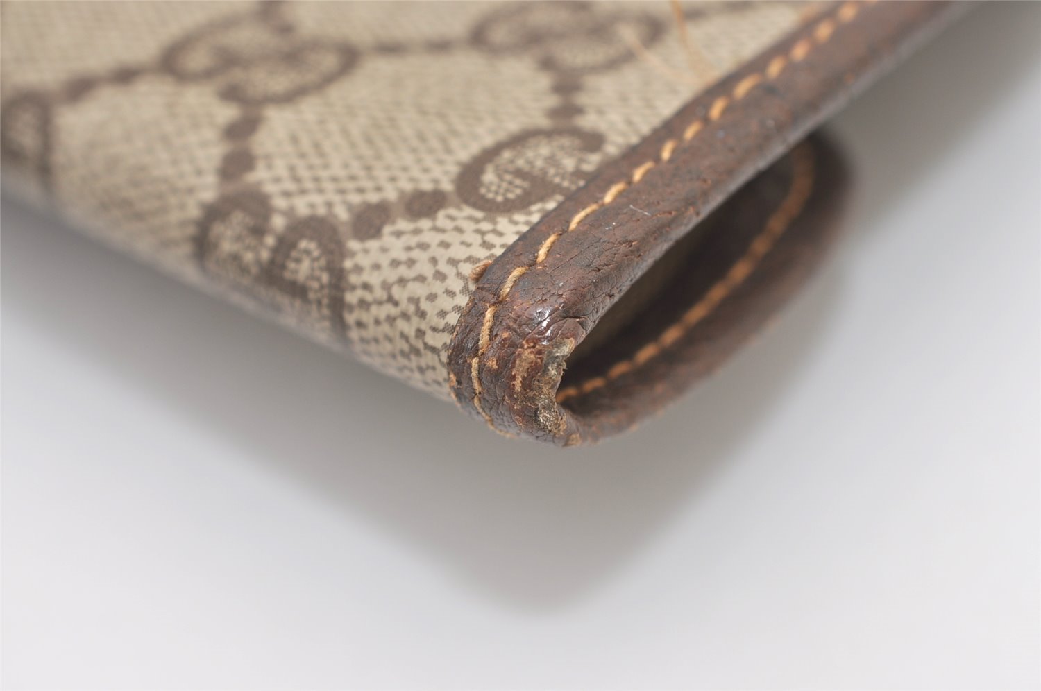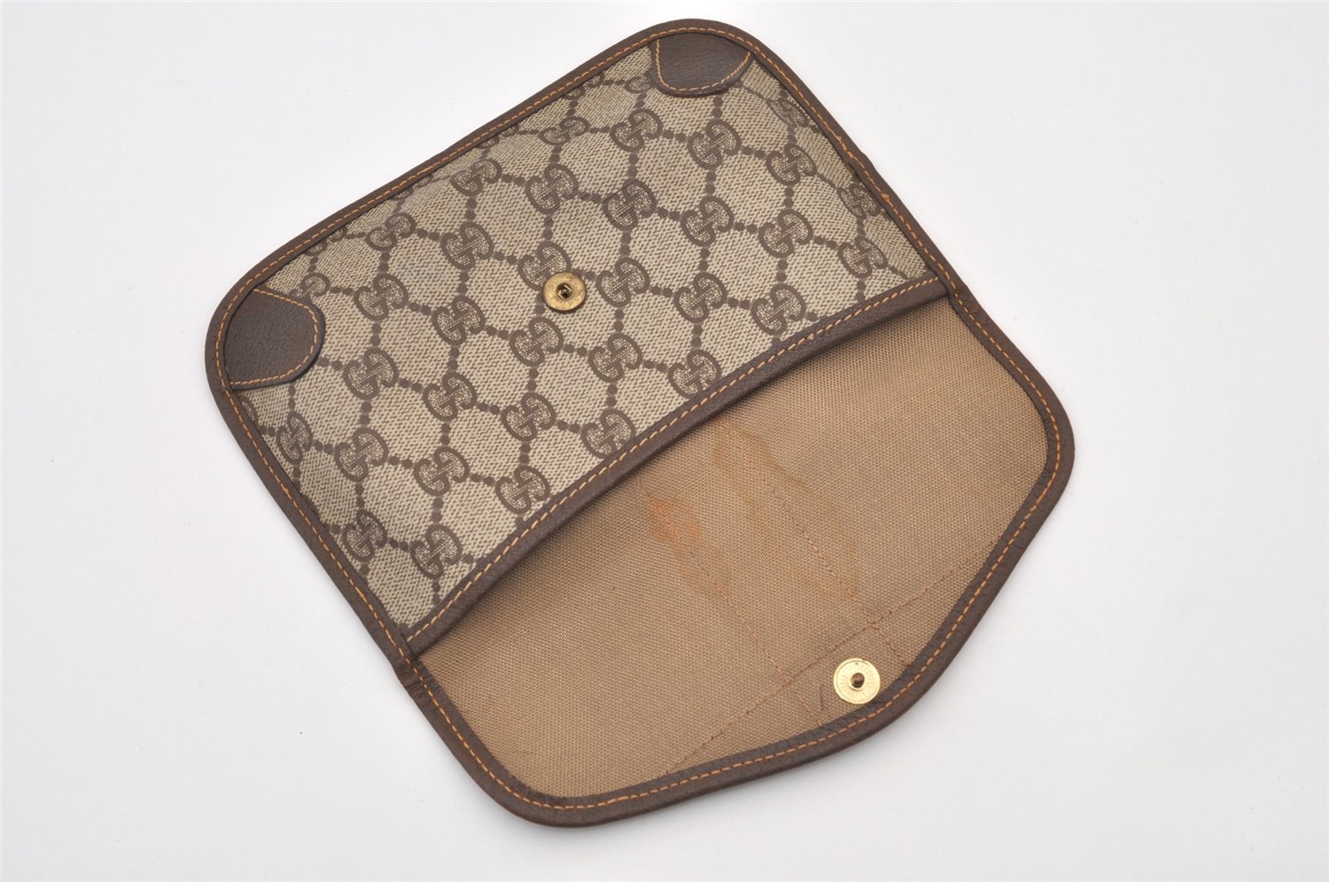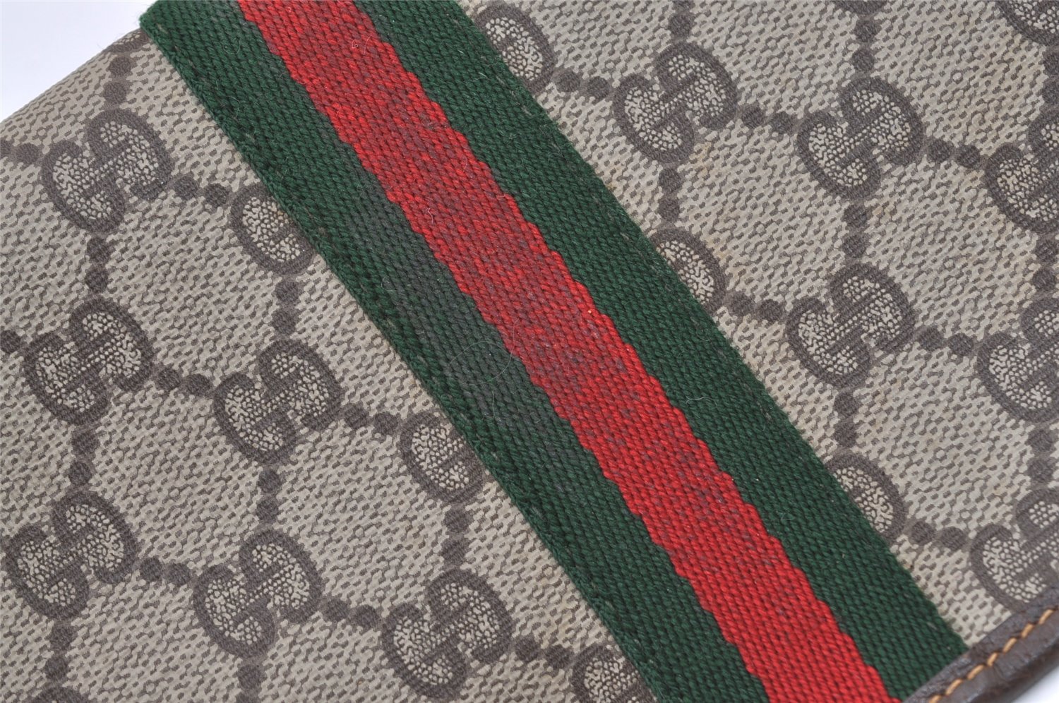 | Authentic GUCCI Web Sherry Line Clutch Hand Bag Purse GG PVC Leather Brown | |